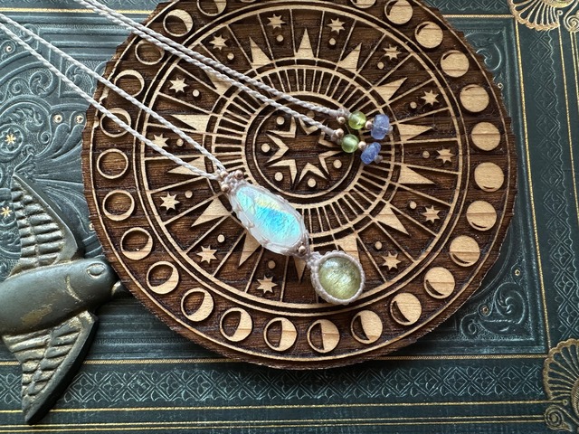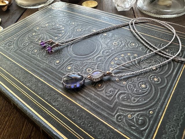 • 宝石質アイオライトとレインボームーンストーンのペンダント