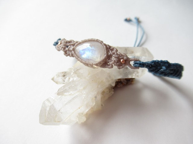 • レインボームーンストーンの紋様編みブレスレット