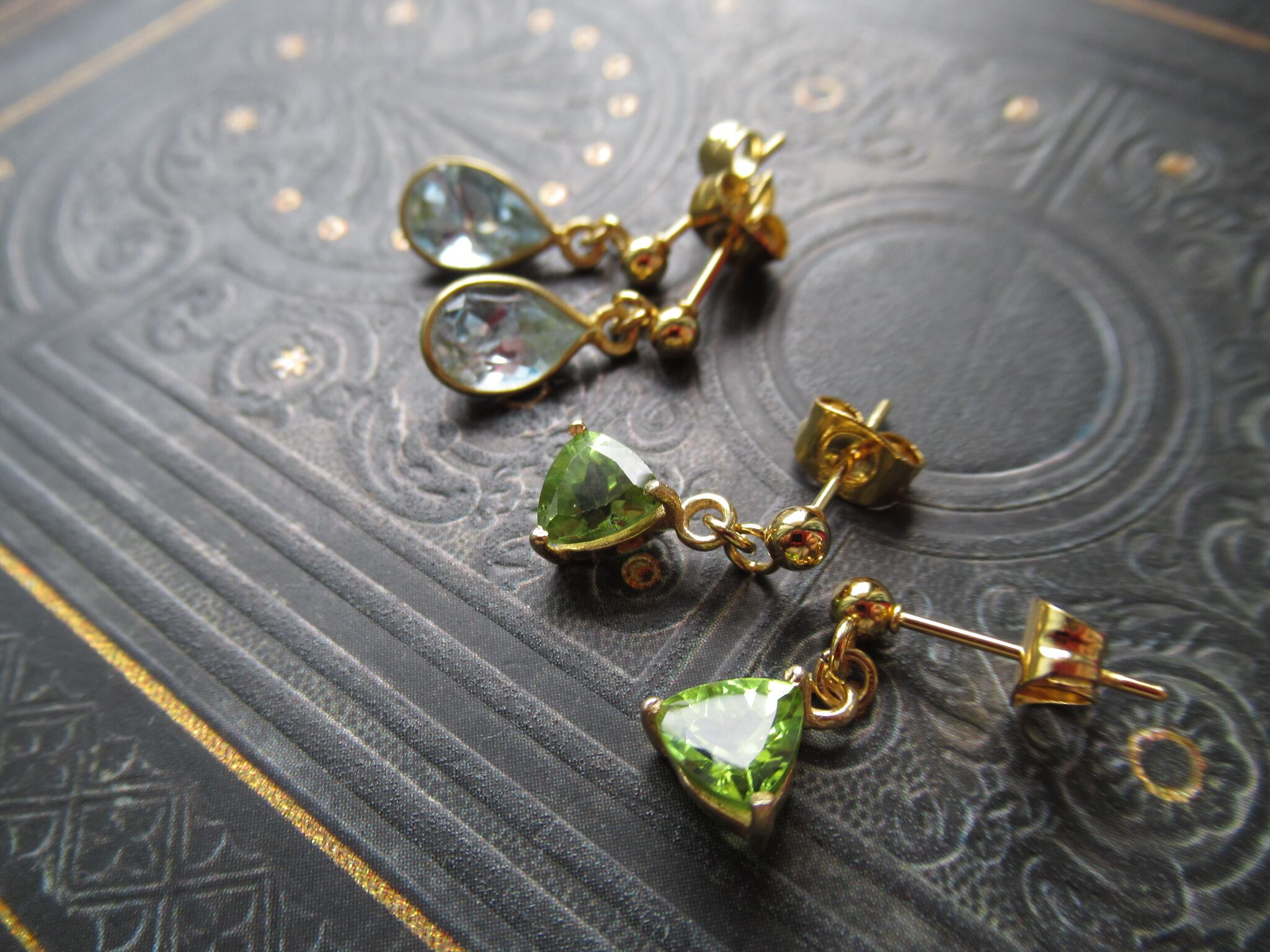 宝石質のスカイブルートパーズのジュエリーカットデザインの耳飾りです。