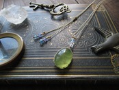 うるるんつややかでおいしそうな色合いのプレナイトと、ハーキマーダイヤモンド、宝石質のアクアマリンを組み合わせ、春らしいデザインのペンダントをお仕立ていたしました。