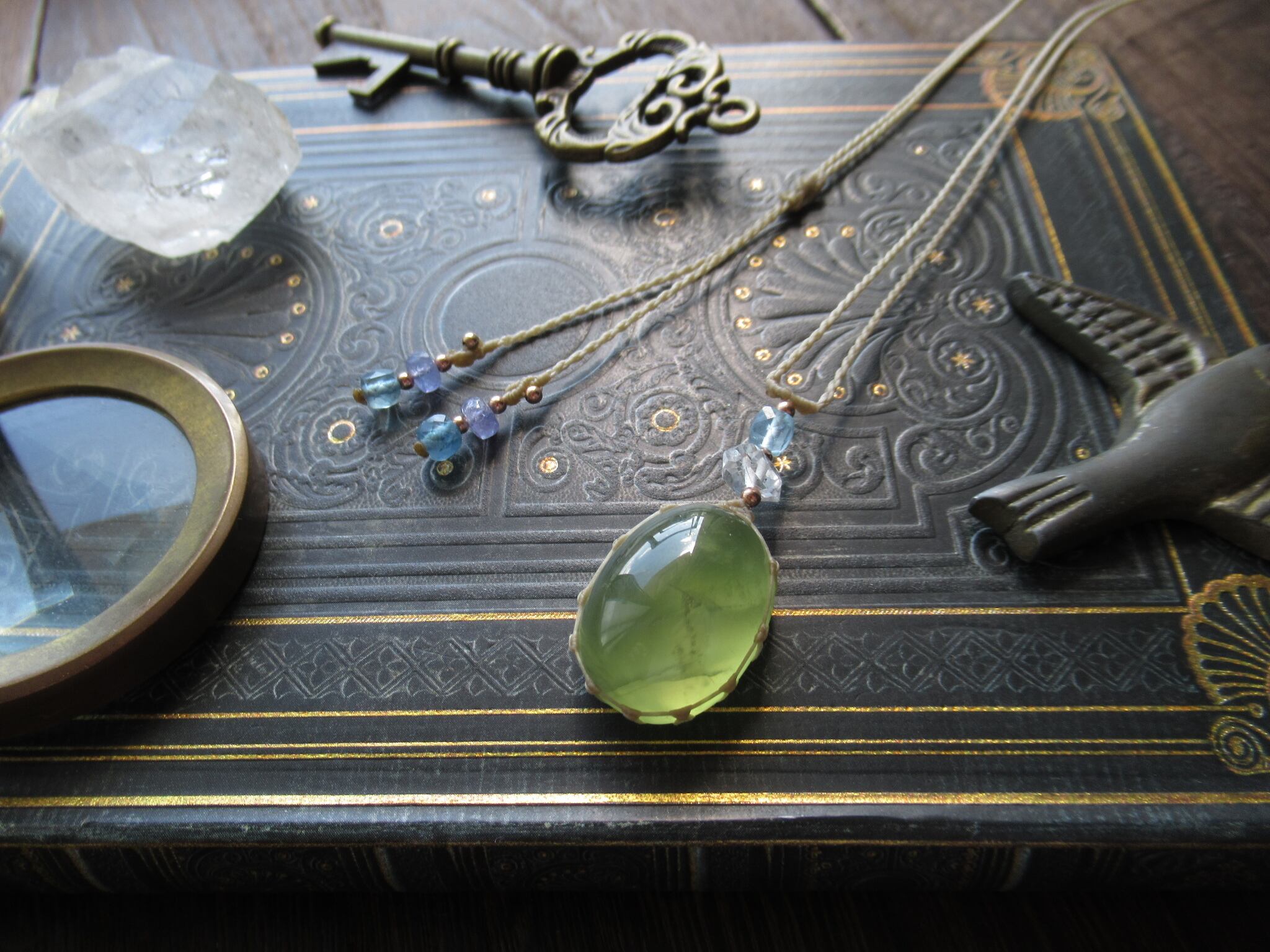 アフリカ産プレナイトとハーキマー×宝石質アクアマリンのペンダント