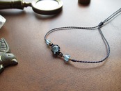 ブレスレットの編み込みの左右には宝石質のアクアマリンのビーズを編み込藻いました。結びの石もアクアマリンです。