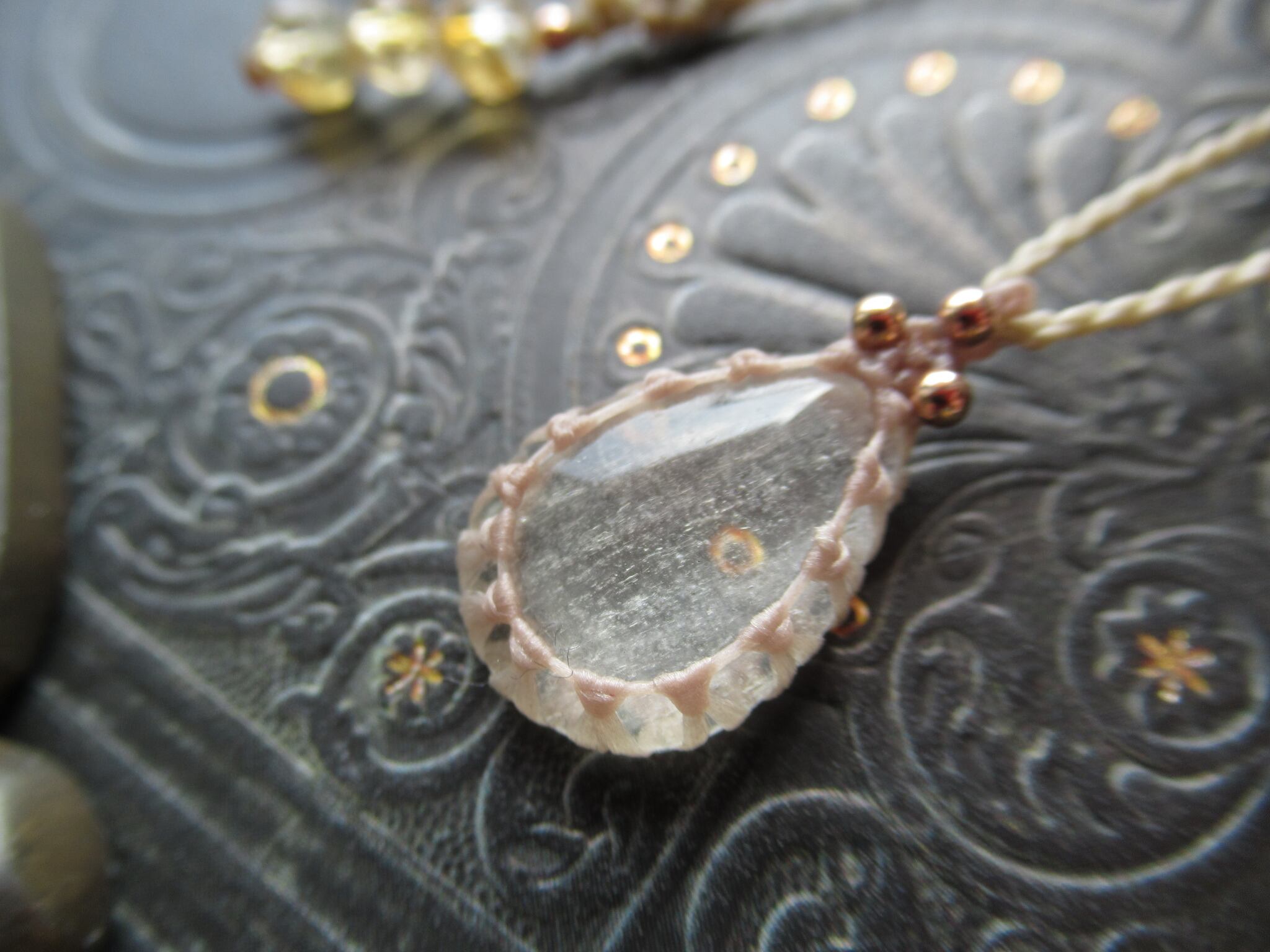 ごくうっすら。ほんのりとレモン色に色づくリビアングラスのシンプルなペンダントです。