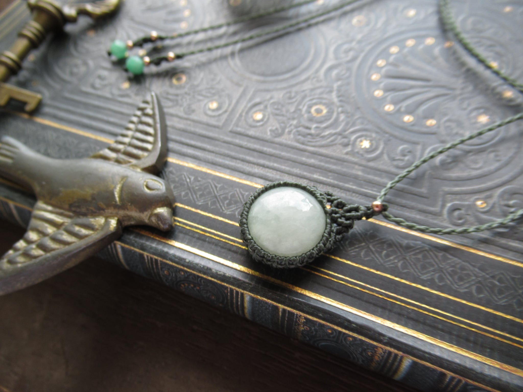 ビルマ産の淡いよもぎ色の翡翠をシンプルなペンダントにお仕立ていたしました。