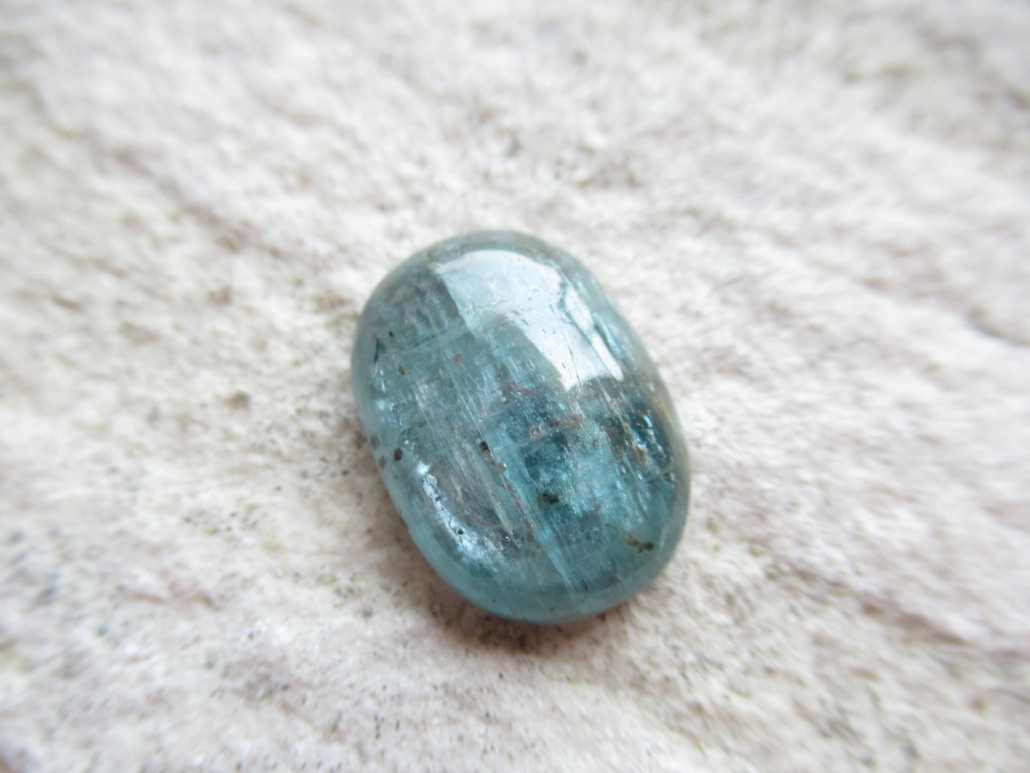 ティールブルー。ほのかにグリーンを帯びる、やわらかくとても美しい色合いのカイヤナイトです。