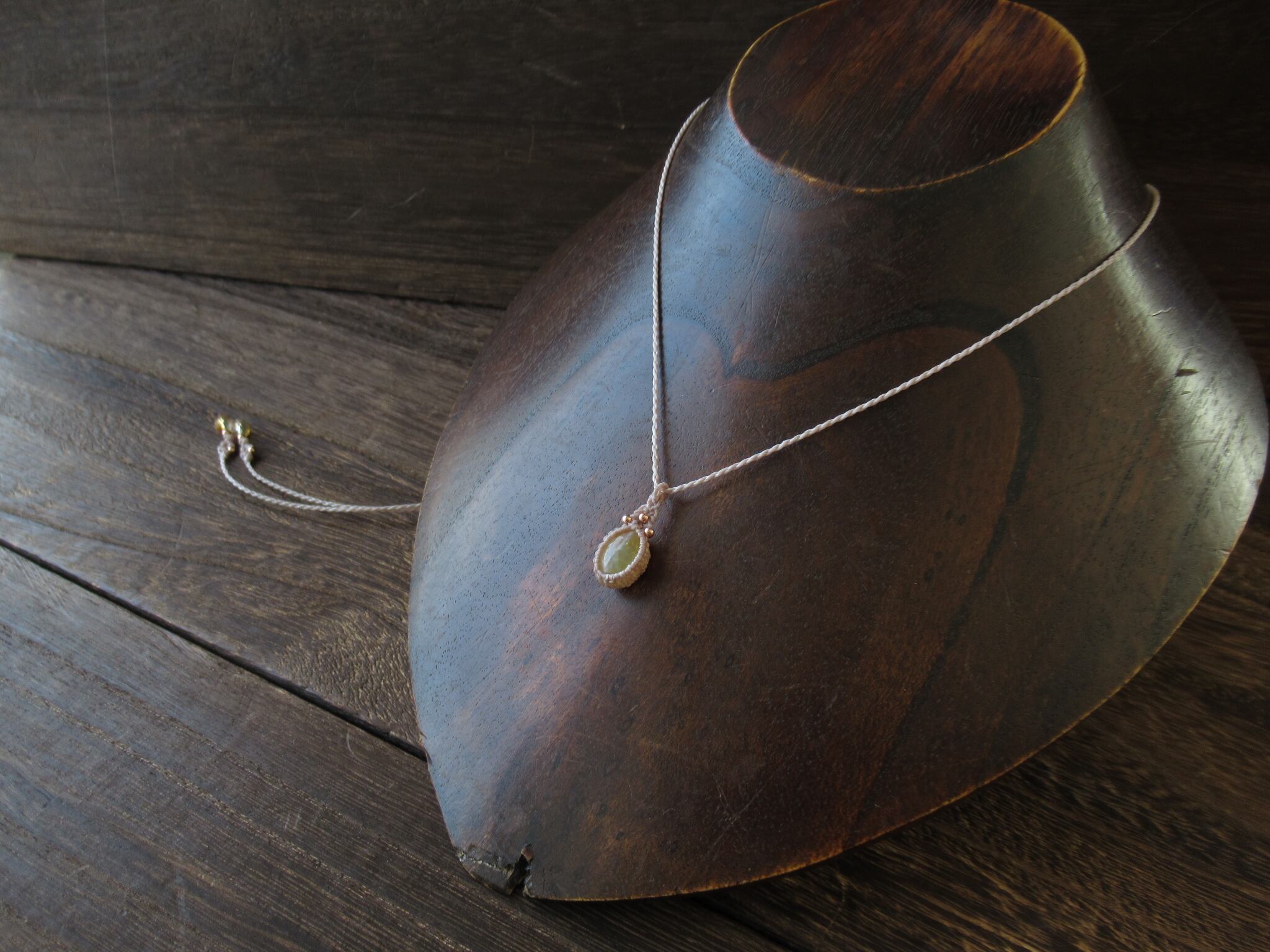遊色効果のないコモンタイプのイエローオパールキャッツアイをシンプルですっきりとしたペンダントにお仕立ていたしました。