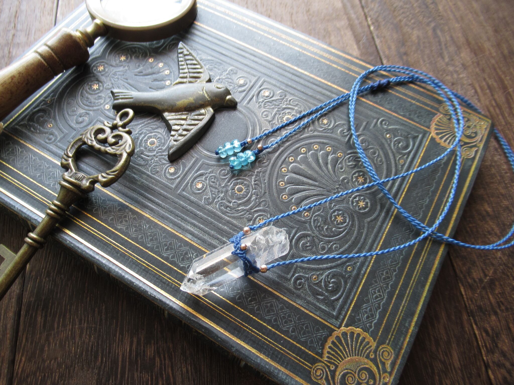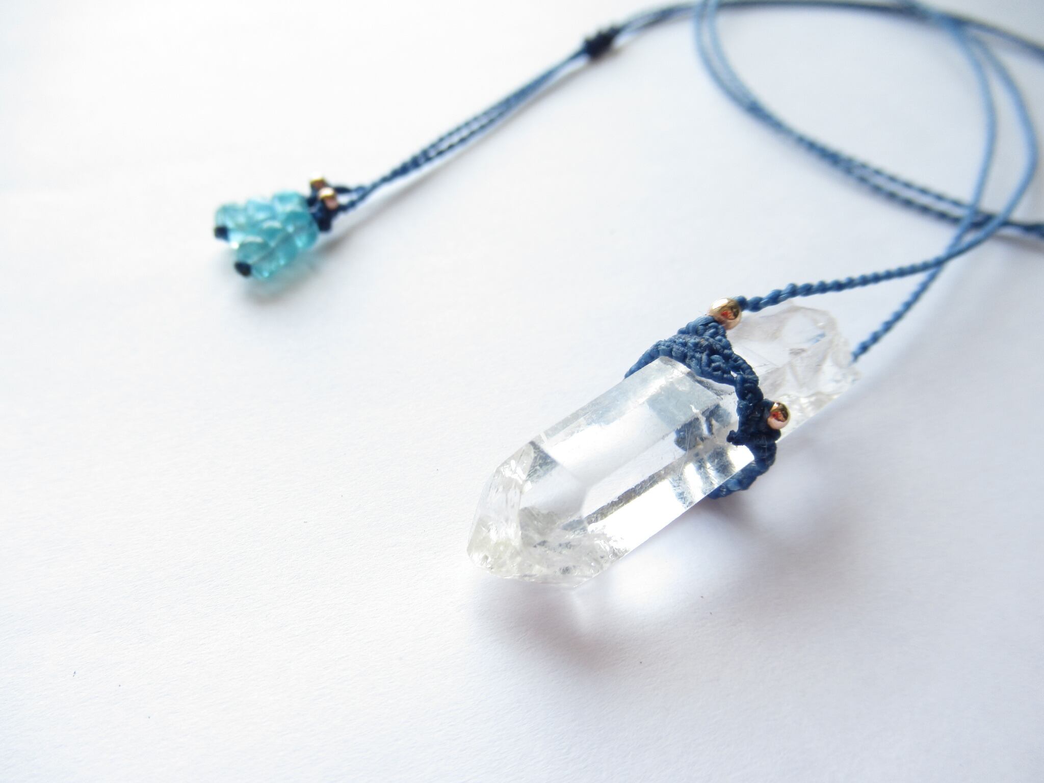 結晶の形状に合わせて穴を開けず、丁寧に編み込んで水晶を固定しております。