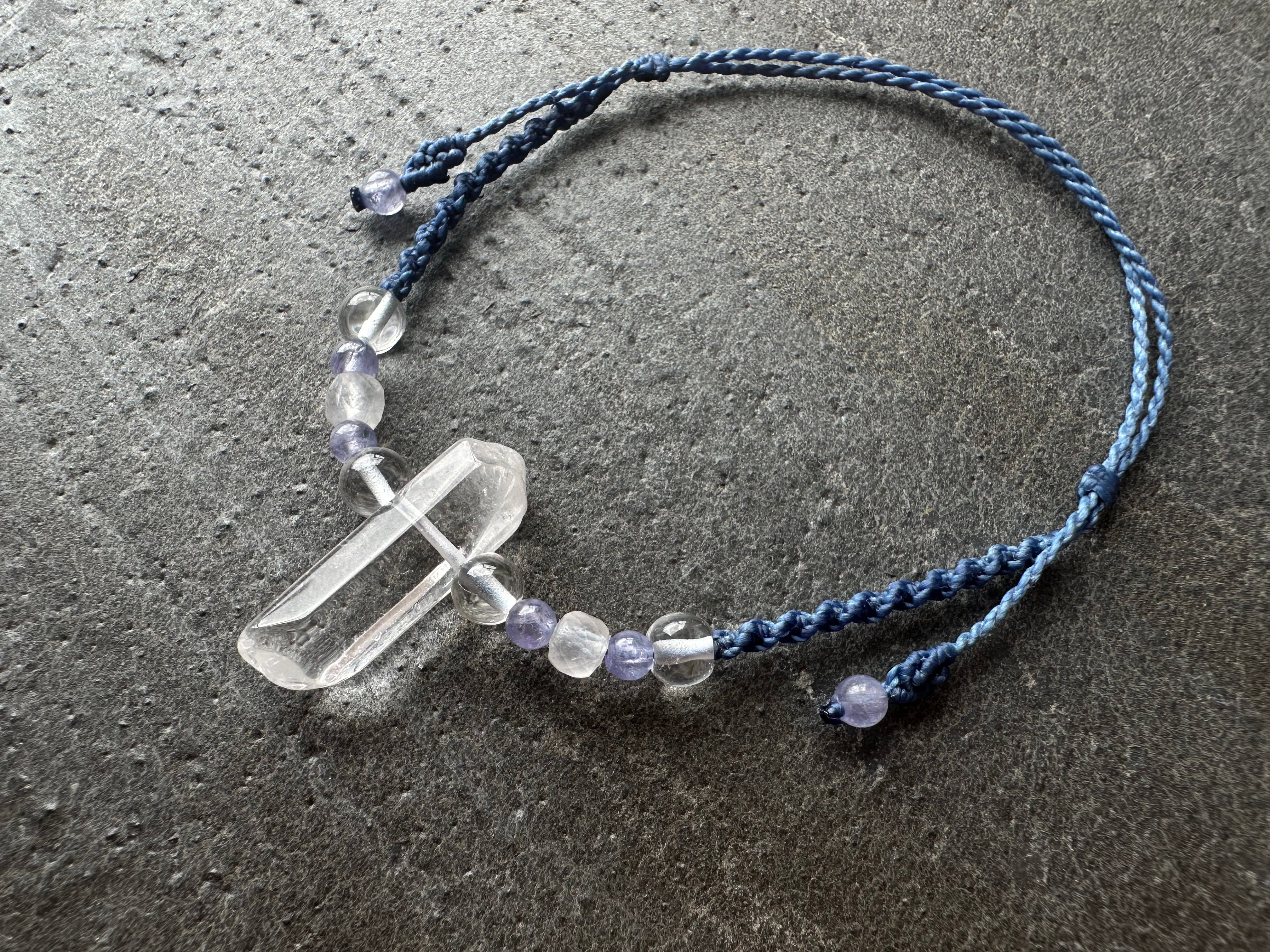 ブラジル産ポイント水晶とガネーシュヒマール産水晶、ゴシェナイトとタンザナイトを組み合わせアンクレットをお仕立ていたしました。
