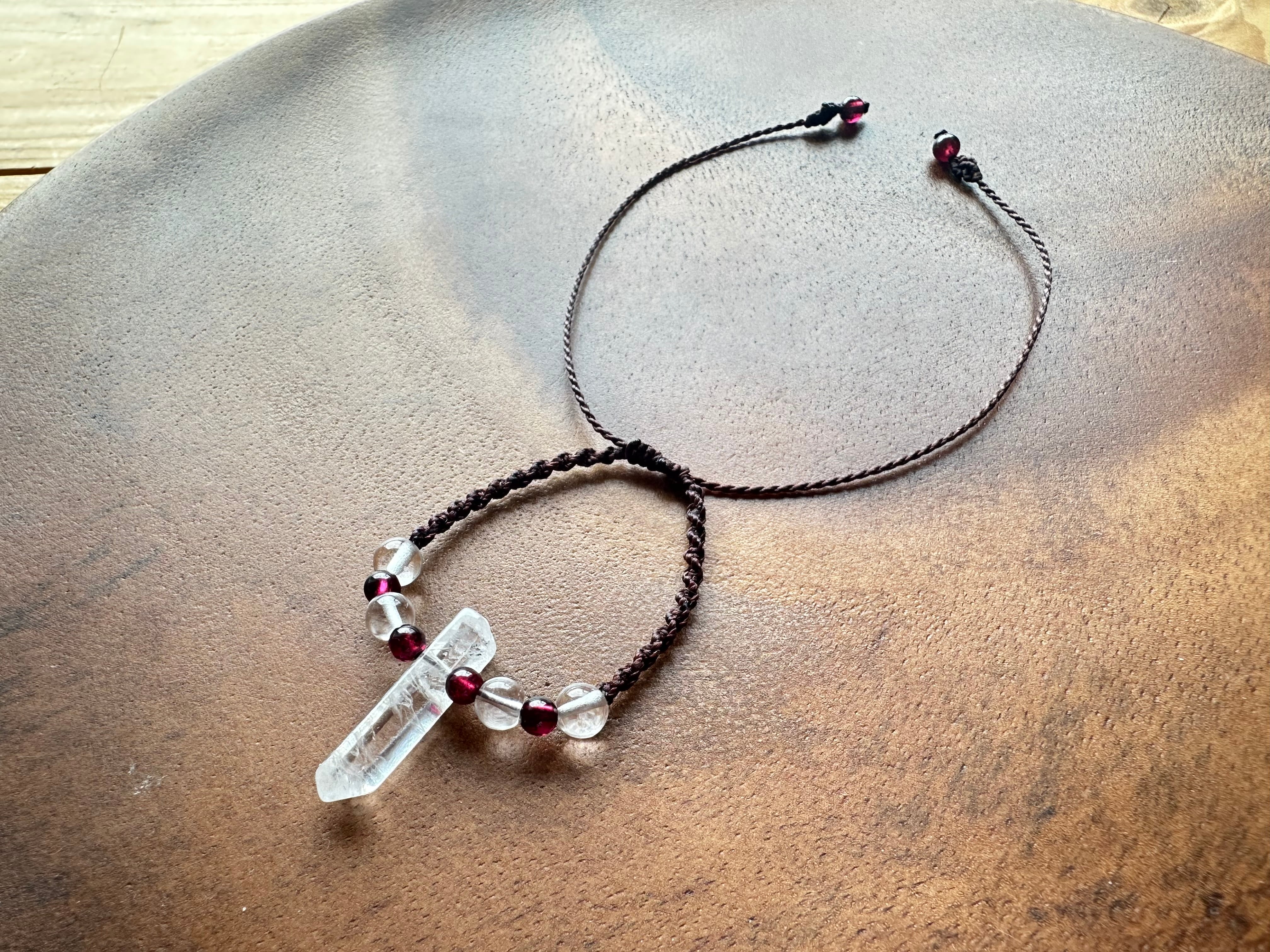 ブラジル産ポイント水晶とガネーシュヒマール産水晶、ロードライトガーネットを組み合わせアンクレットをお仕立ていたしました。
