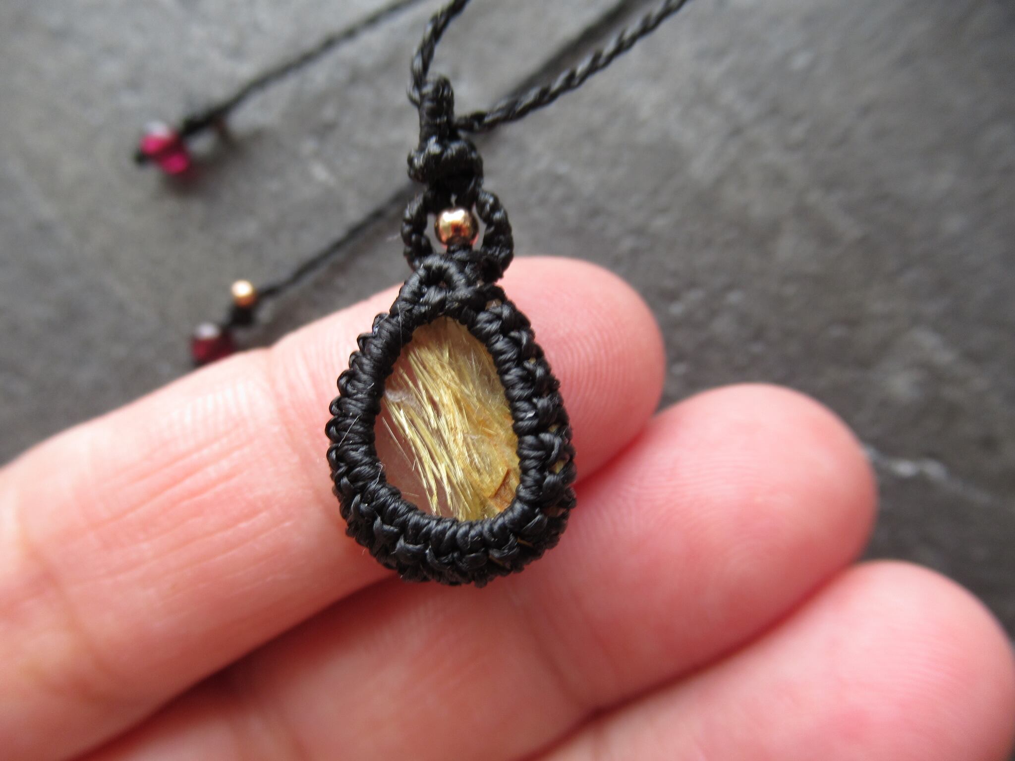 雫型の金針が縦方向にしっかり入ったルチルクォーツでペンダントを製作致しました。