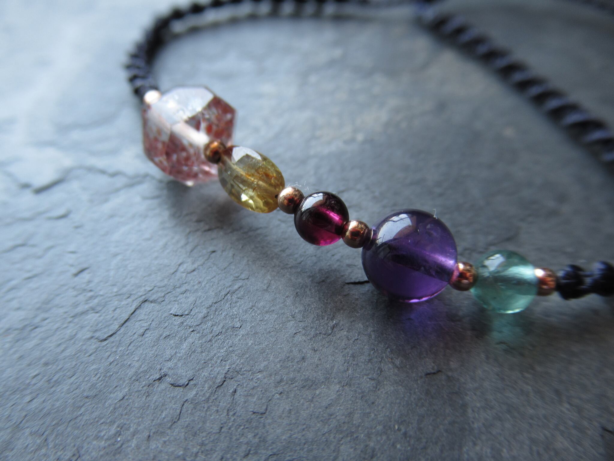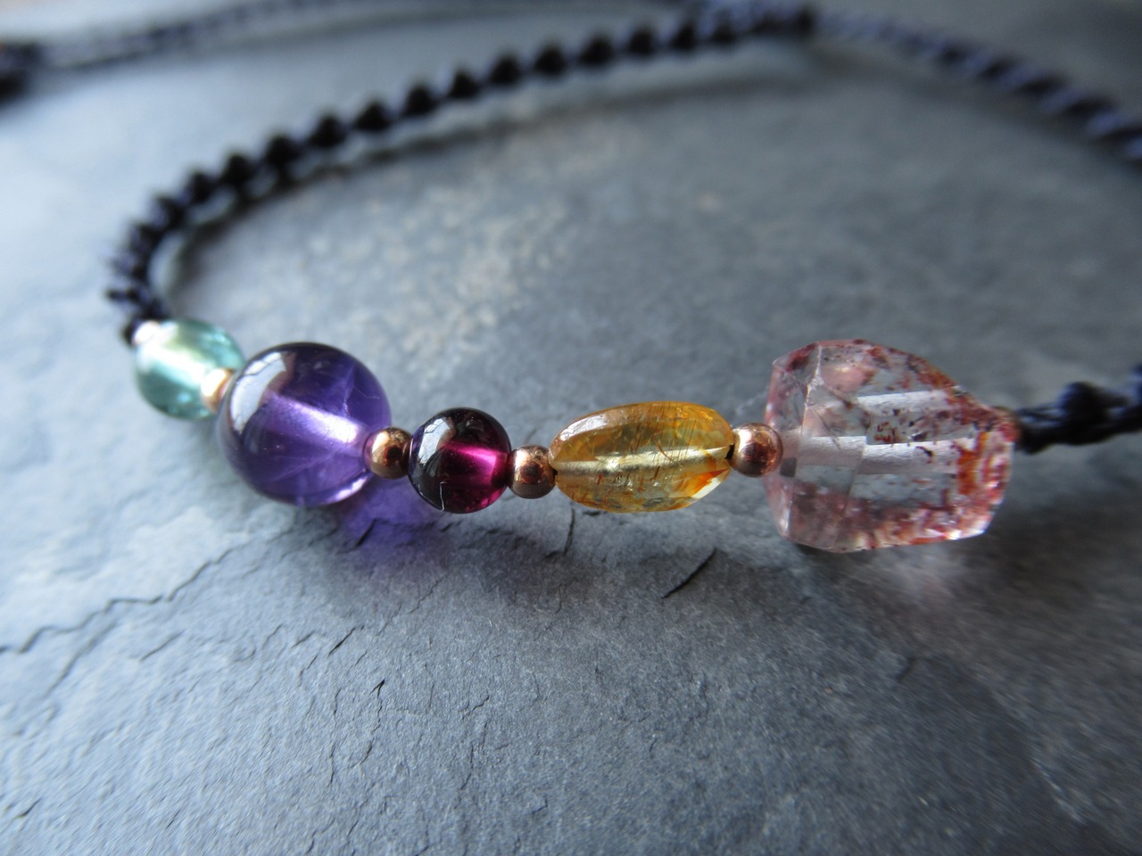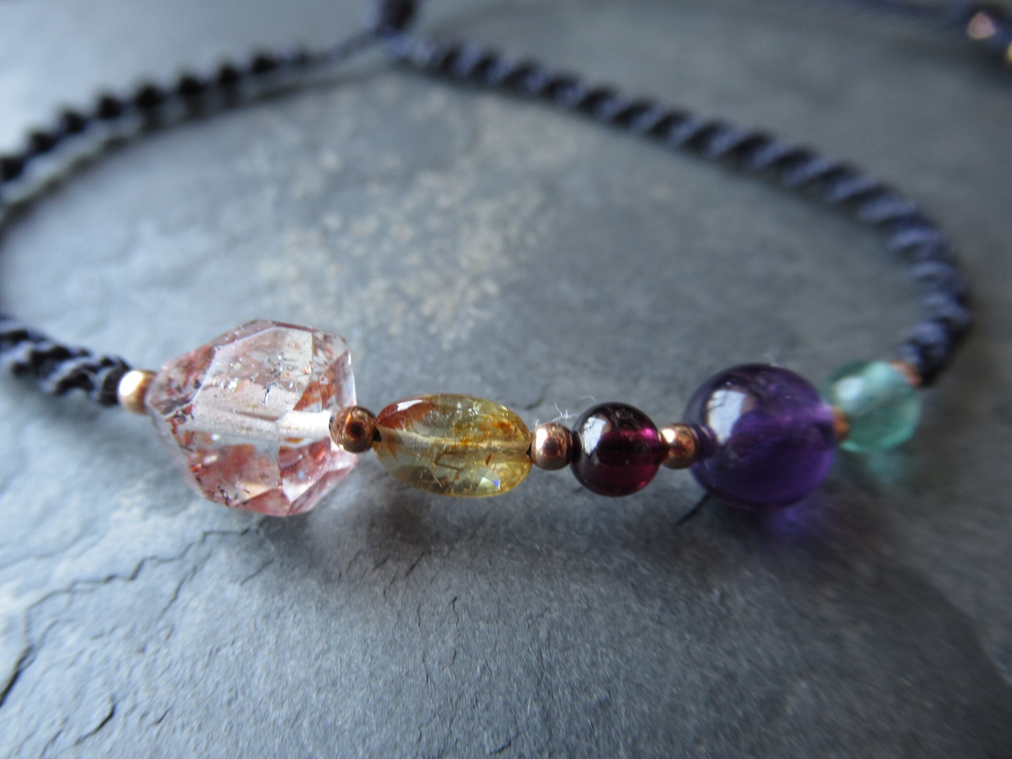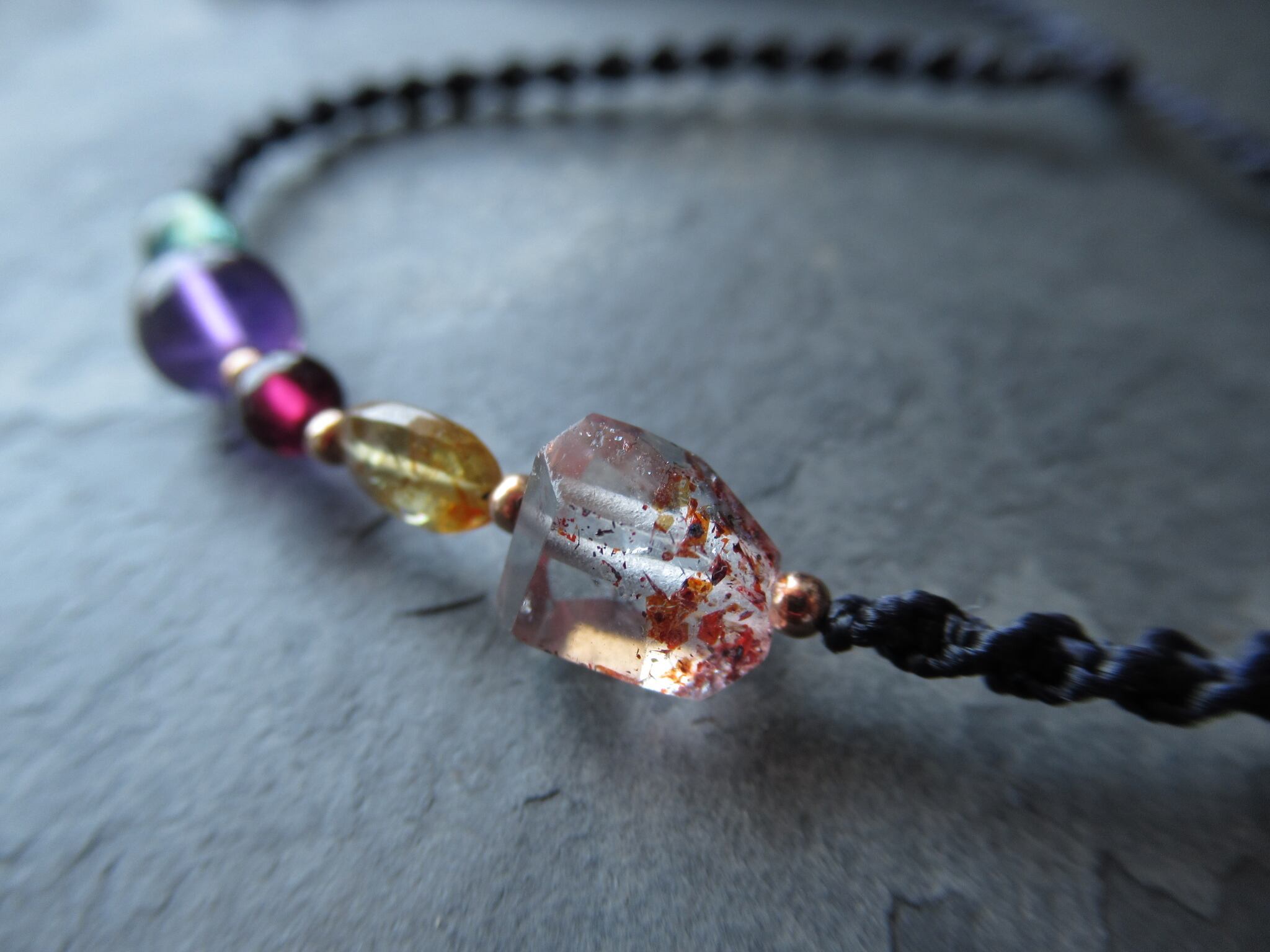 レピドクロサイトインクォーツをメインに色とりどりの天然石を組み合わせた1点もののブレスレットをお仕立ていたしました。