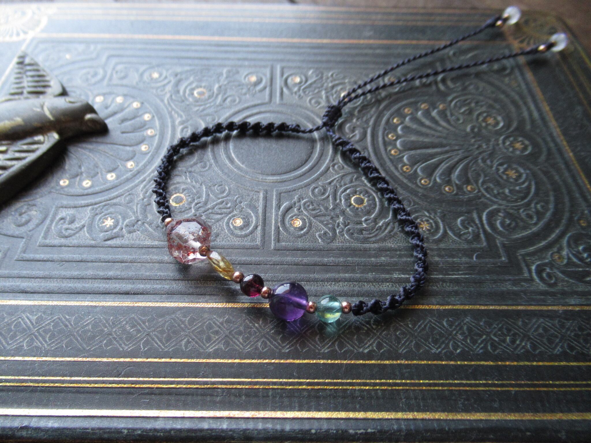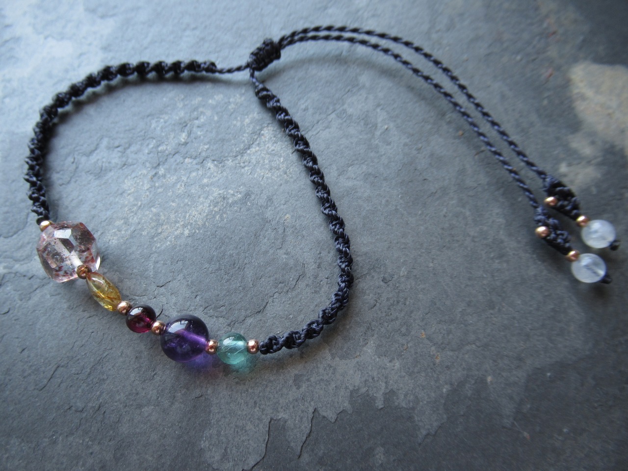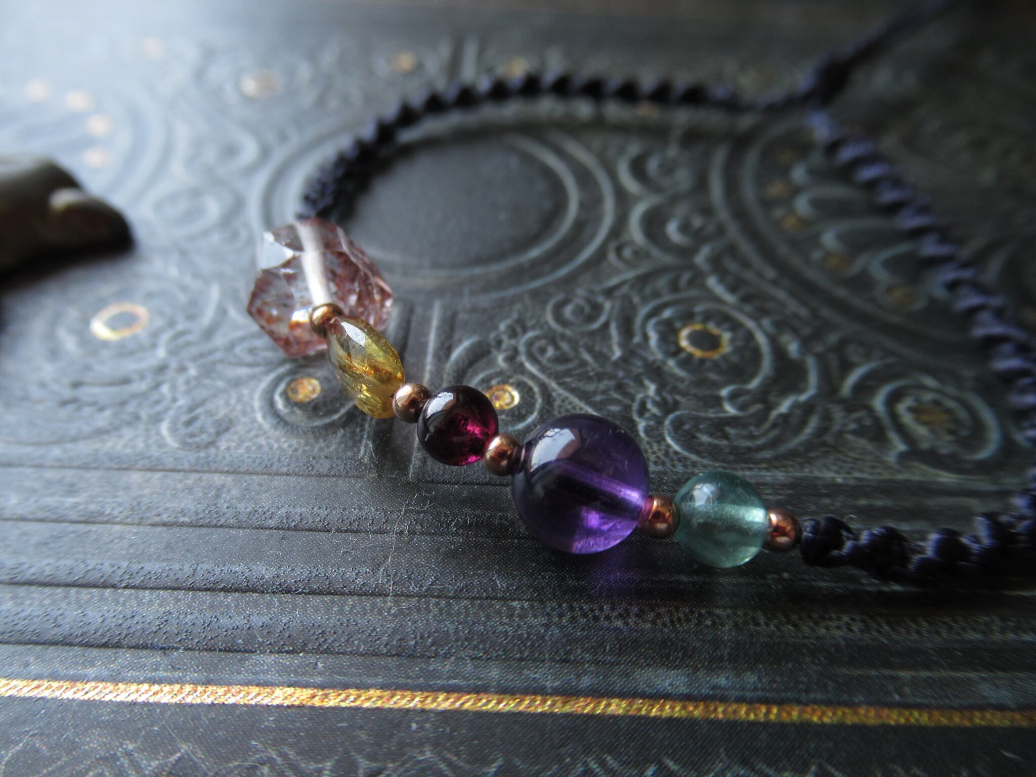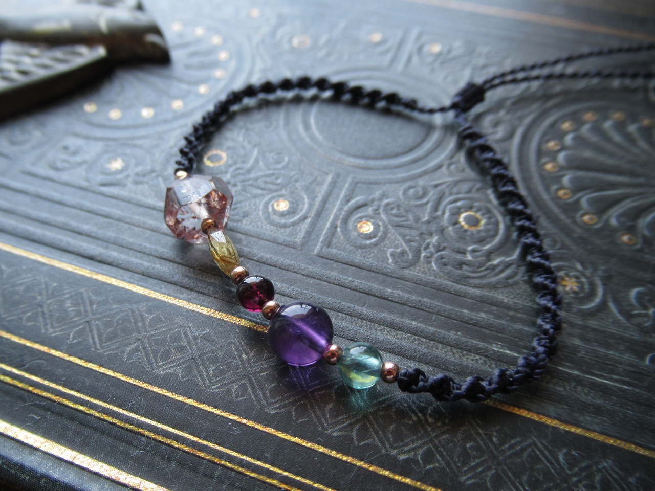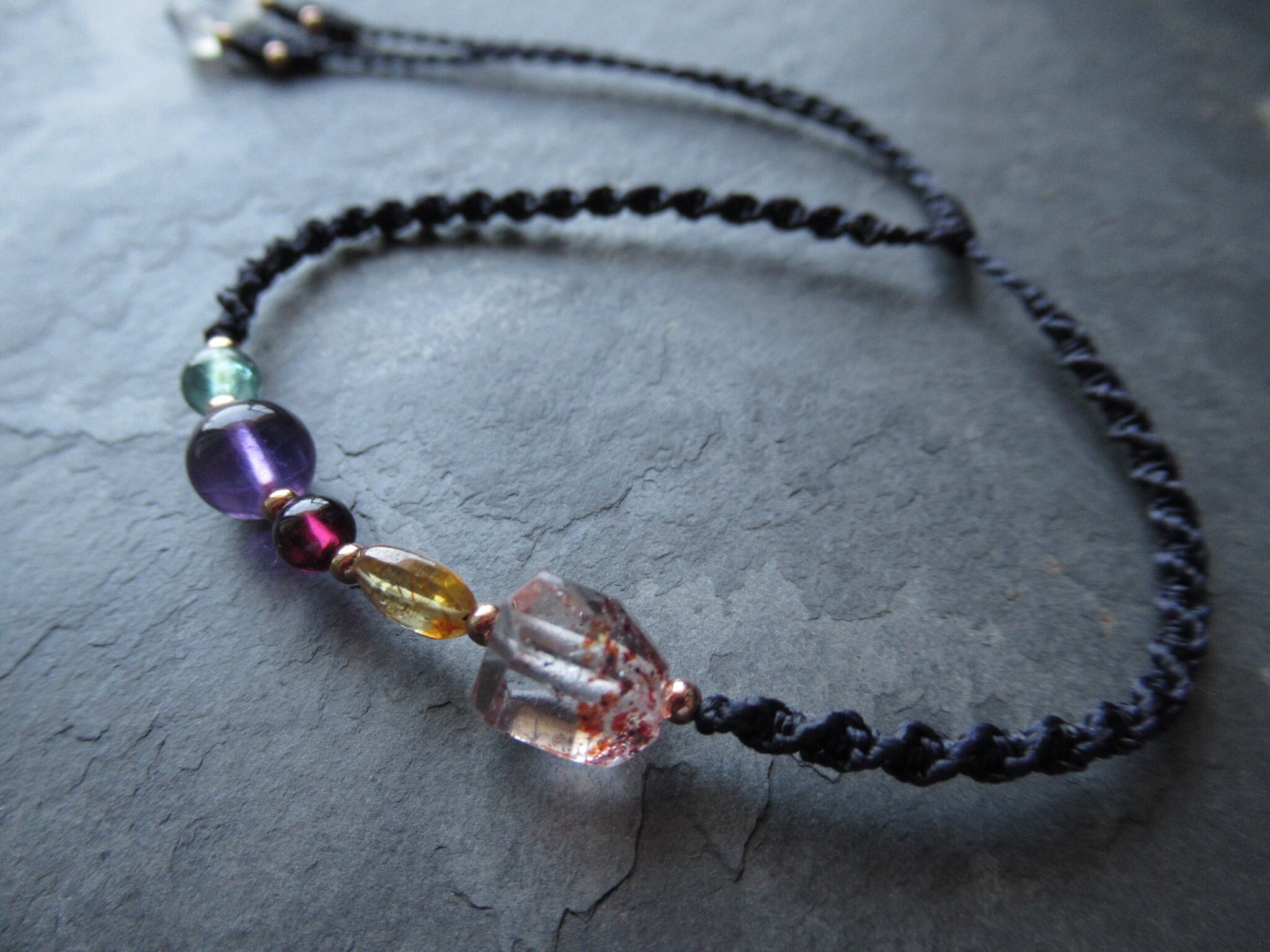レピドクロサイトインクォーツをメインに色とりどりの天然石を組み合わせた1点もののブレスレットをお仕立ていたしました。