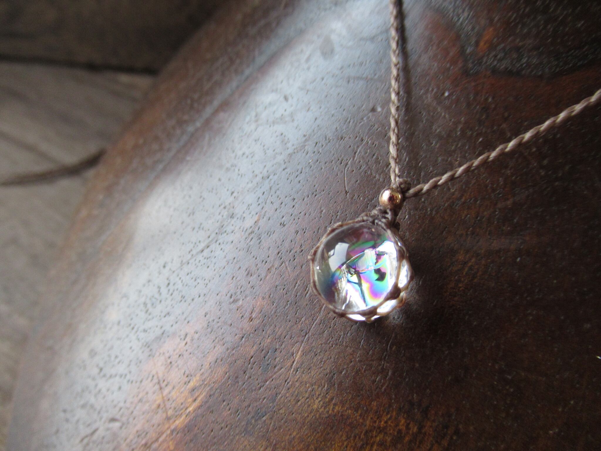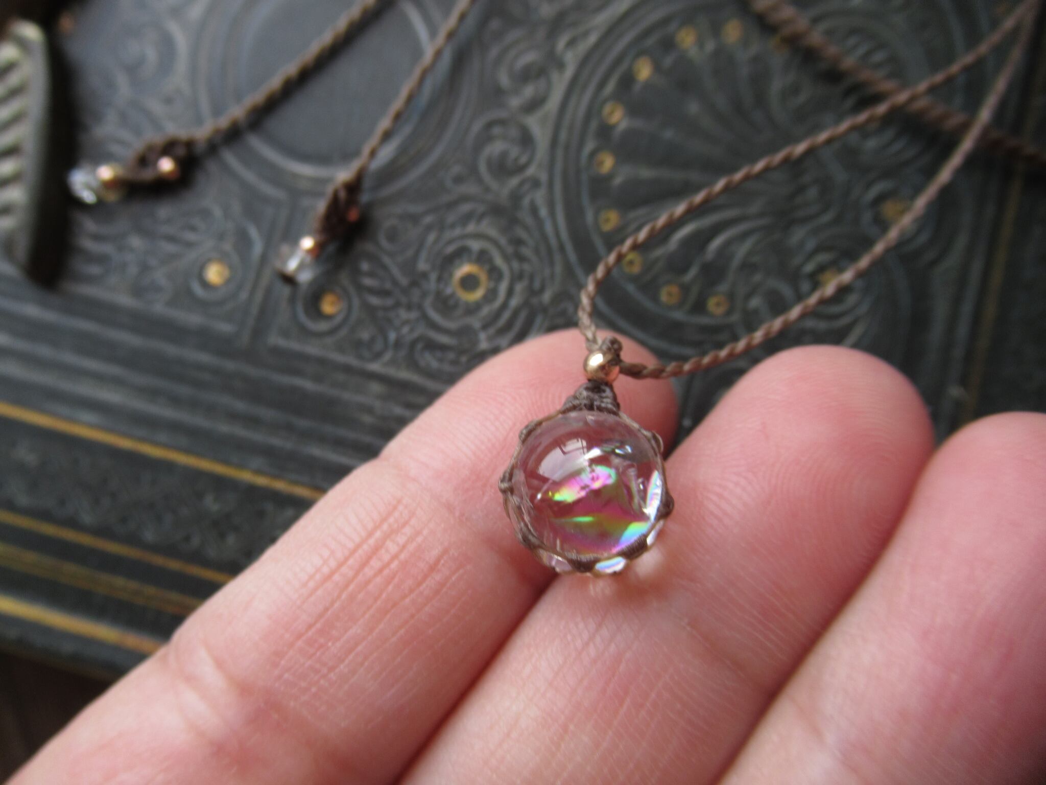 ちいさなしゃぼん玉のペンダント // アイリスクォーツ (糸:ブラウン)