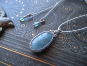 やや粒大きめの濃い目の水色のアクアマリンをシンプルですっきりとしたワンポイントペンダントにお仕立ていたしました。こちらの産地はアフリカです。