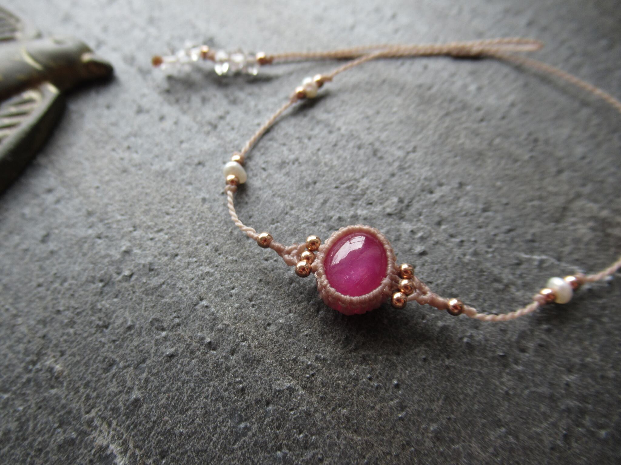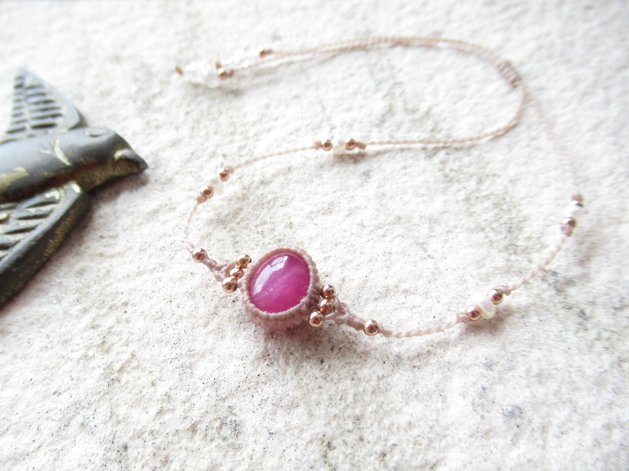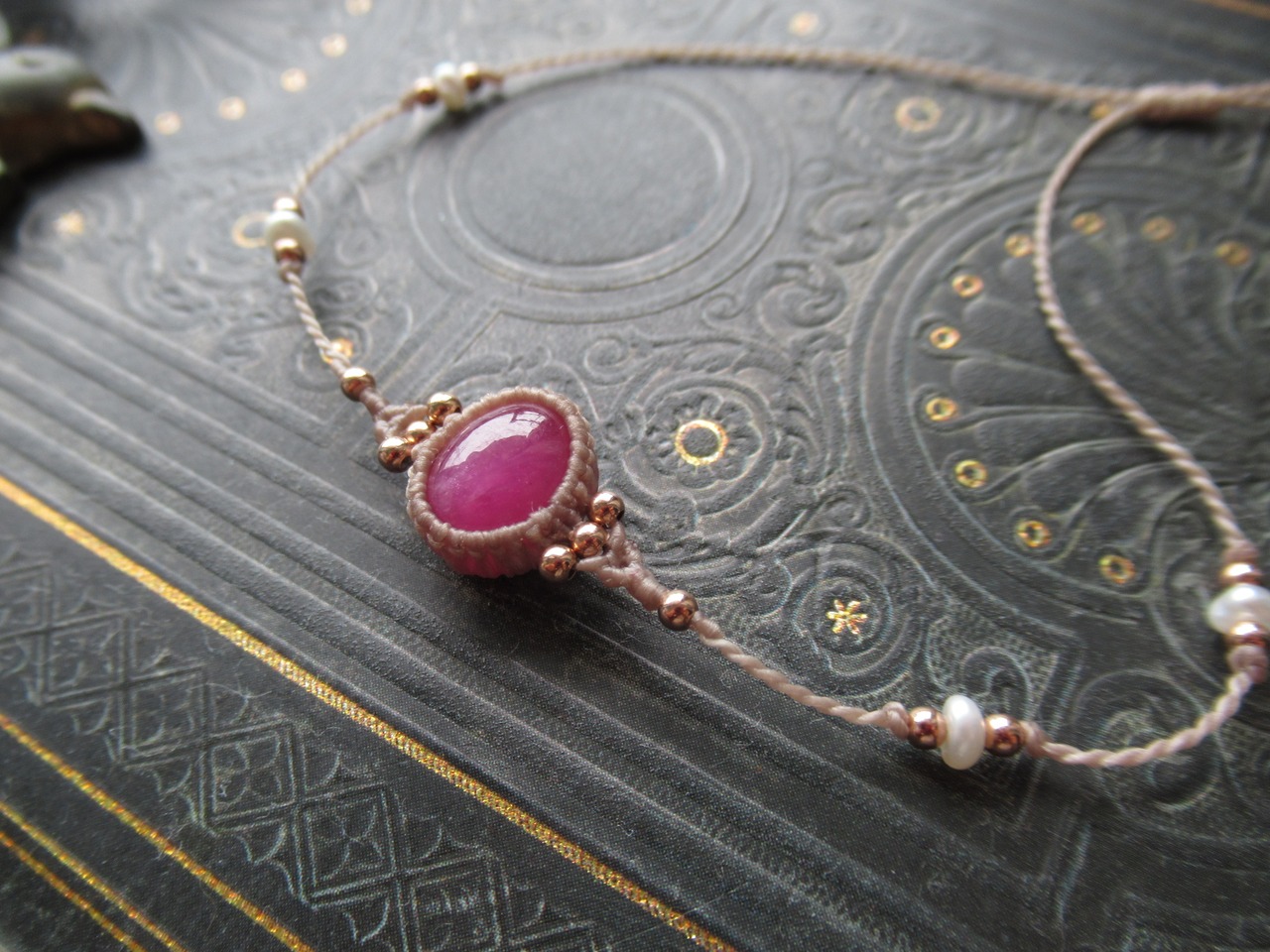 光沢感のある美しい色合いのスタールビーを、手首にそっと絡まる上品で繊細なブレスレットにお仕立ていたしました。