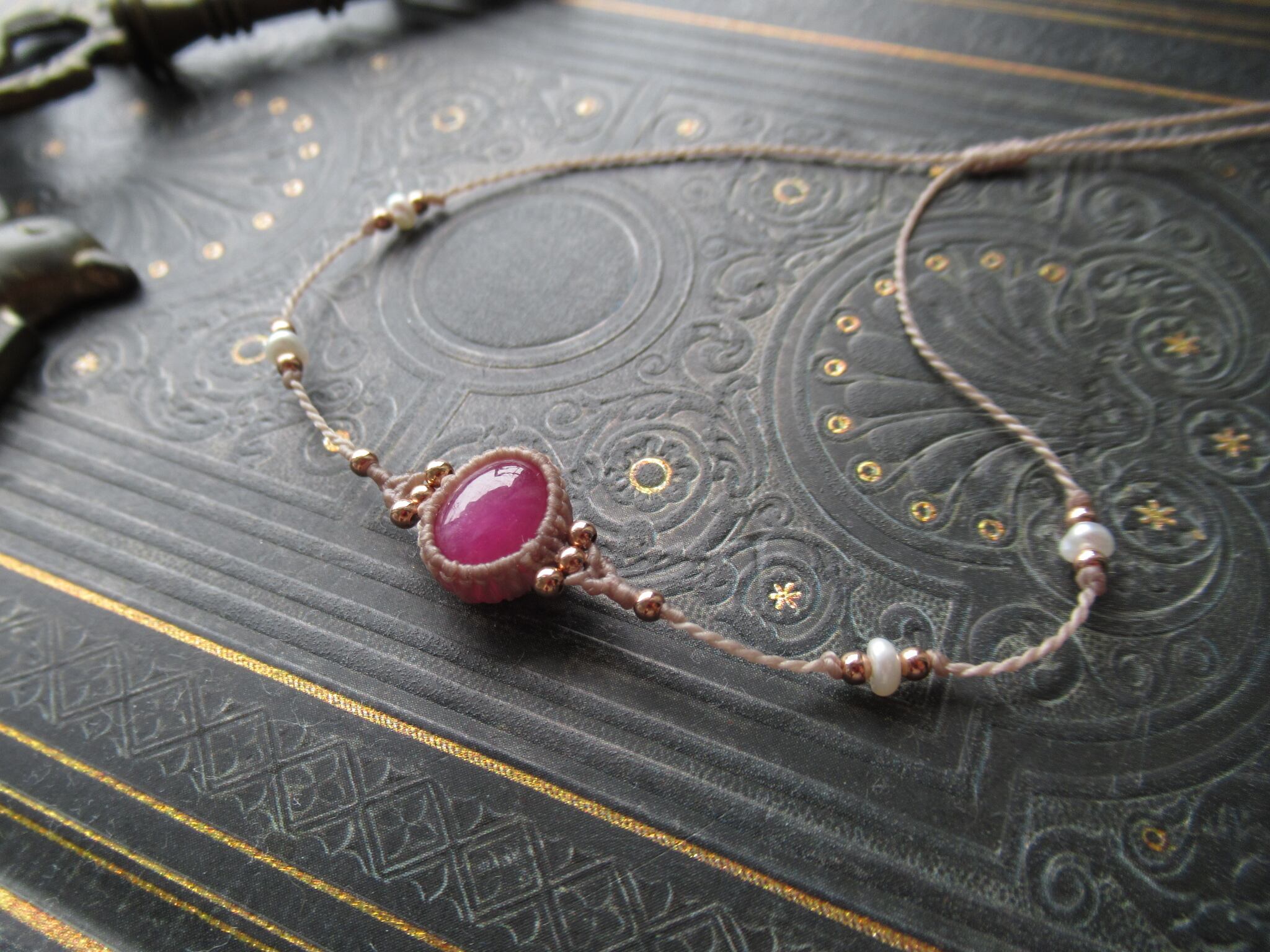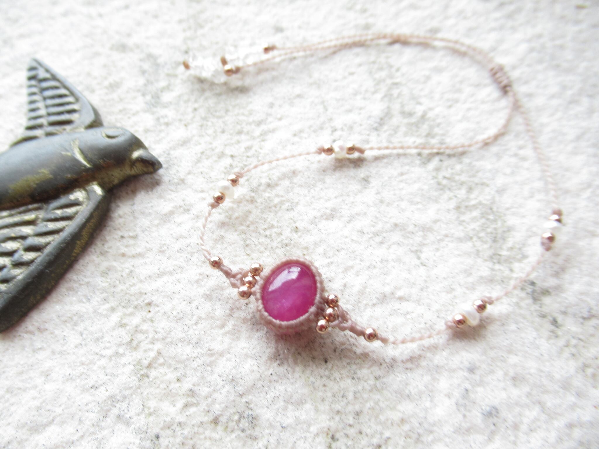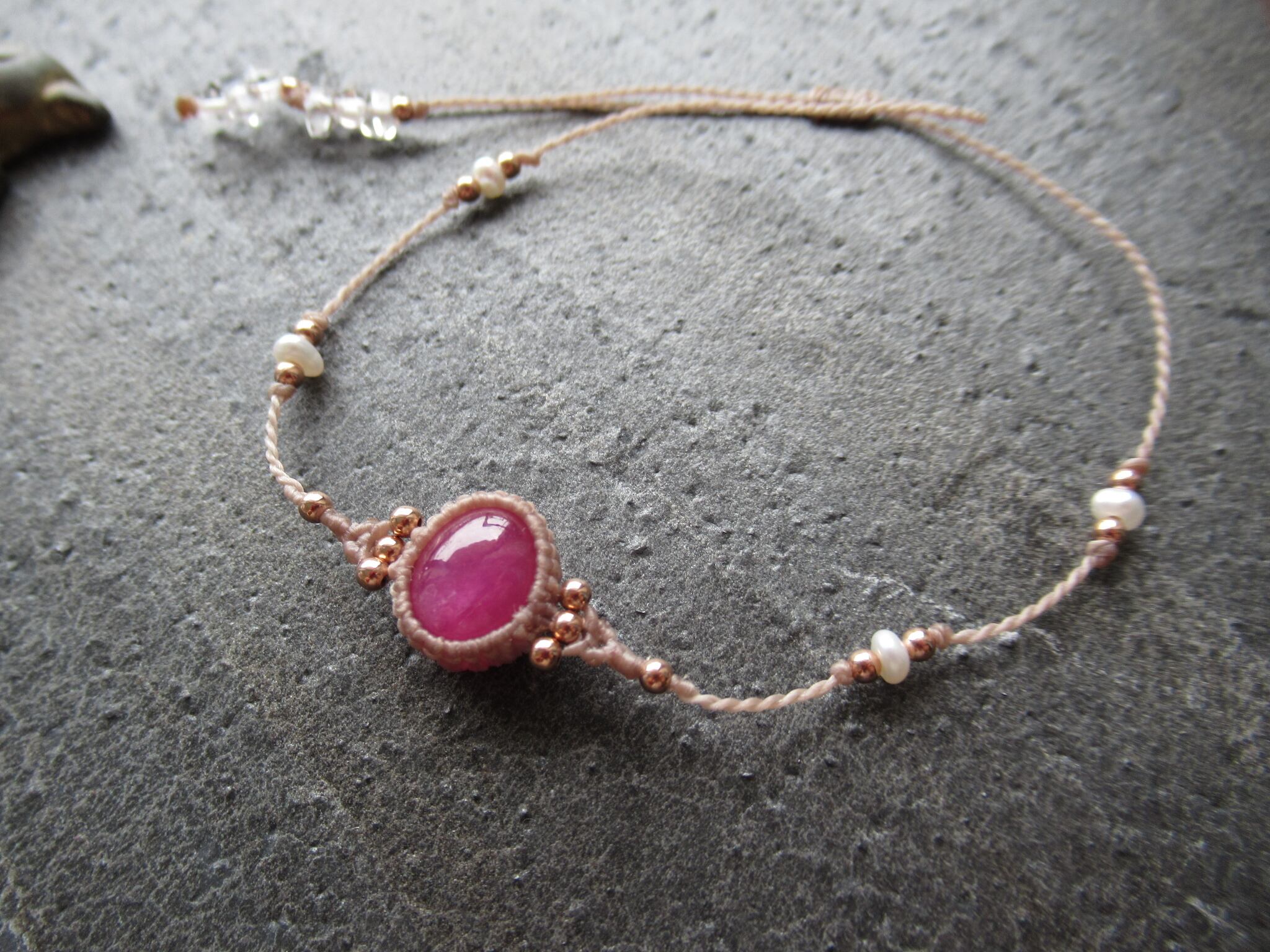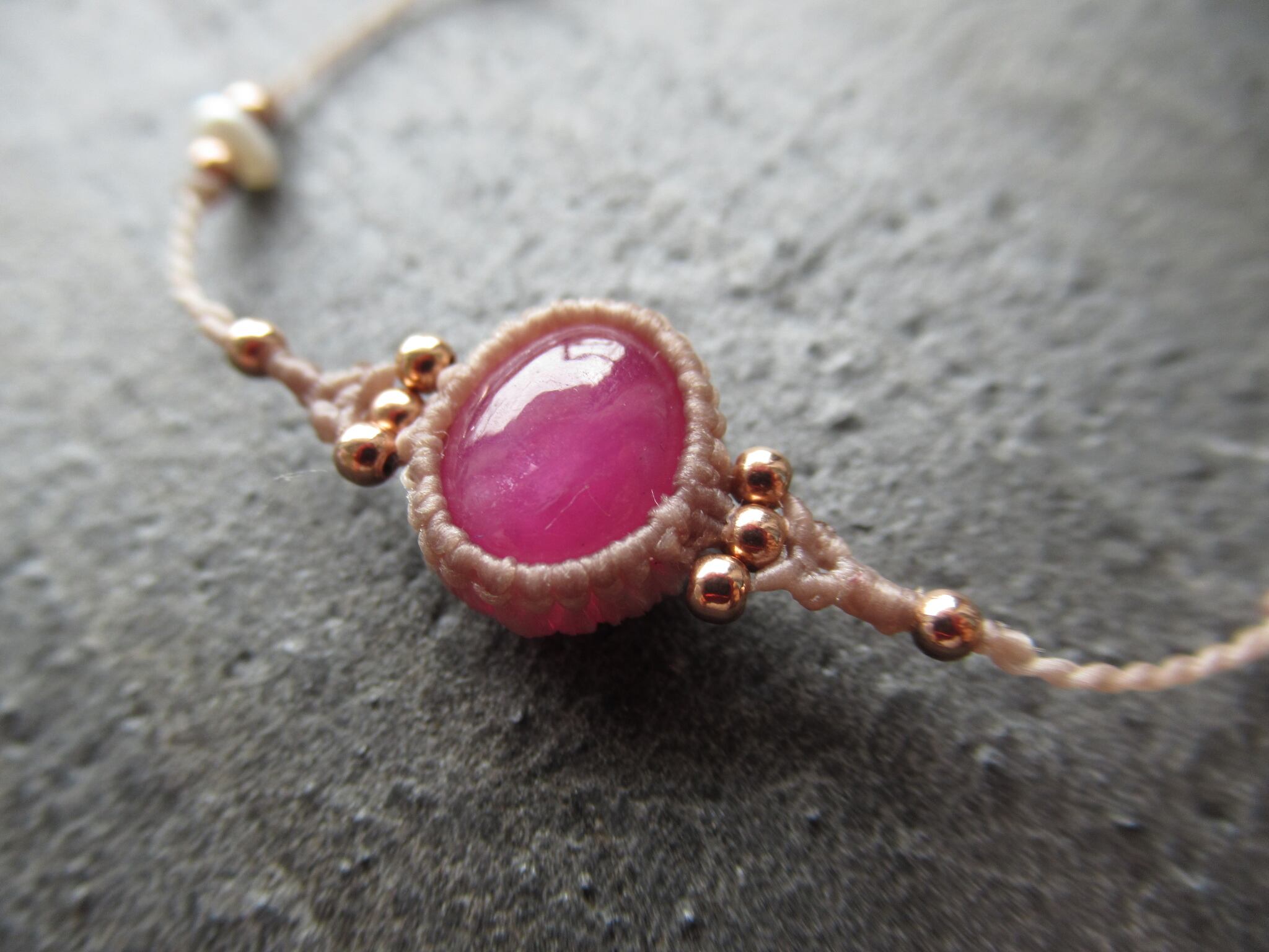 光沢感のある美しい色合いのスタールビーを、手首にそっと絡まる上品で繊細なブレスレットにお仕立ていたしました。