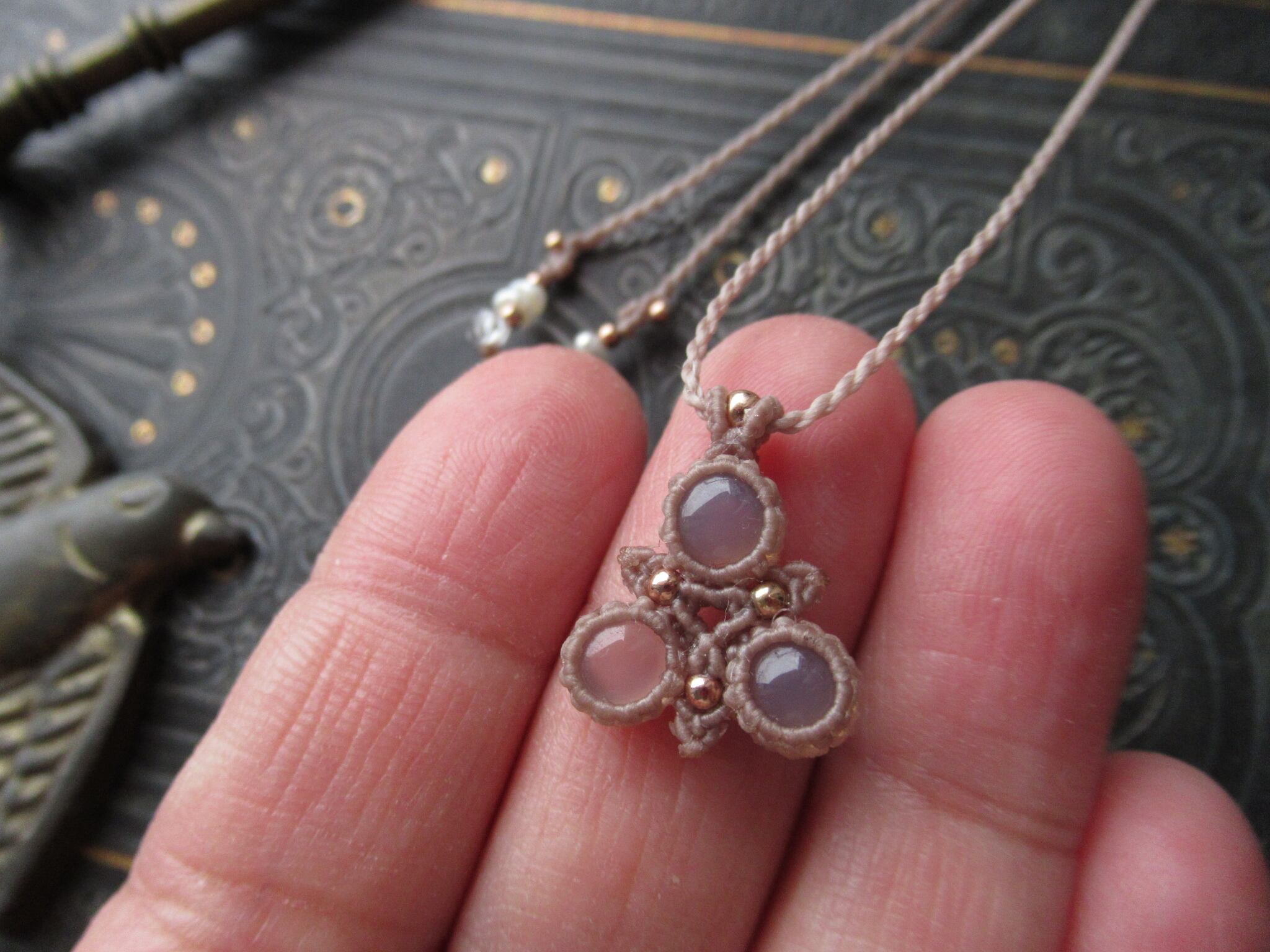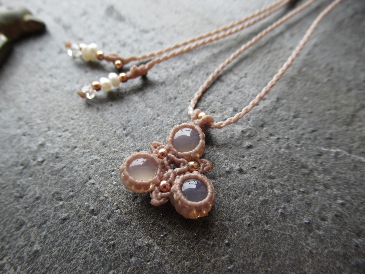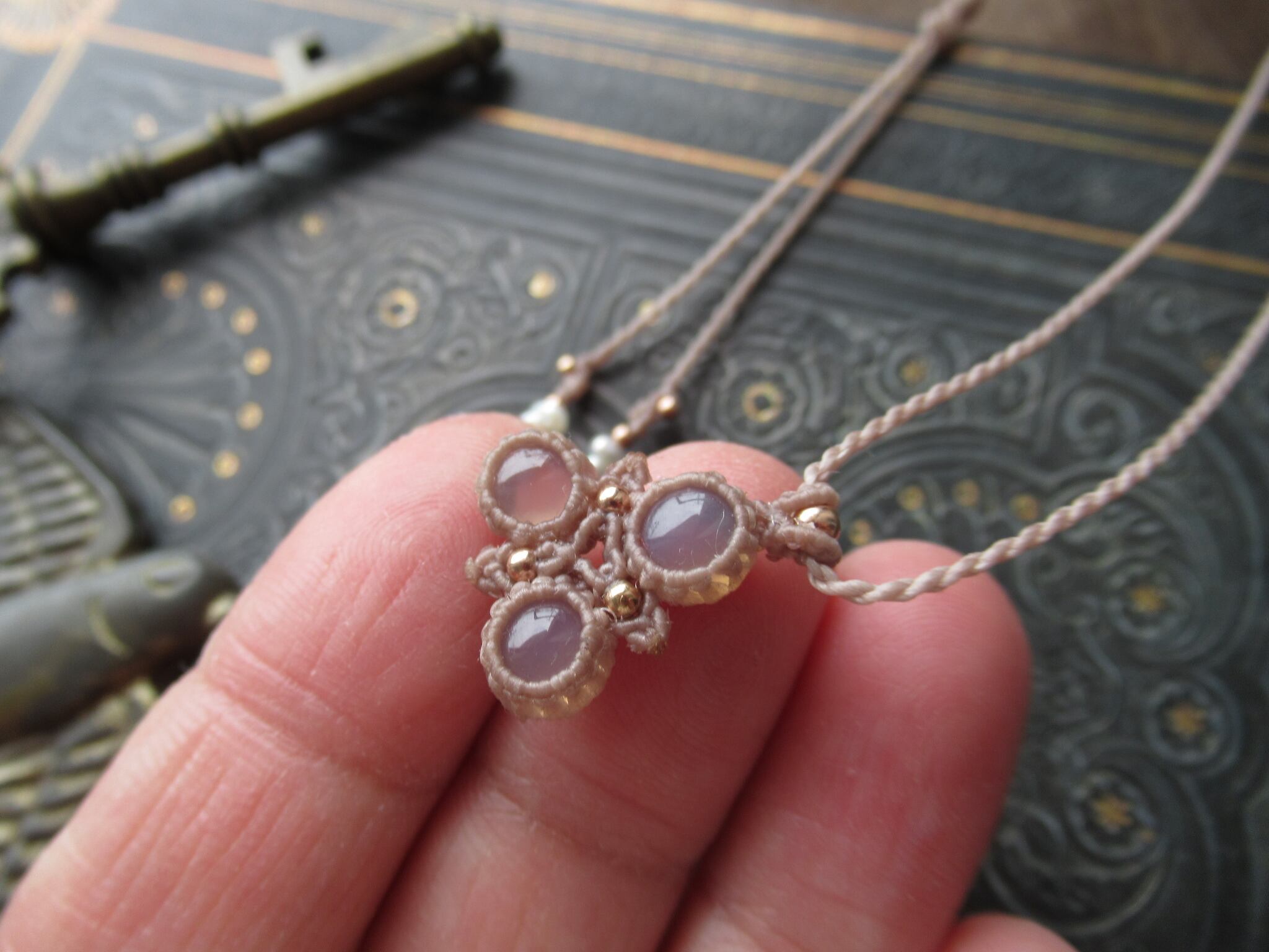 ささやかな粒感のグレームーンストーンに似た、グレーオニキスで魔除けの意味を込めてデルタペンダントをお仕立ていたしました。