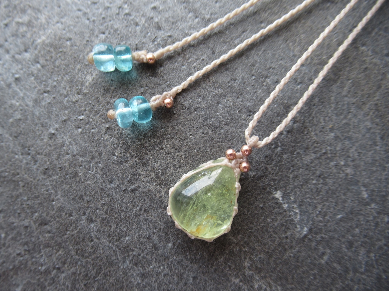 せっかくの色合いですので、シンプルに、天然石ならではの素材感や色合いをたっぷりお楽しみいただけるよう、指先で触れやすいように極細の糸で丁寧にしっかりと編み上げております。