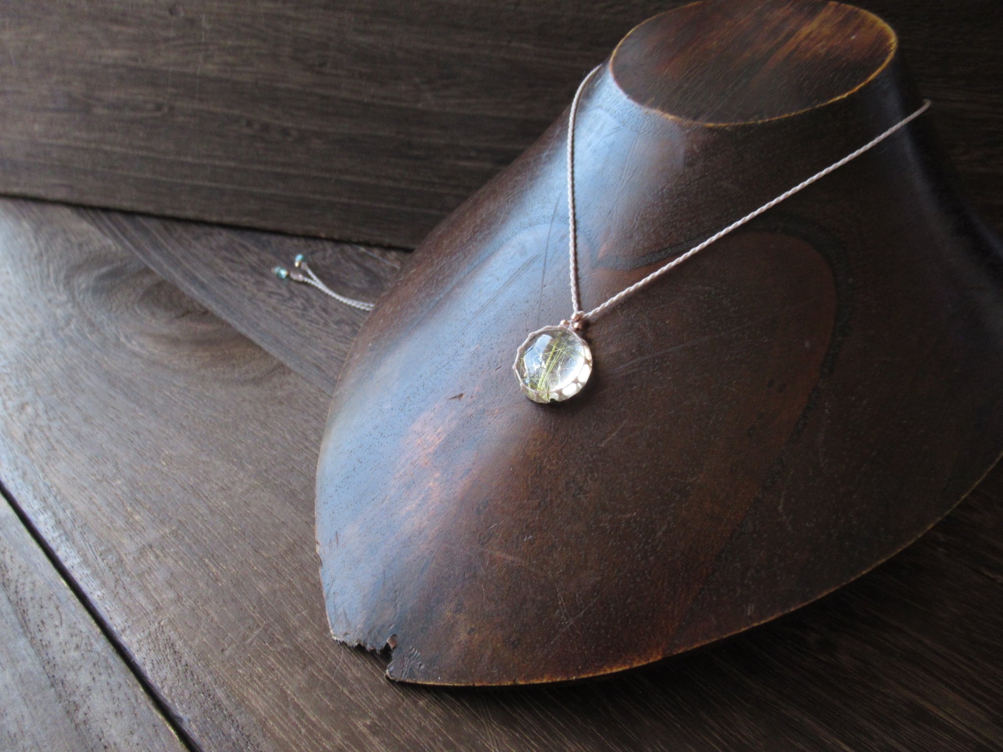 ぷっくりとした少しスモーキー風味のルチルクォーツでペンダントをお仕立ていたしました。