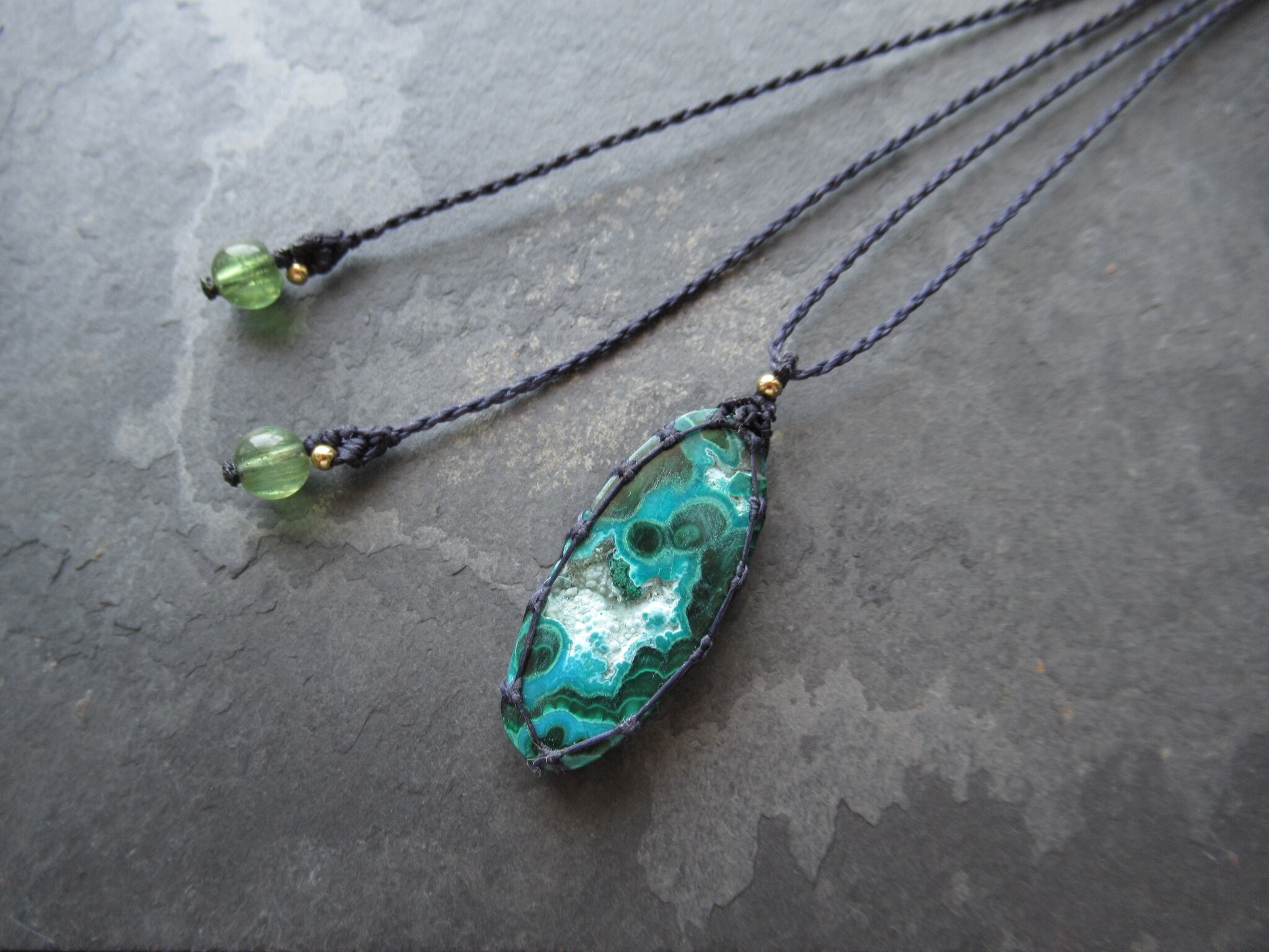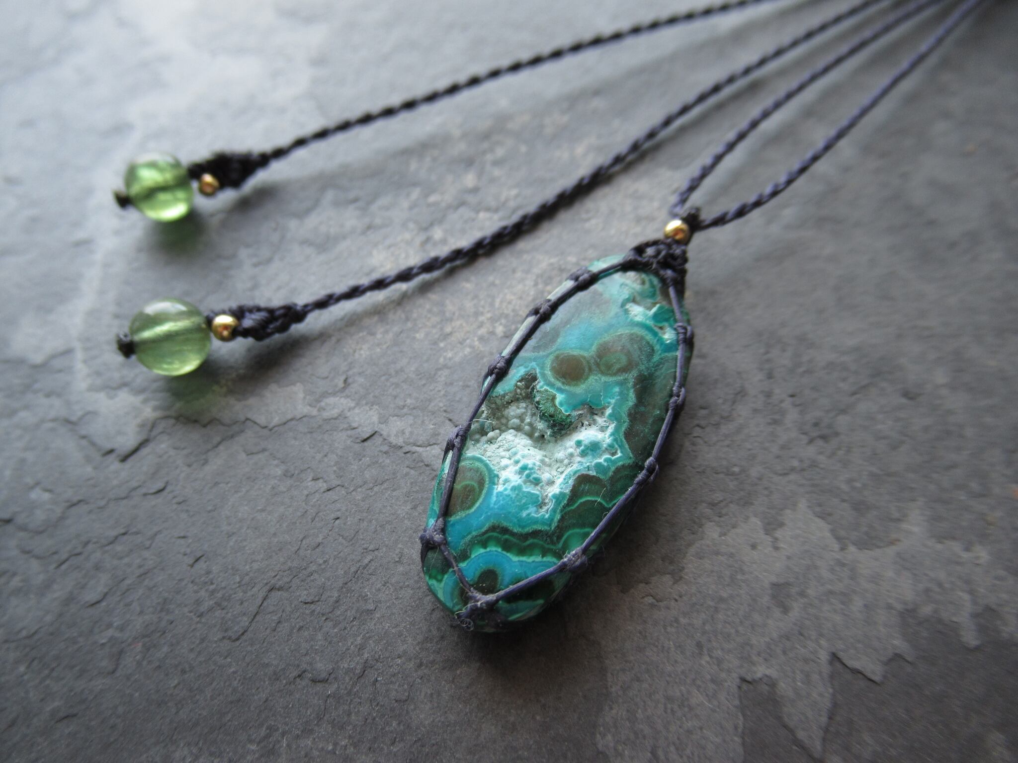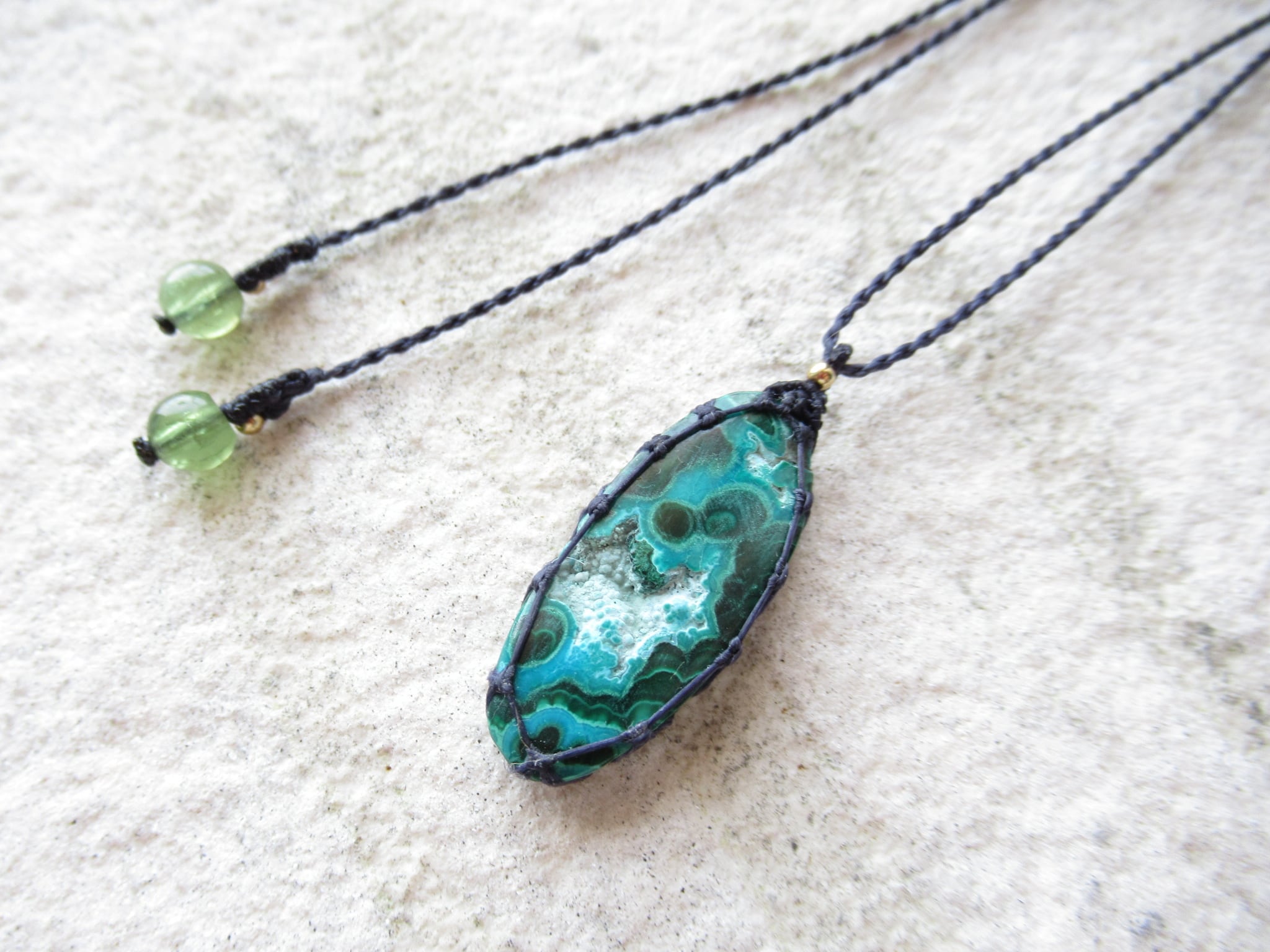 ドゥルージー風味のクリソコラマラカイトのシンプルペンダント // 0.25mm仕上げ