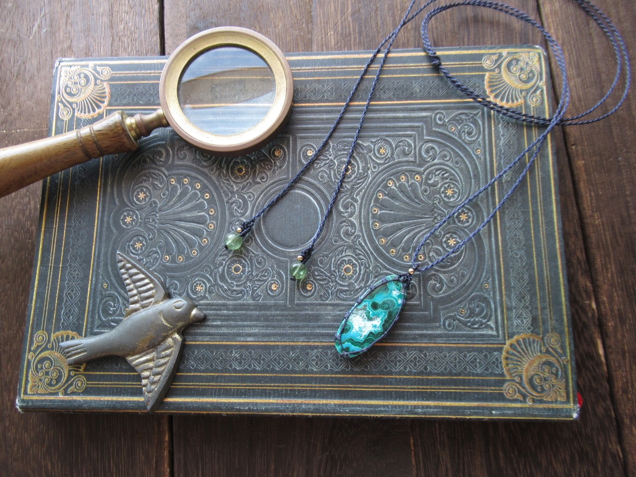 少しドゥルージー風味のクリソコラマラカイトでペンダントをお仕立ていたしました。