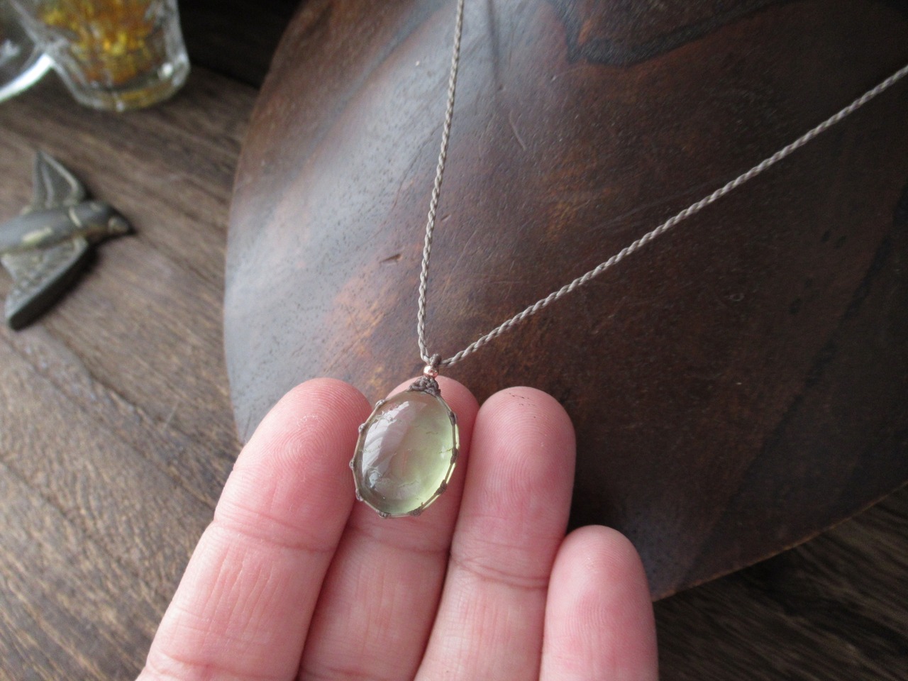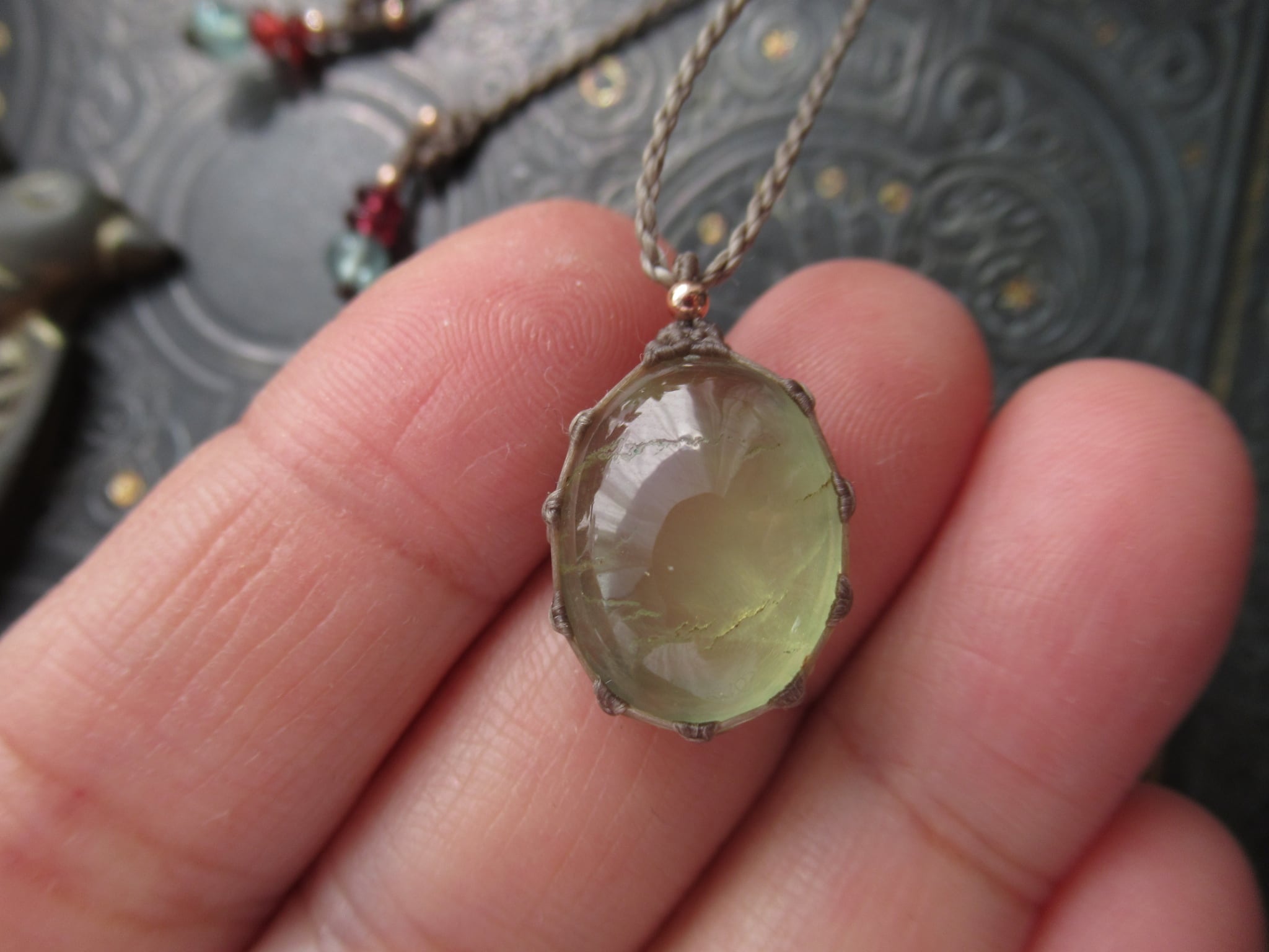 明るいマスカットグリーンがとても美しい透明感のあるプレナイトをシンプルなペンダントにお仕立ていたしました。