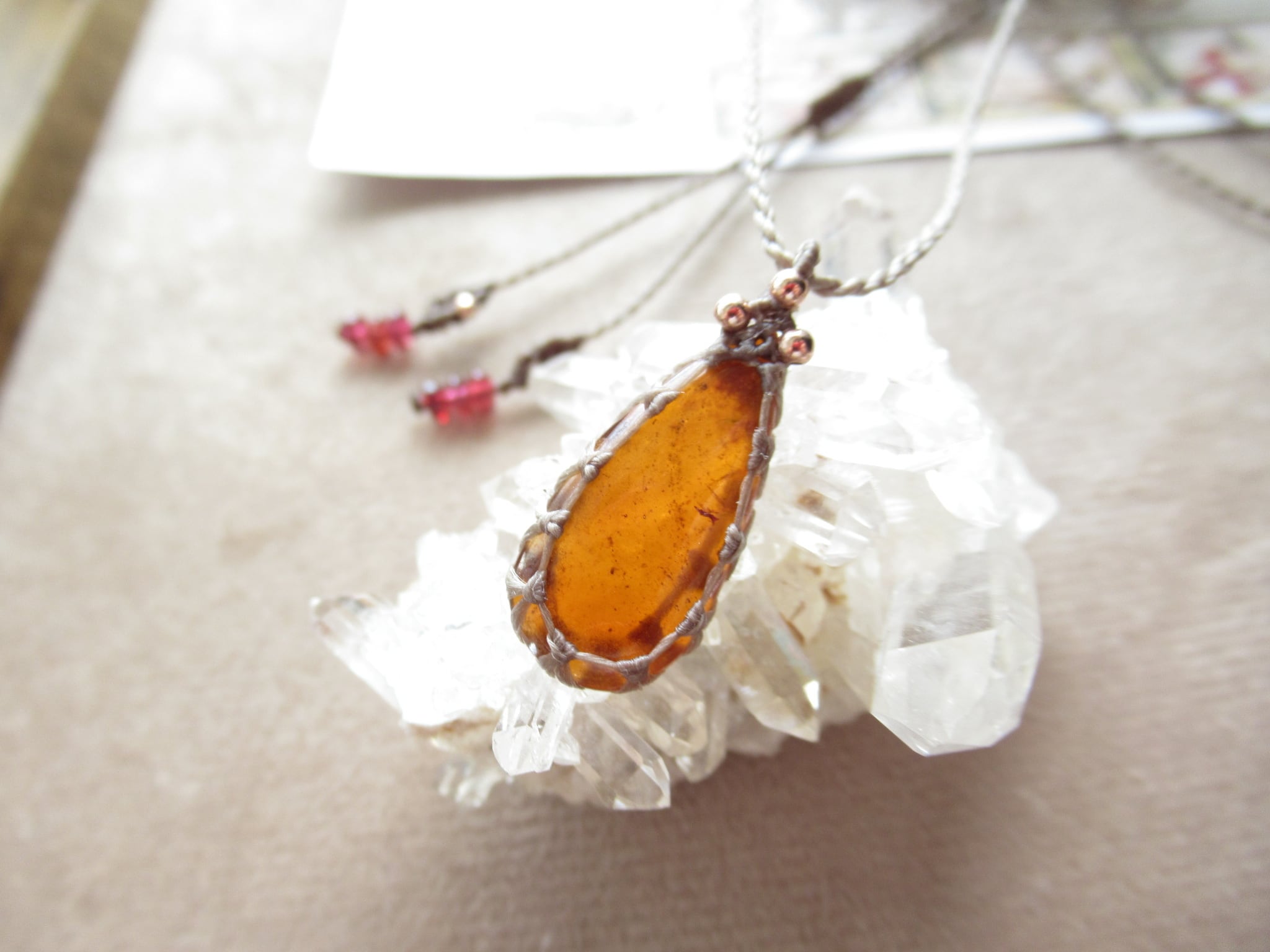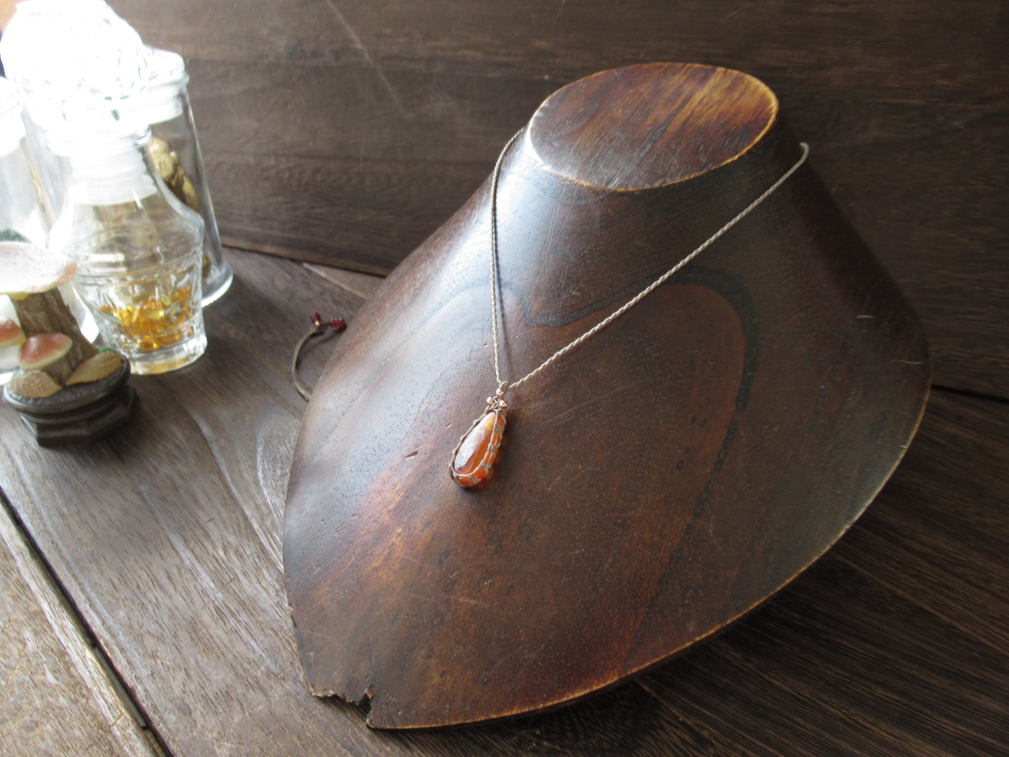 細長いやや、粒が大きめのオレンジカイヤナイトをシンプルで日常使いしやすいペンダントにお仕立ていたしました。