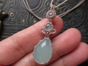 シーブルーカルセドニー×宝石質レインボームーンストーン×アクアマリンキャッツアイのペンダント