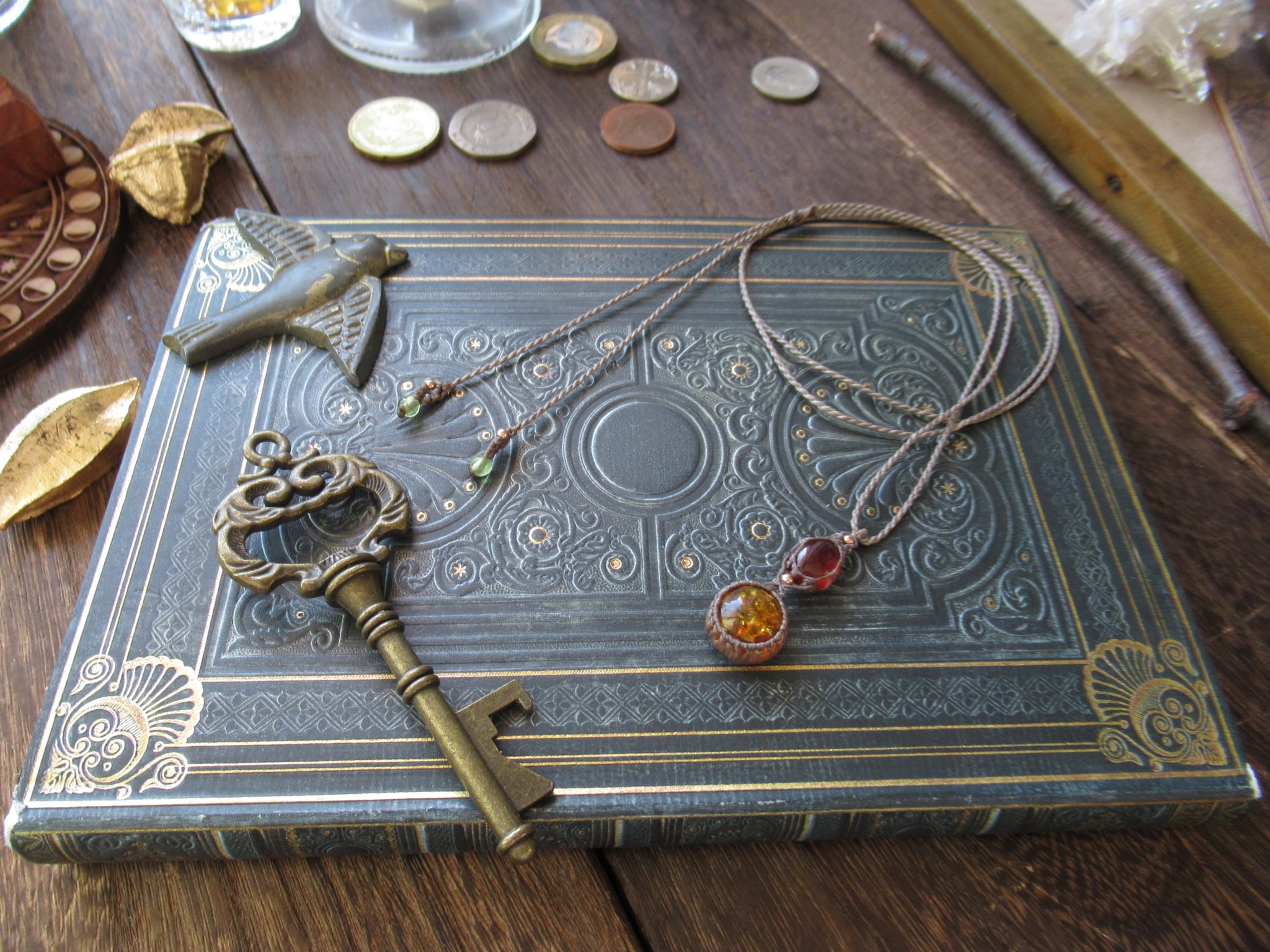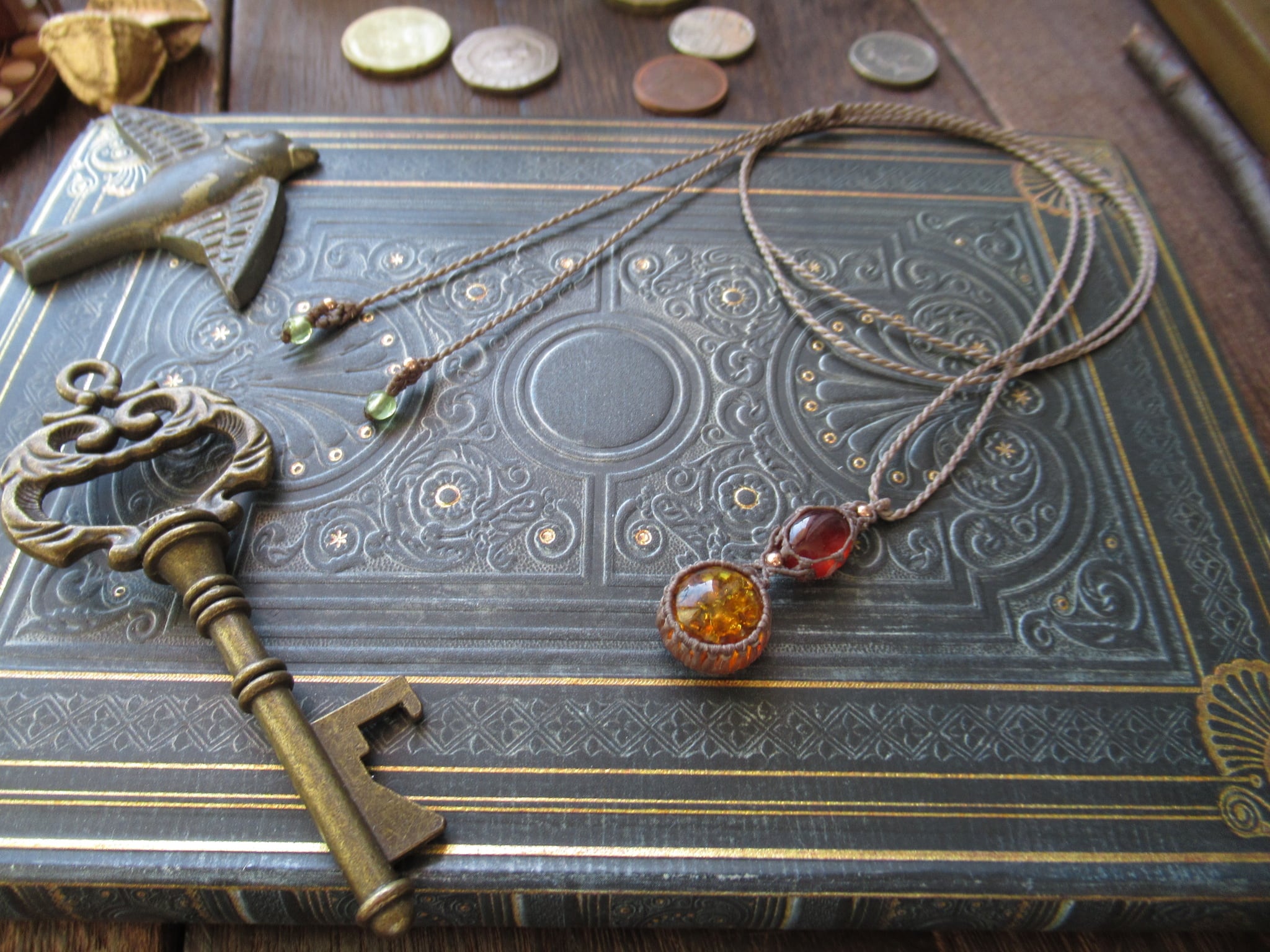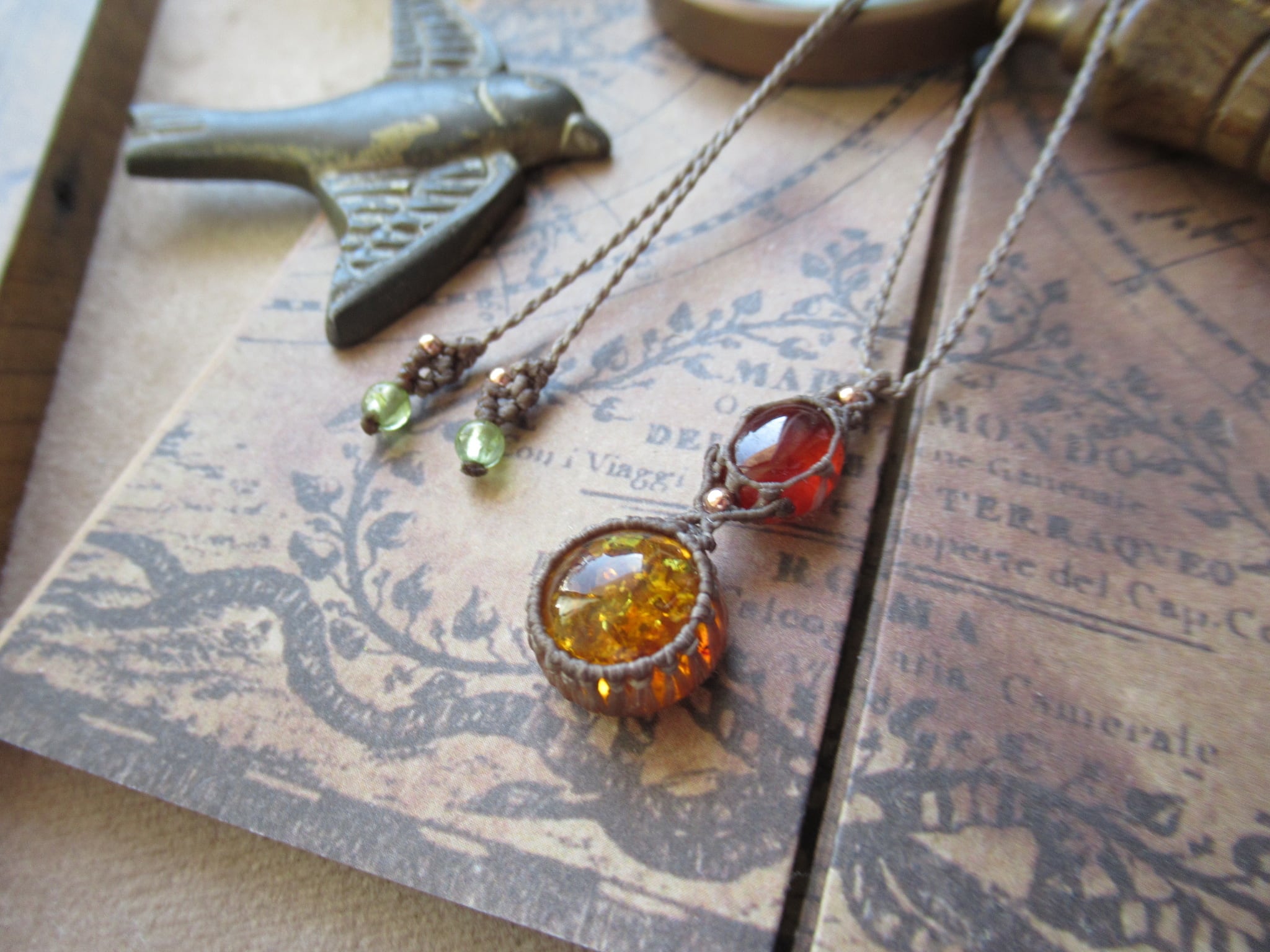 下部のバルティックアンバーはやわらかな蜂蜜色で、冬の光を透かしたときほわりと感じられる温かみが魅力の一粒です。
