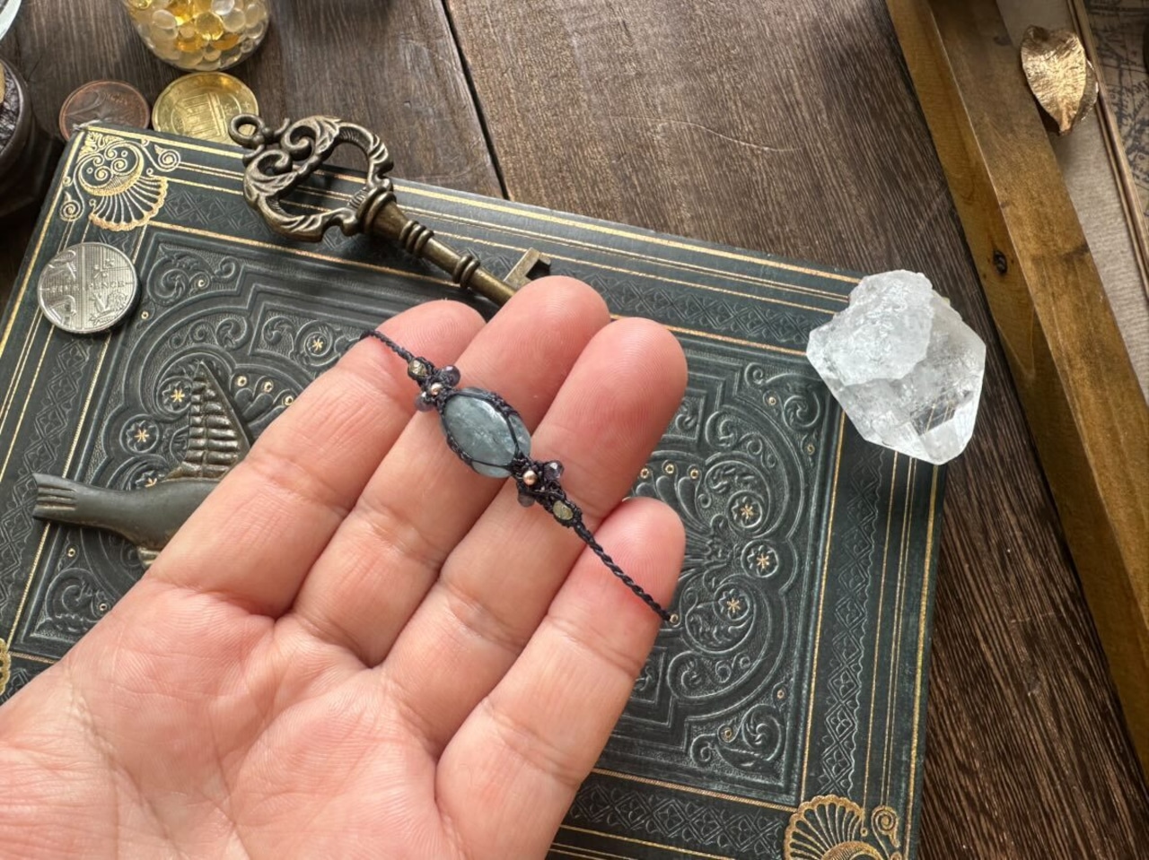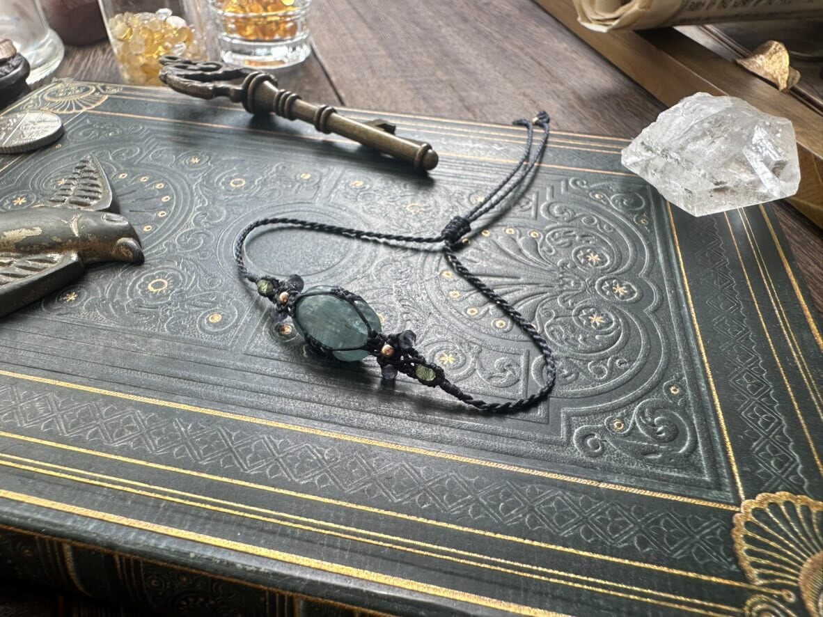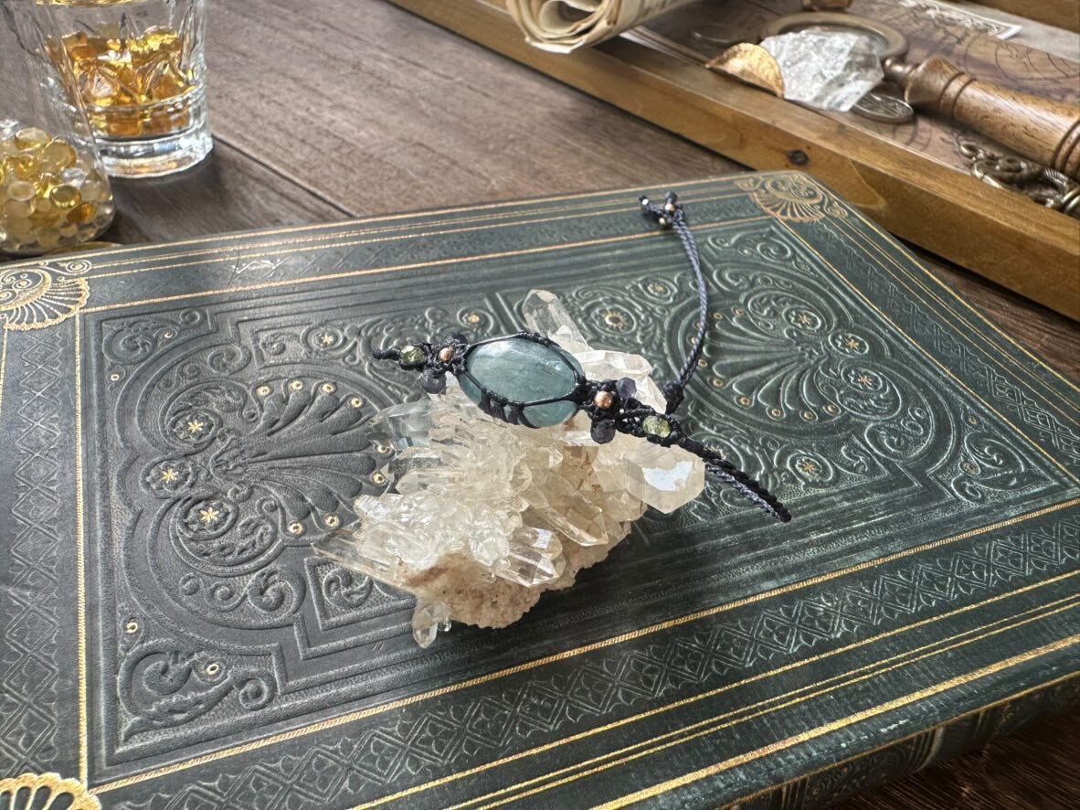 スッキリとした色合いの、ティールカラーと呼ばれるカイヤナイトでブレスレットをお仕立ていたしました。
