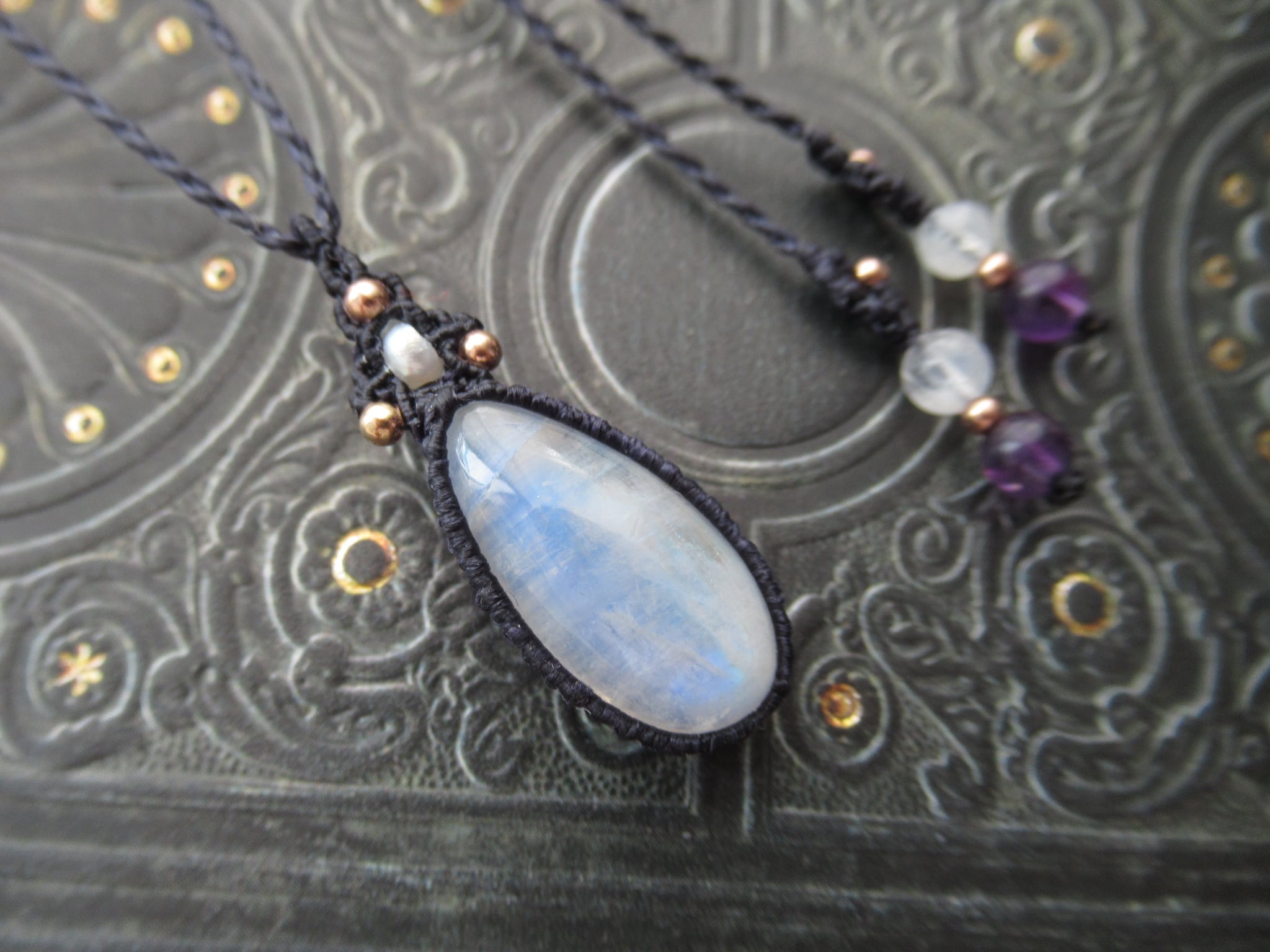 パーツ:14kgf、淡水パール、レインボームーンストーン、アメジスト
