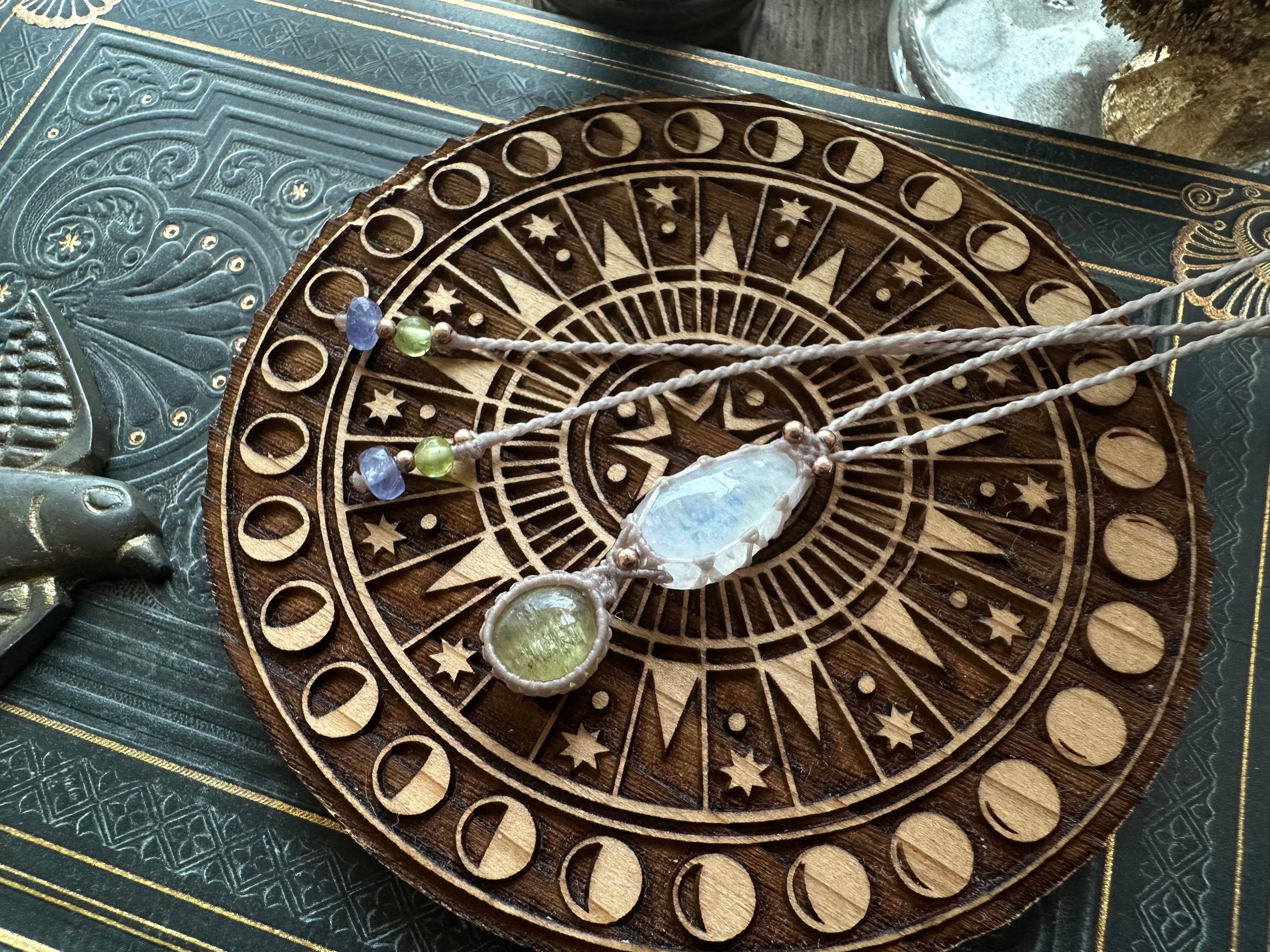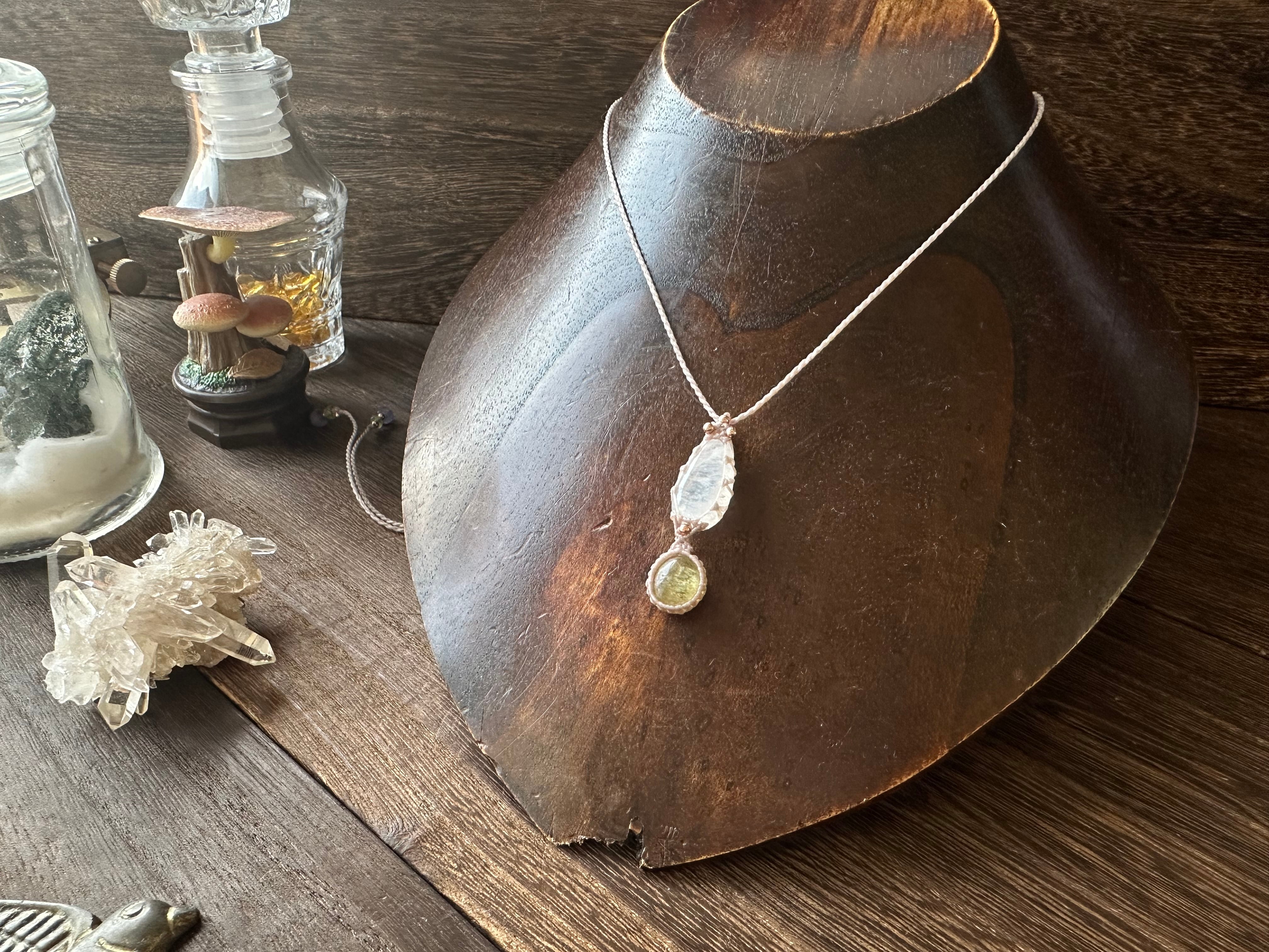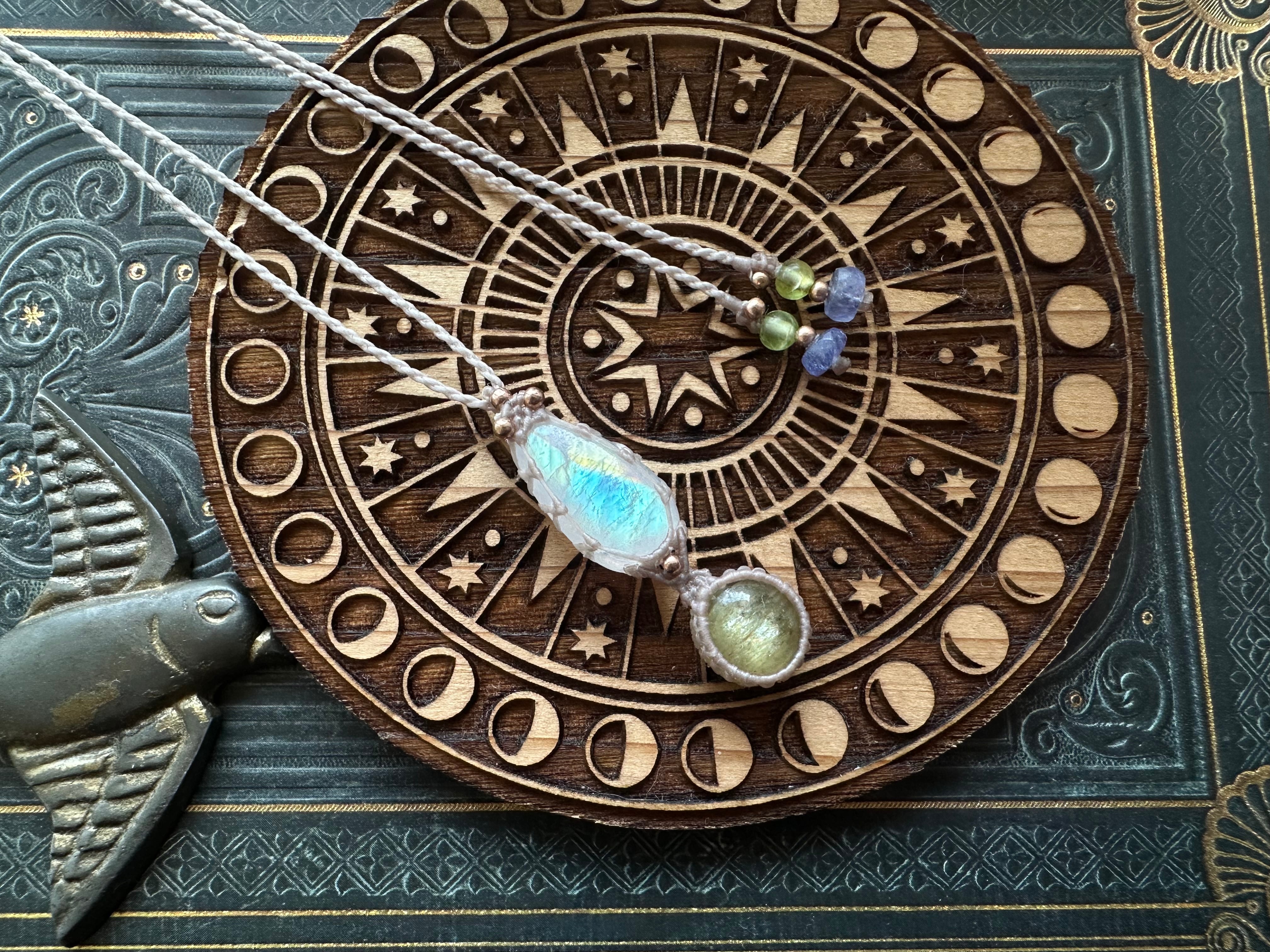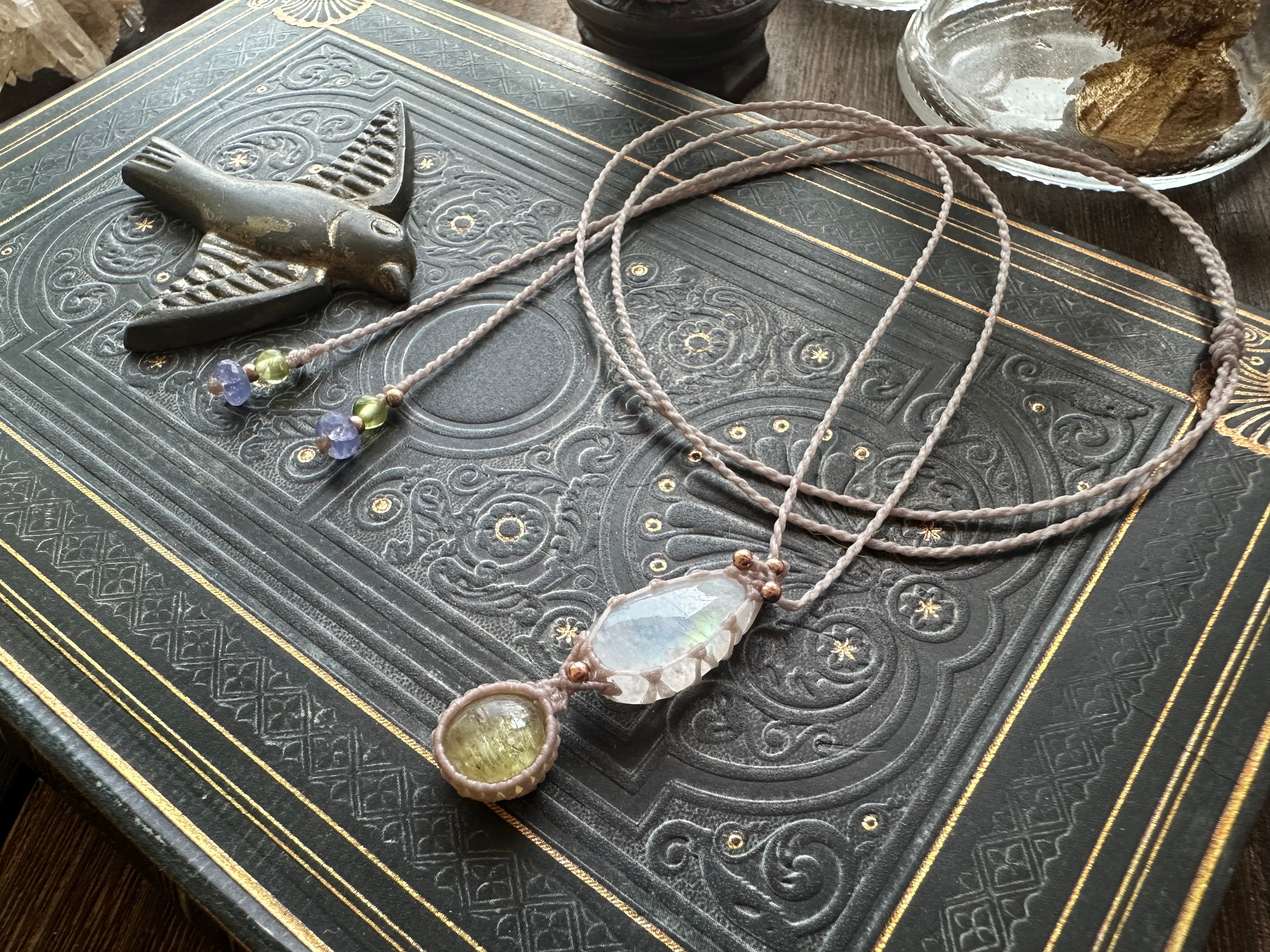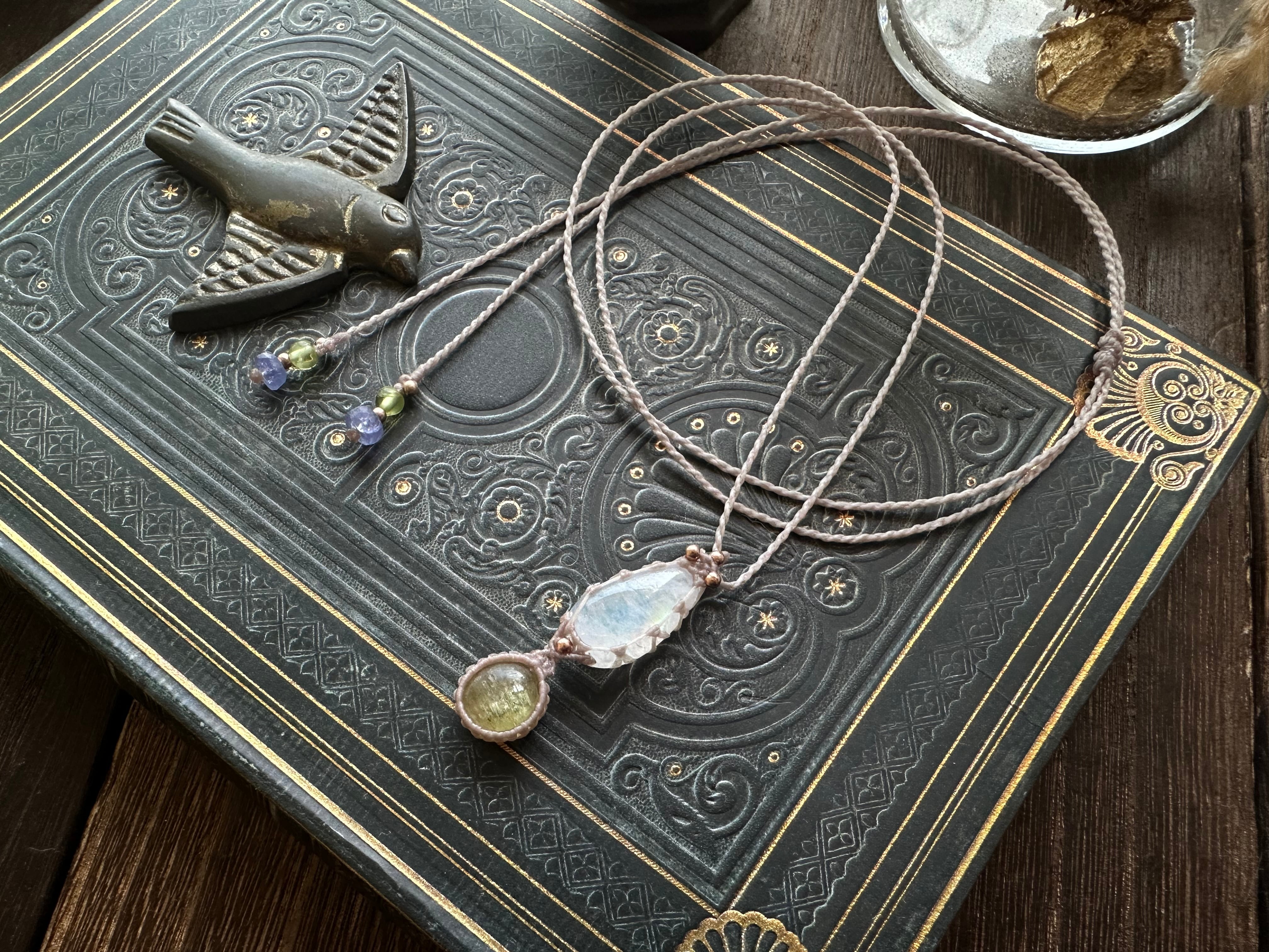 月の光が夜の海の上に広がる様子をイメージして、イエローアパタイトとレインボームーンストーンでペンダントをお仕立ていたしました。