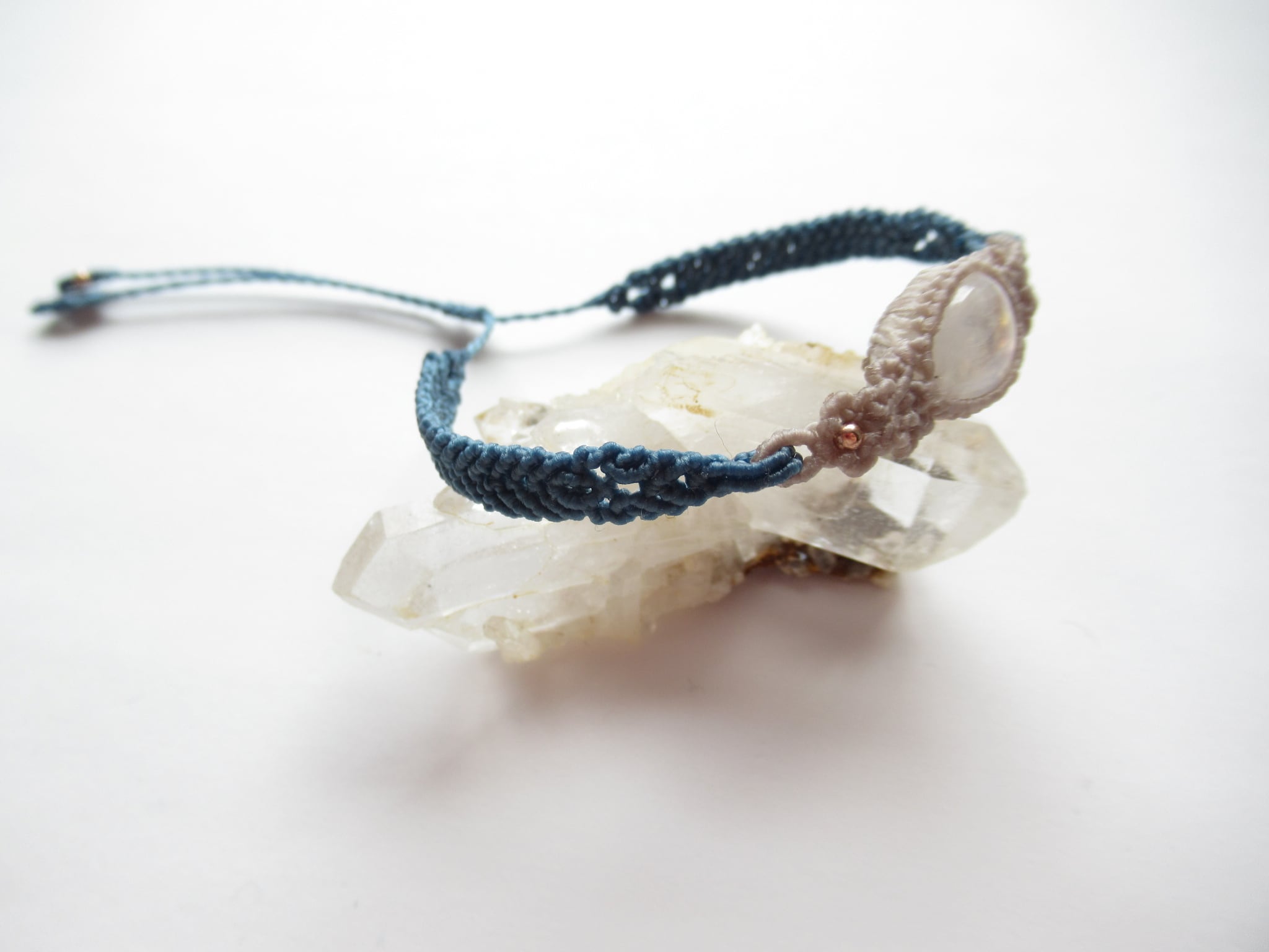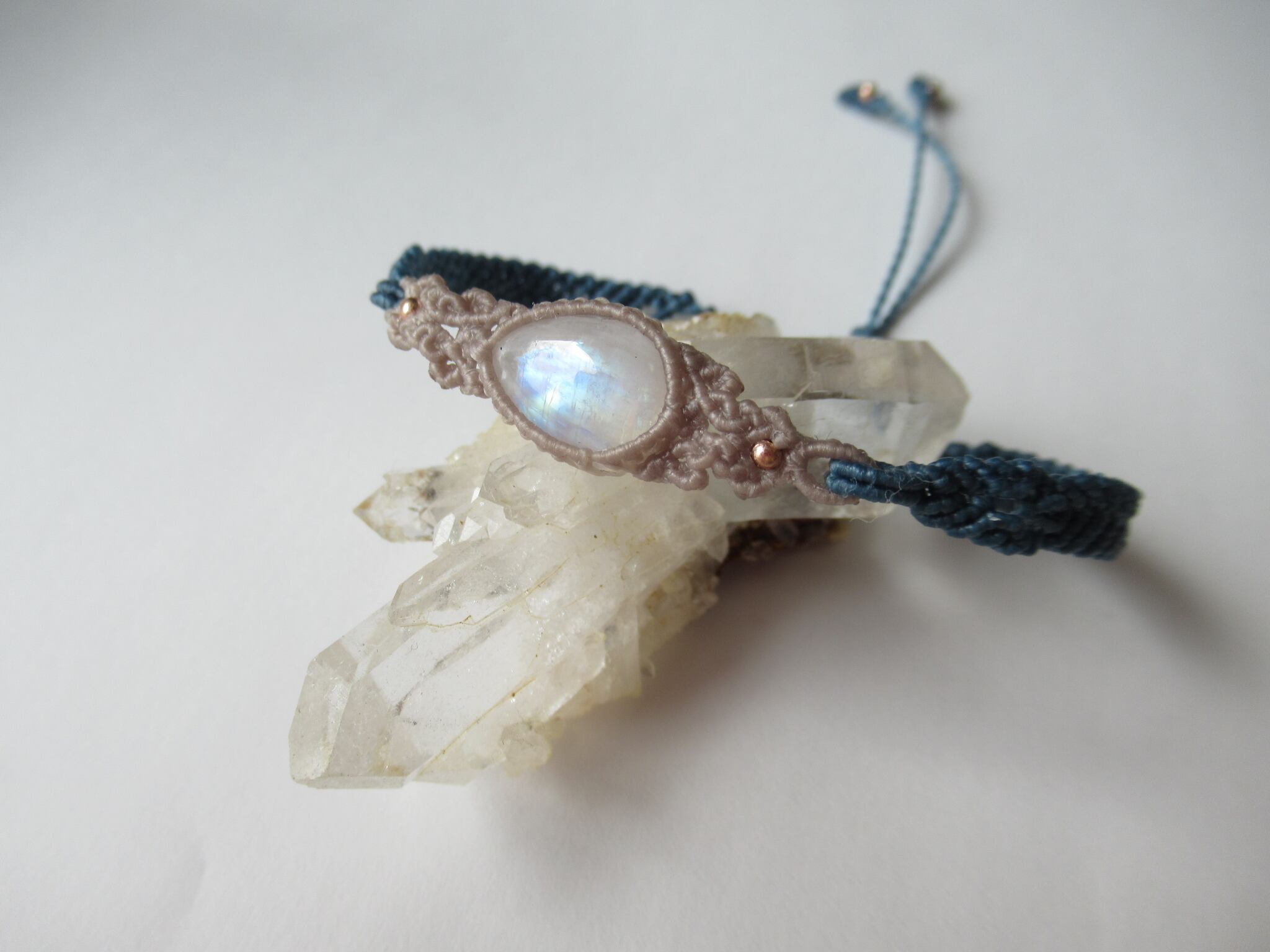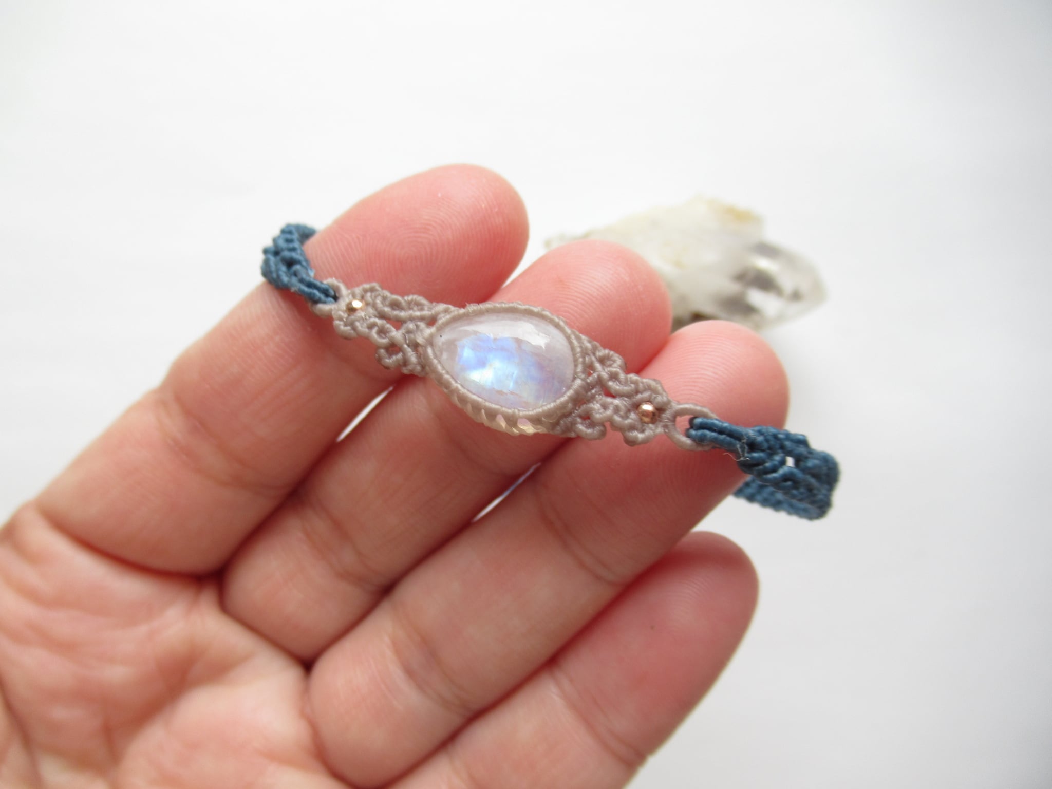 レインボームーンストーンの紋様編みブレスレット