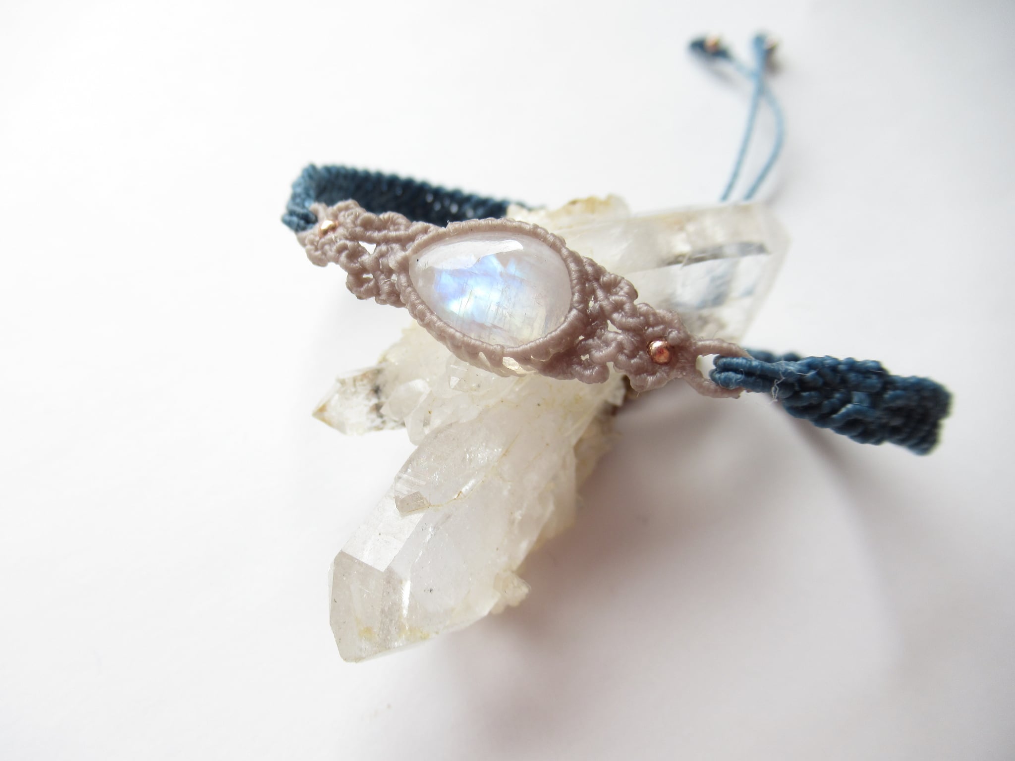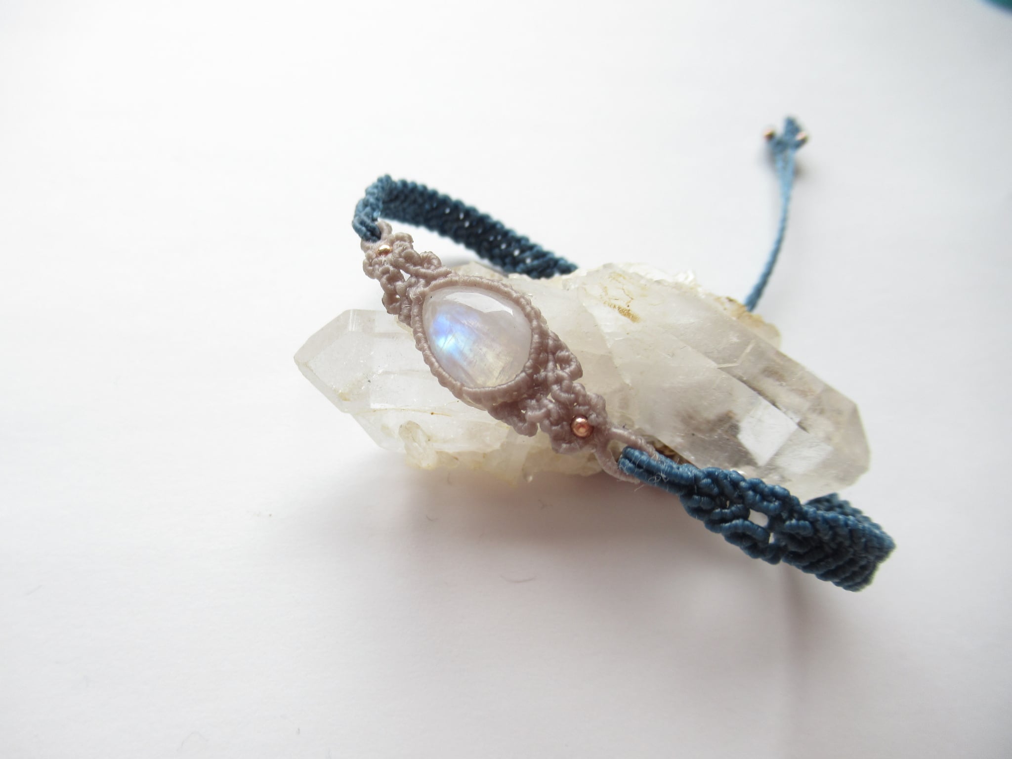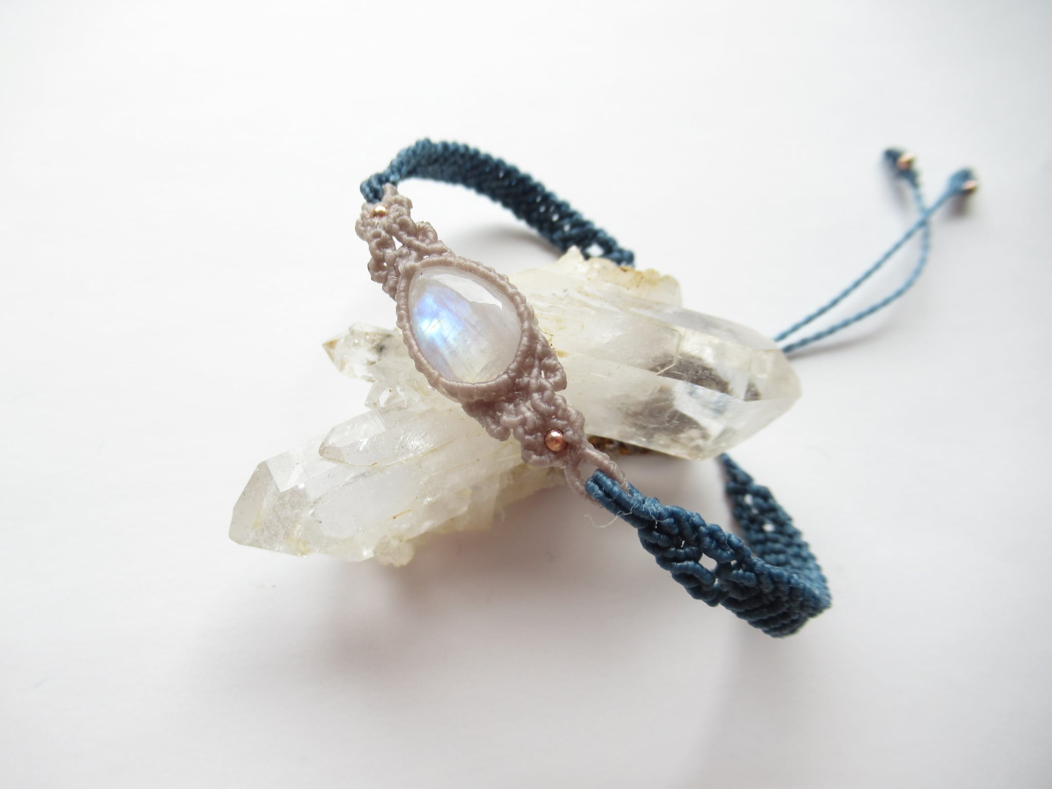 レインボームーンストーンの紋様編みブレスレット