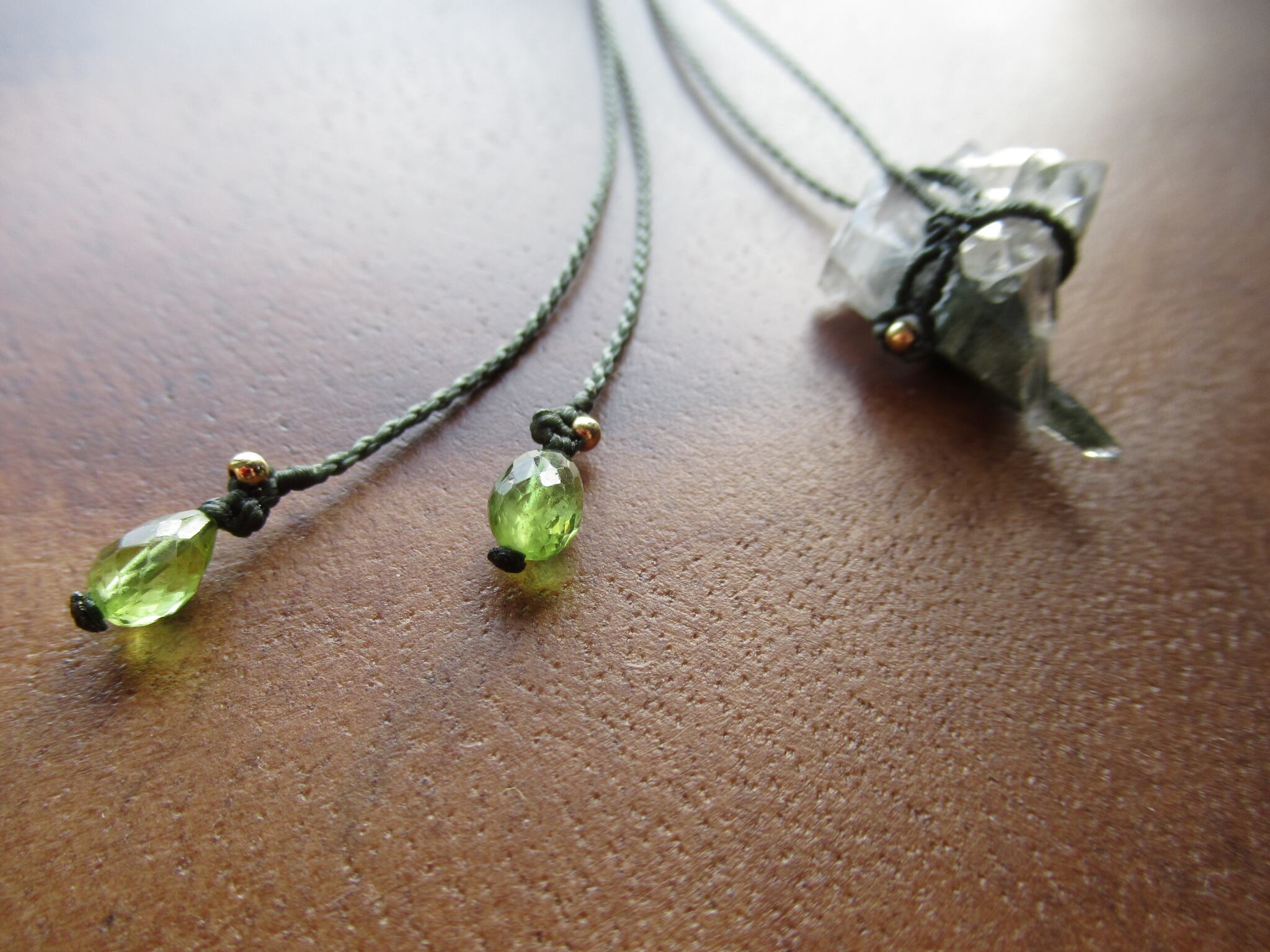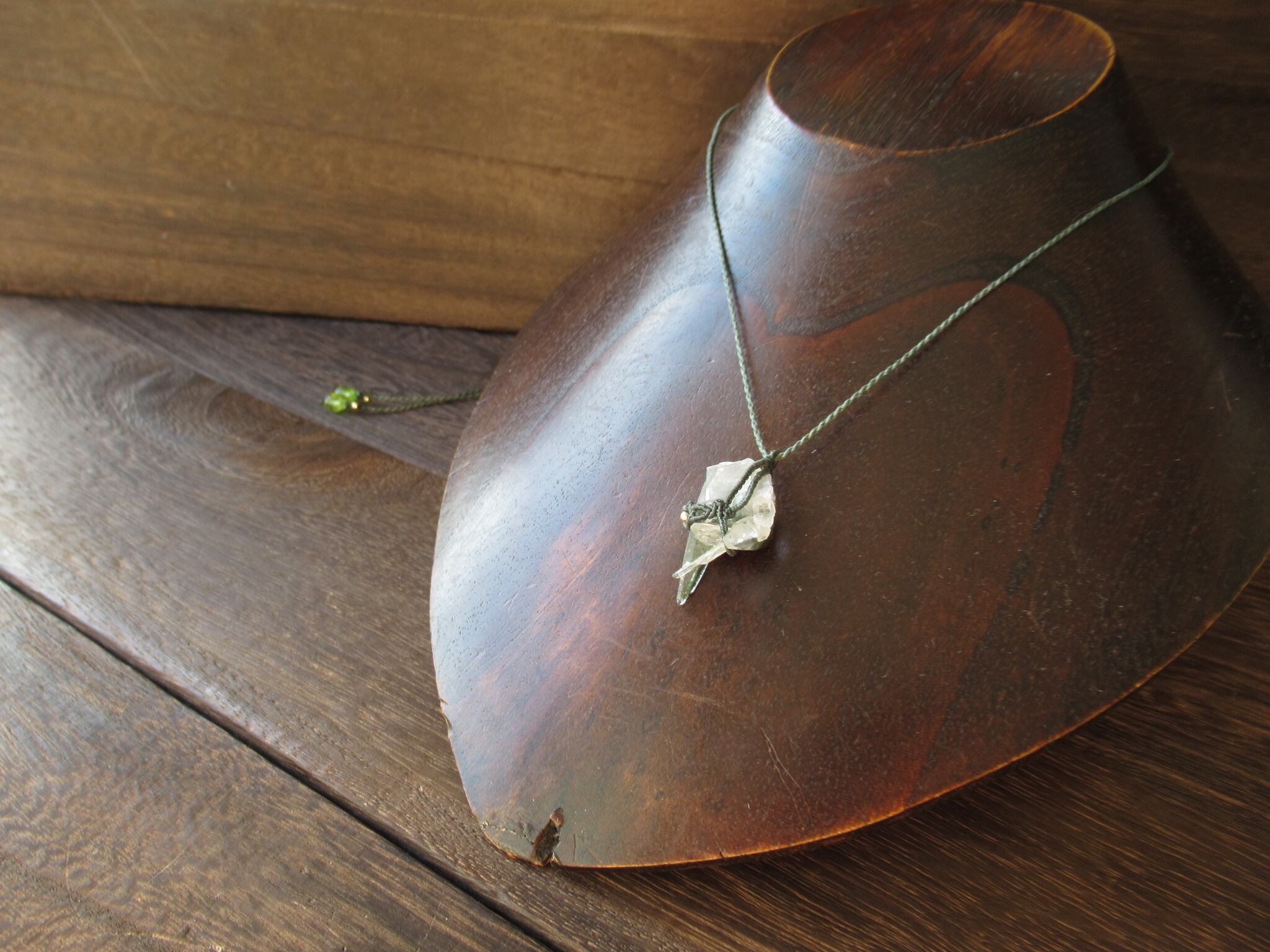 結晶の形状とクローライトの色合いがとても美しい、ガネーシュヒマール水晶の原石を使いペンダントに仕立てました。