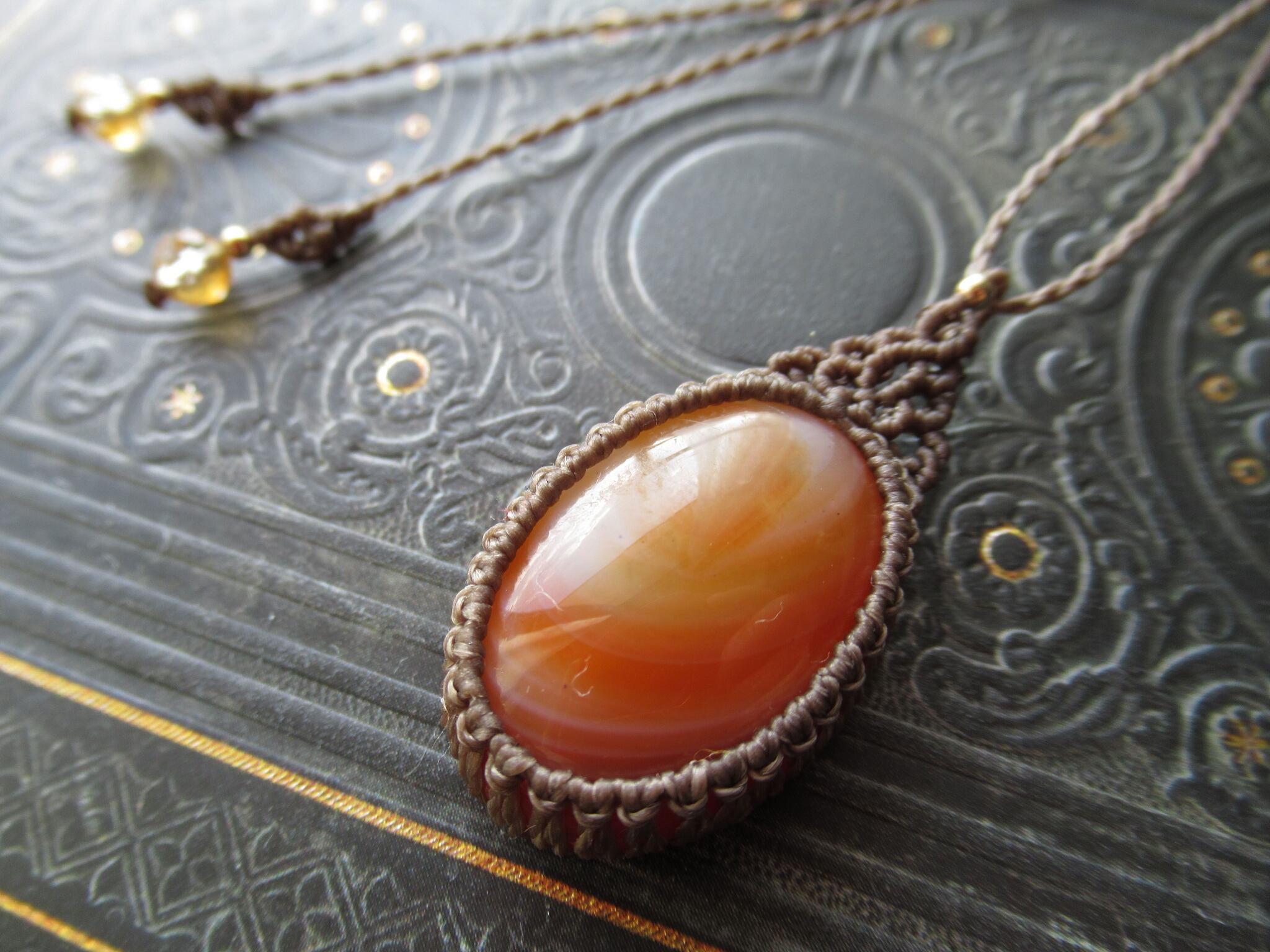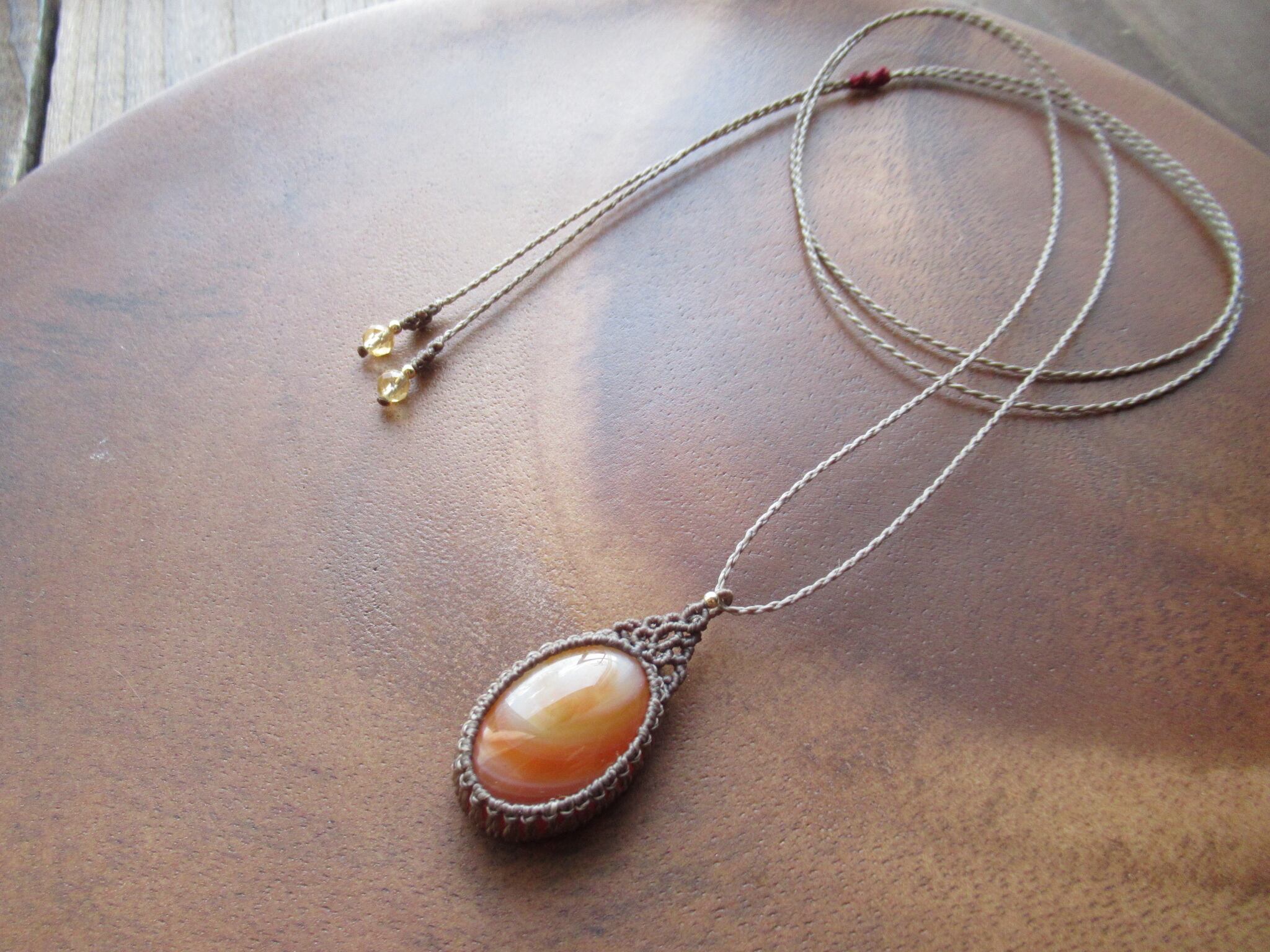 大粒の瑪瑙らしい色合いのカーネリアンをシンプルなペンダントにお仕立ていたしました。