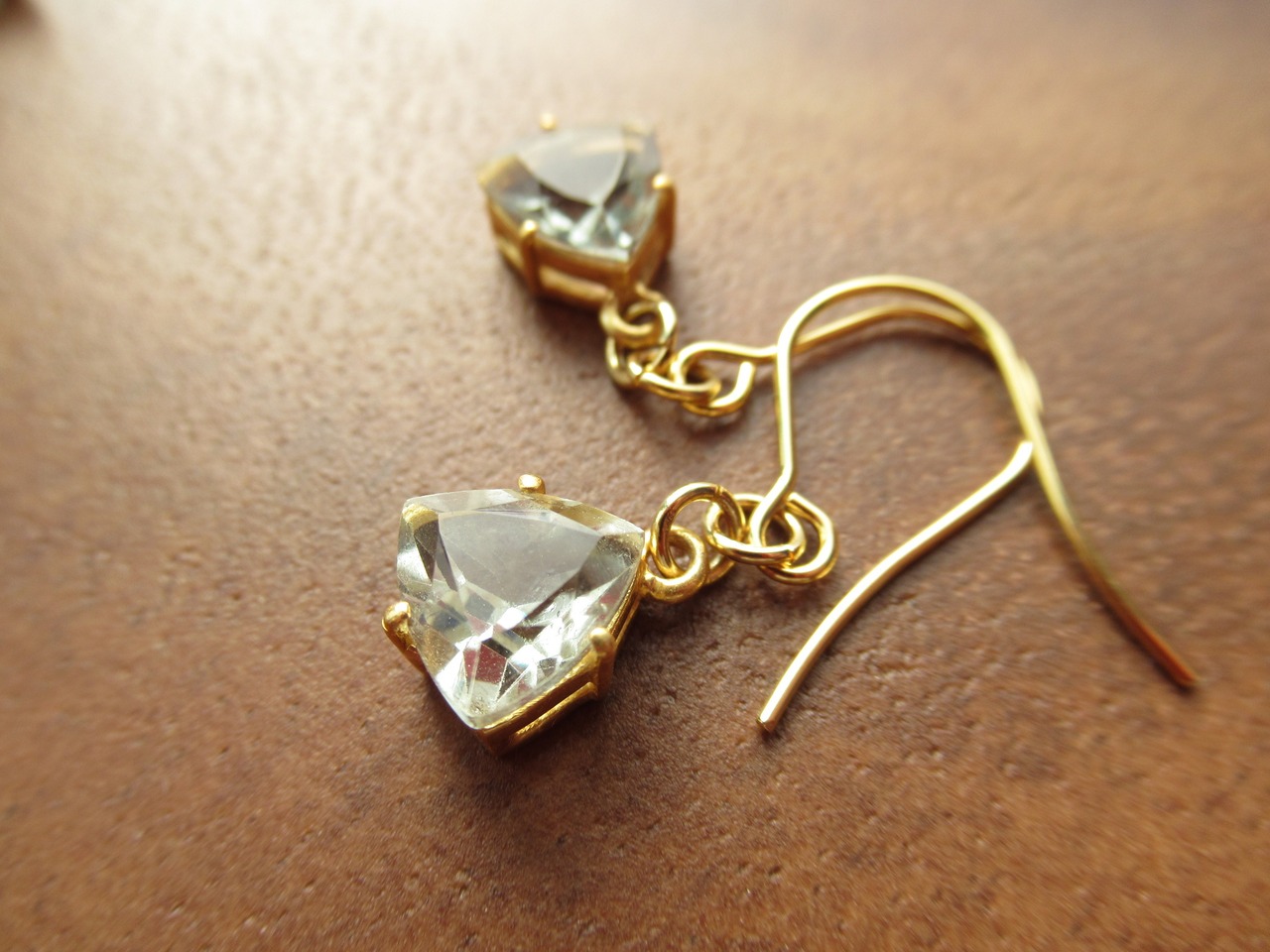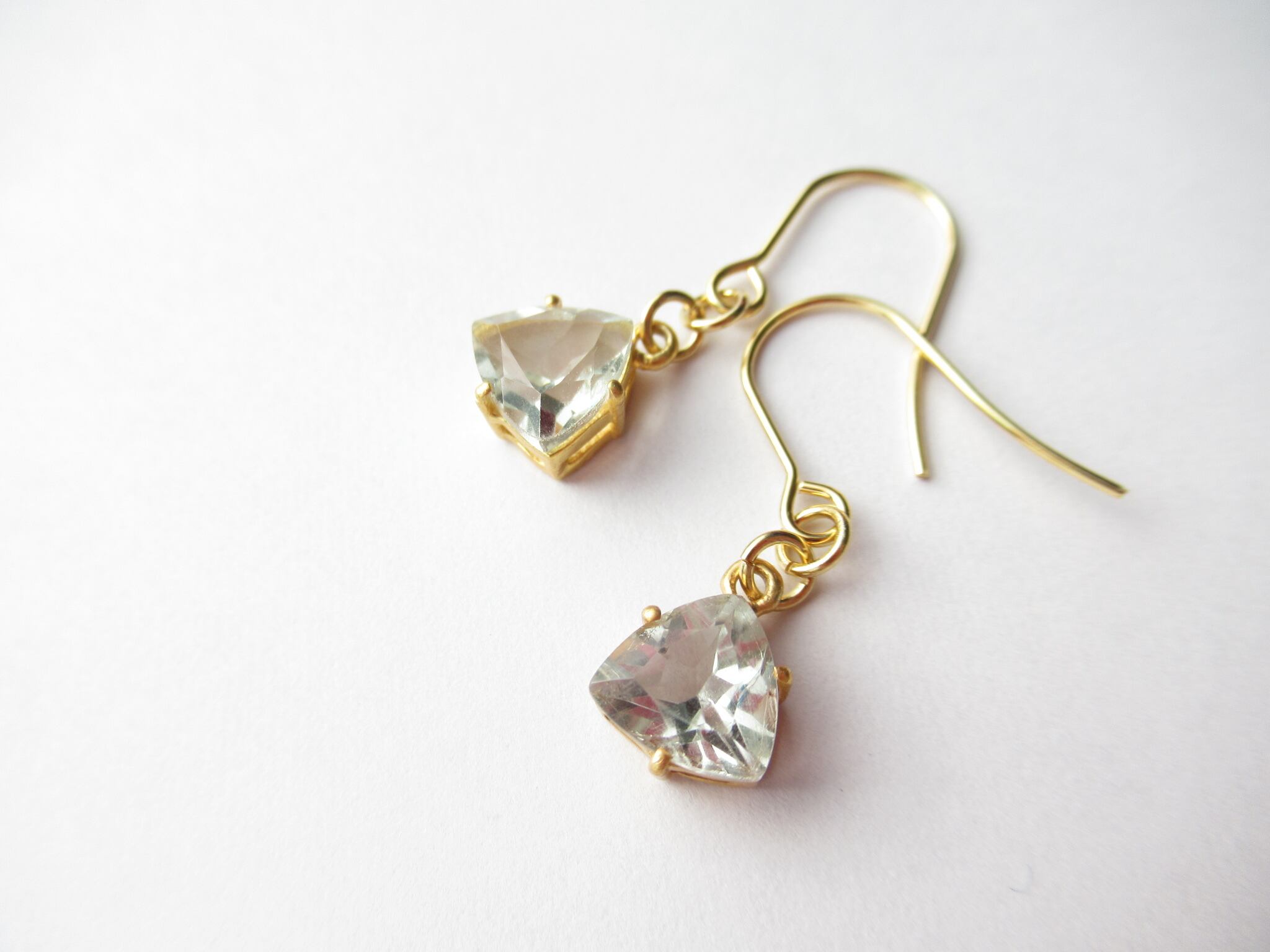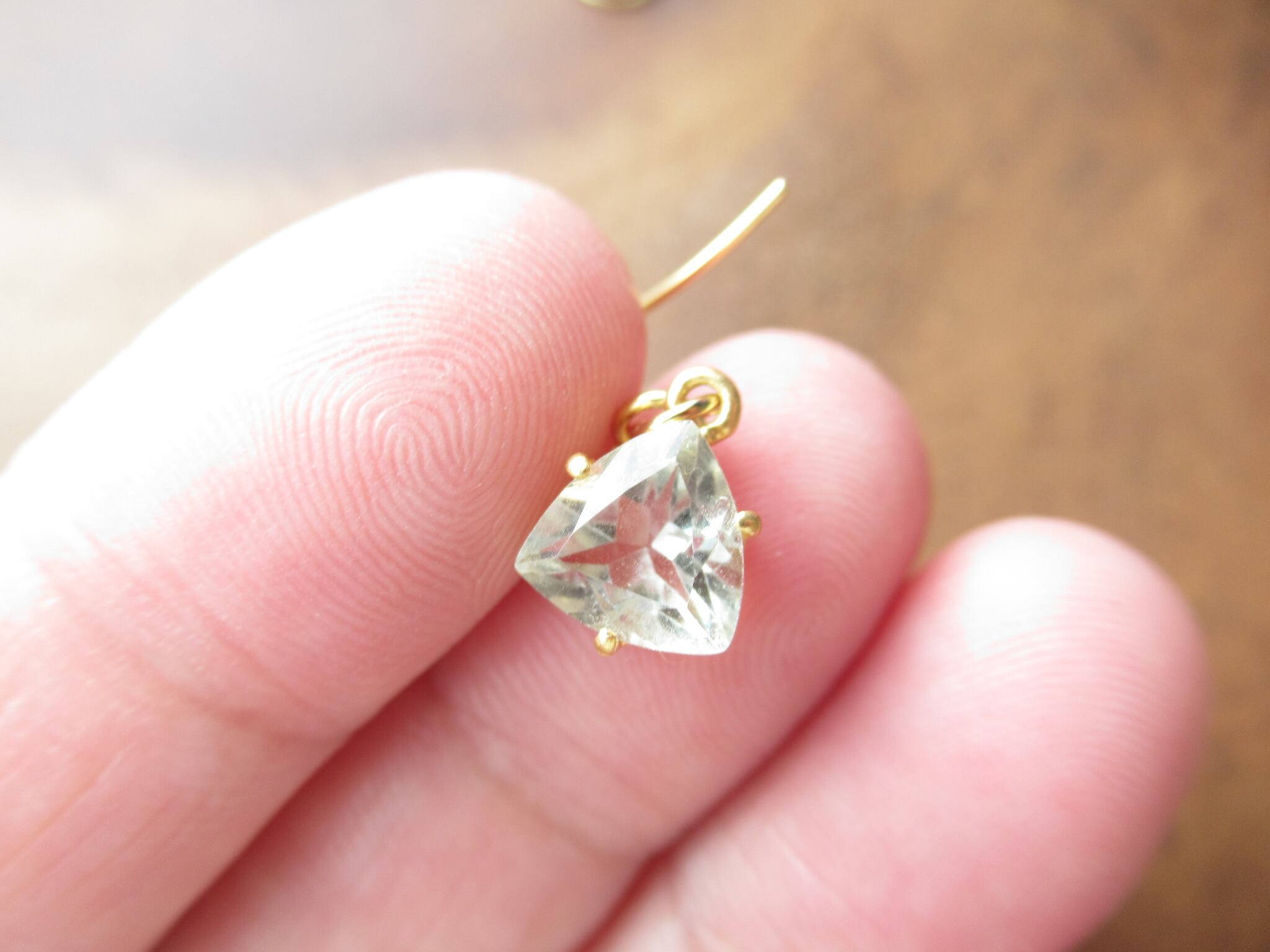 2月の誕生石 宝石質グリーンアメジストのジュエリーカットデザインの耳飾りです。