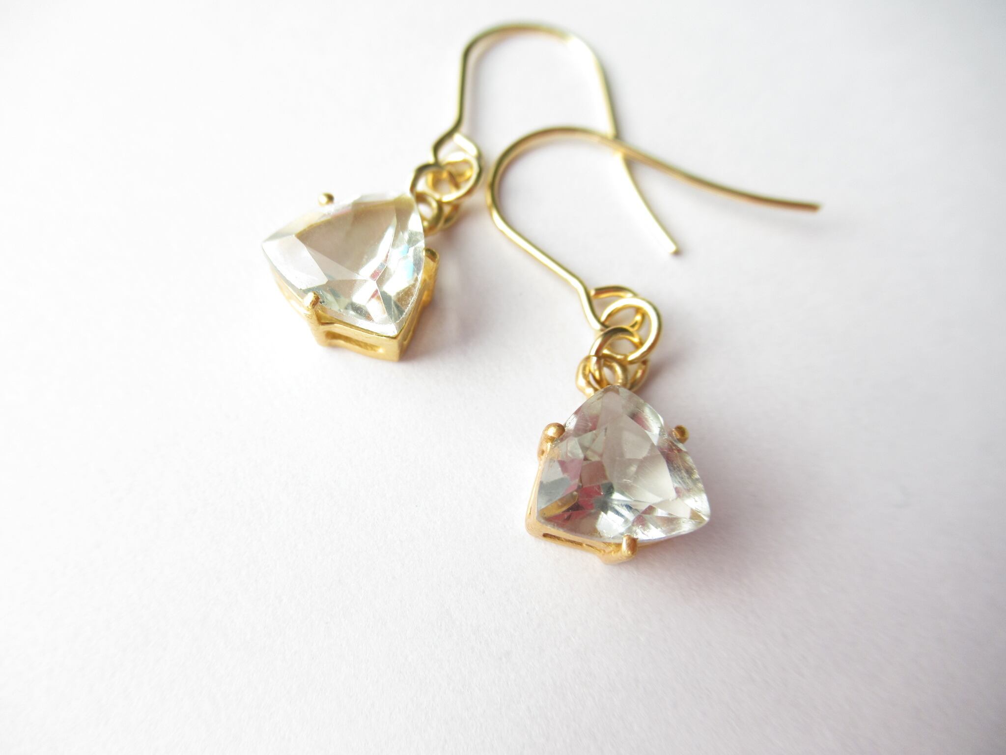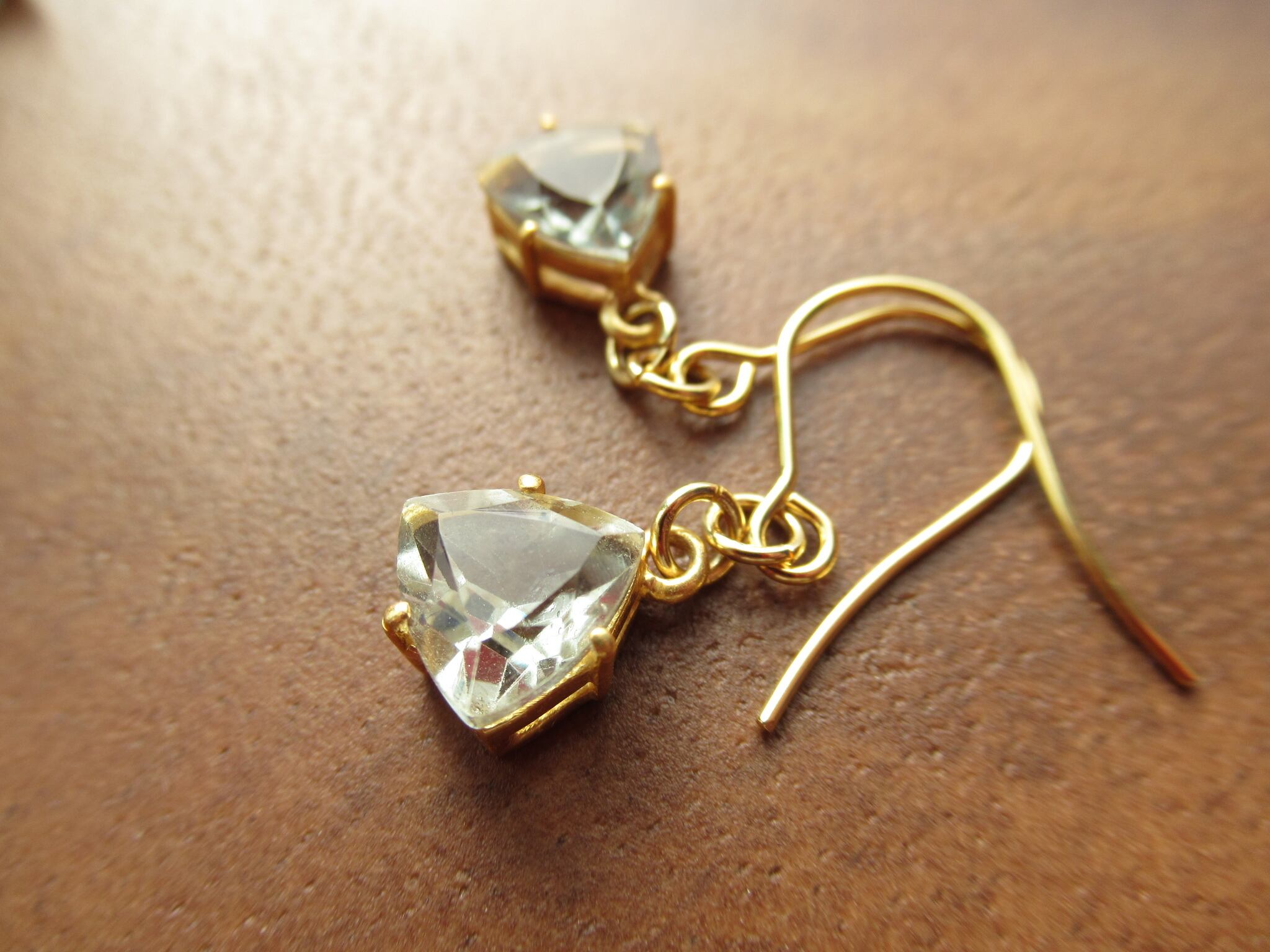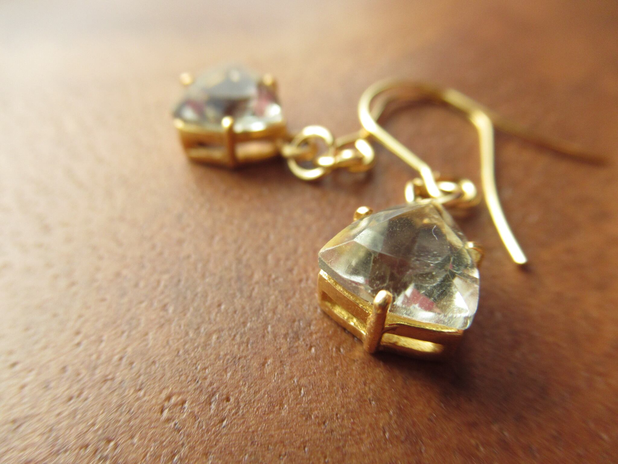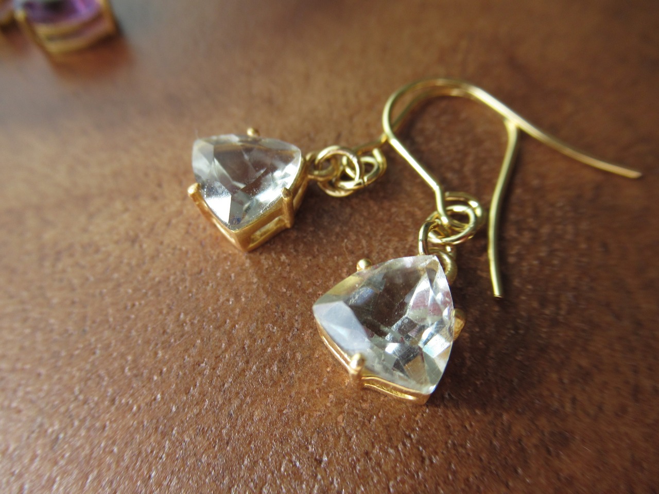 2月の誕生石 宝石質グリーンアメジストのジュエリーカットデザインの耳飾りです。