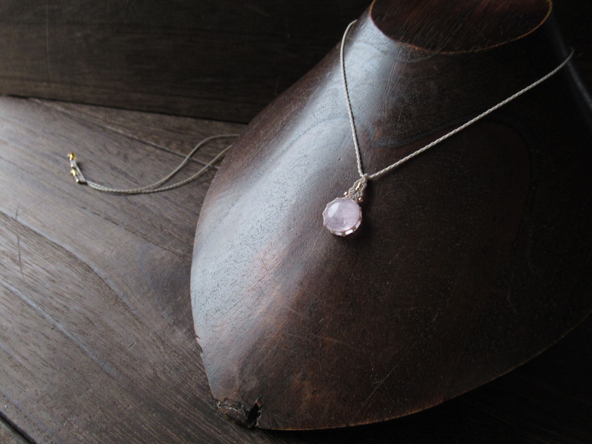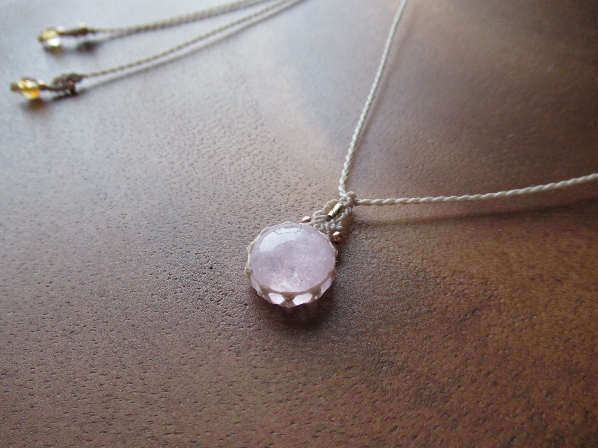 ちいさなまあるいモルガナイトでミニペンダントを製作しました。