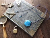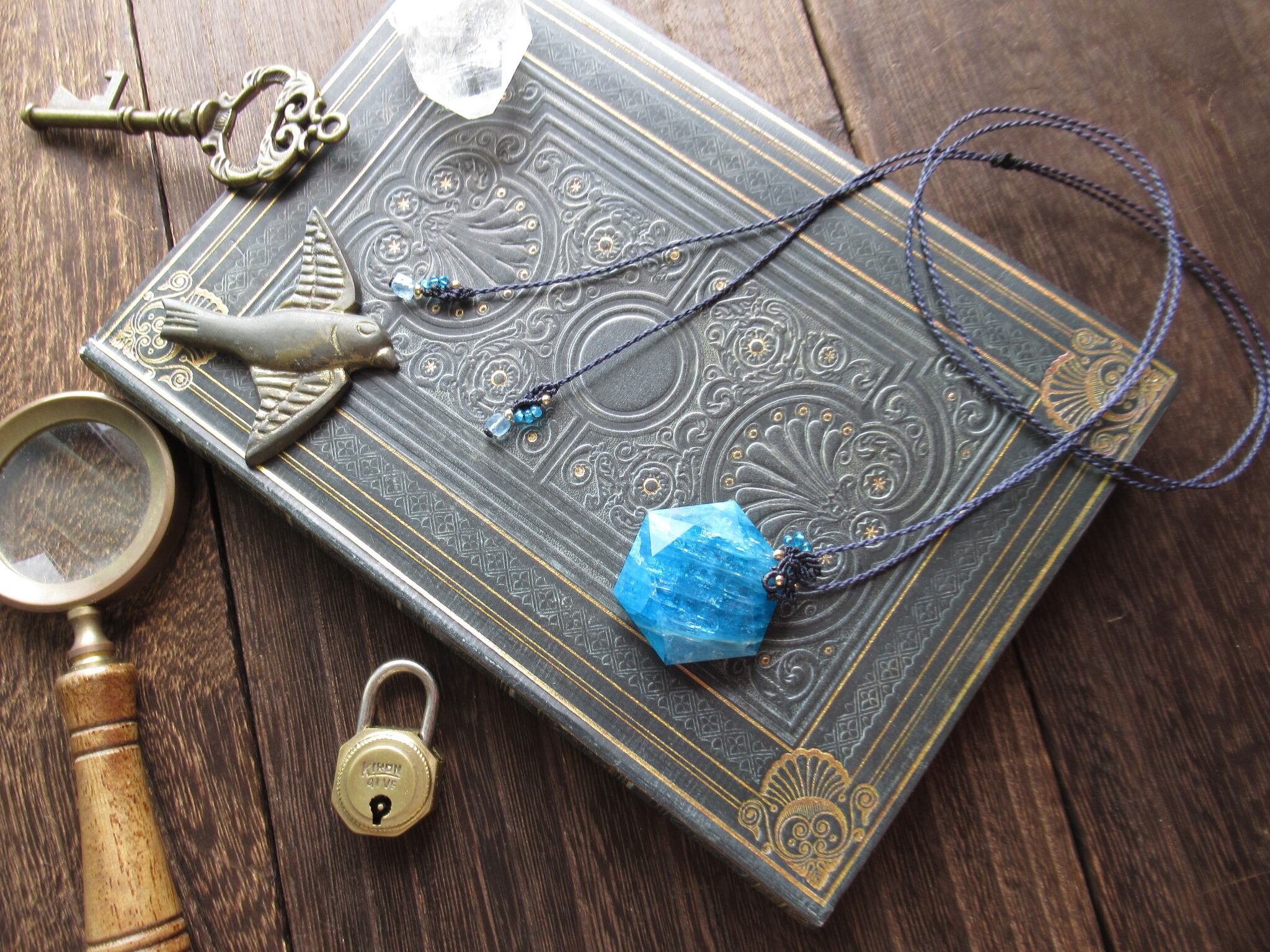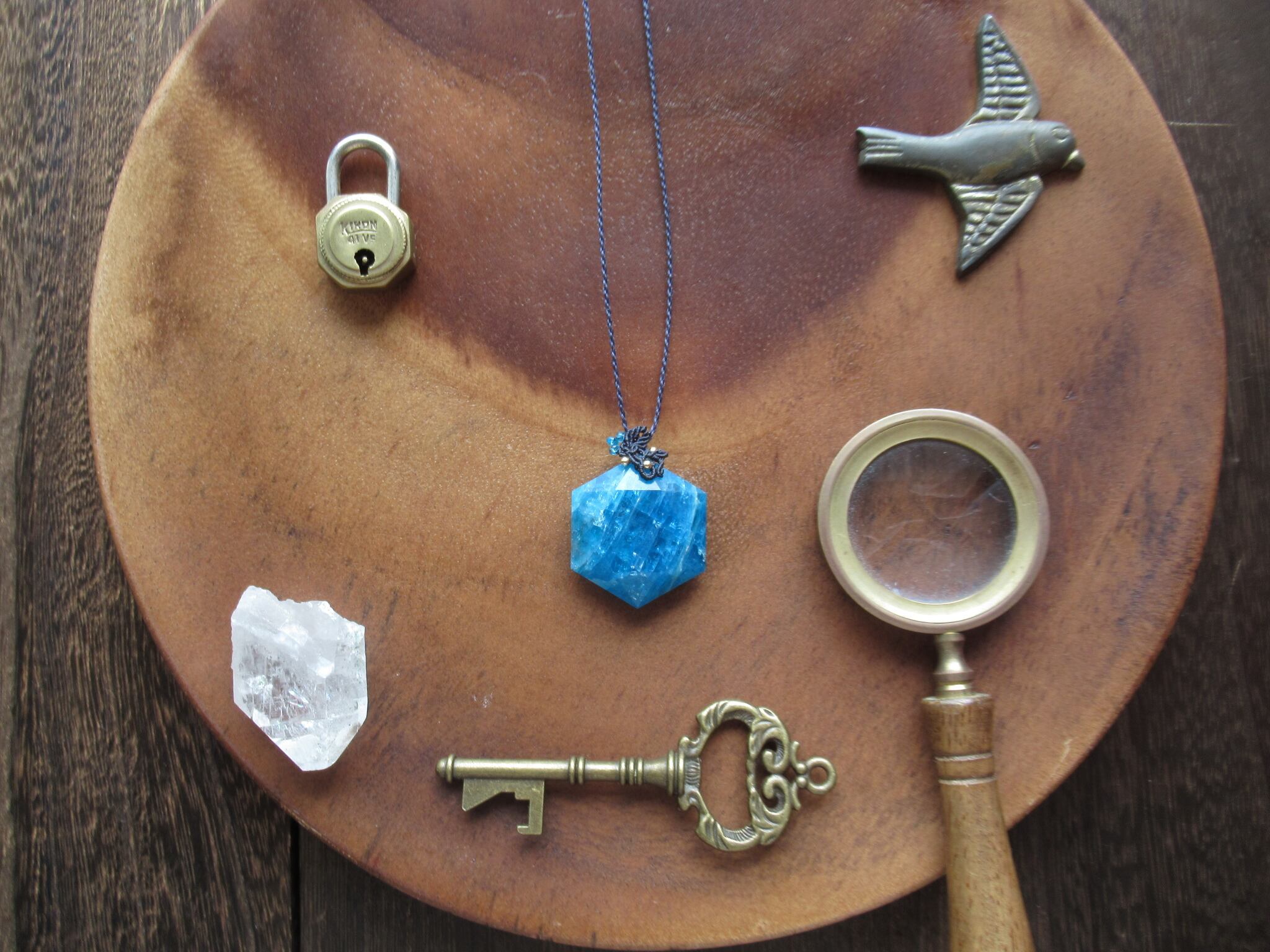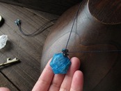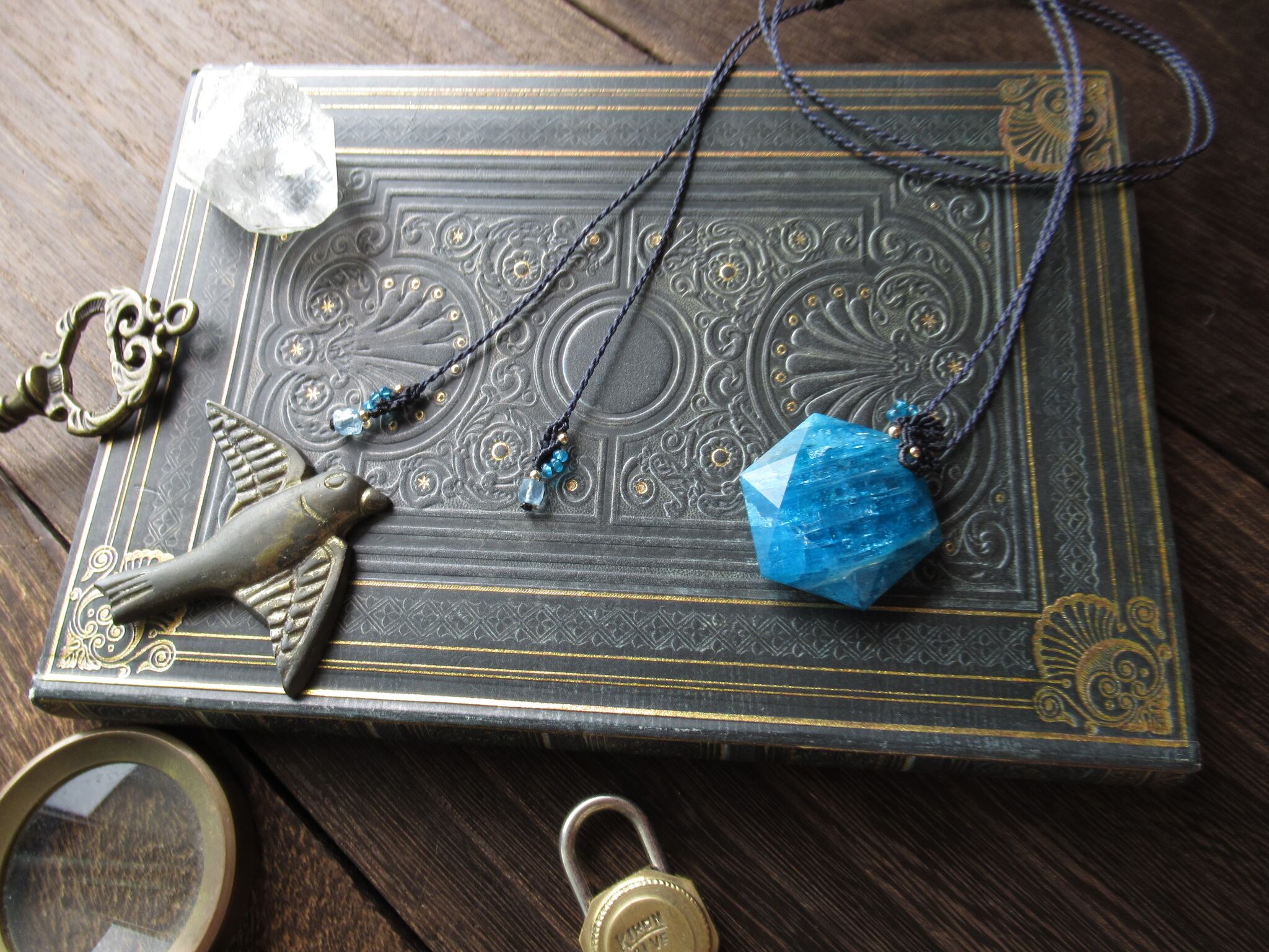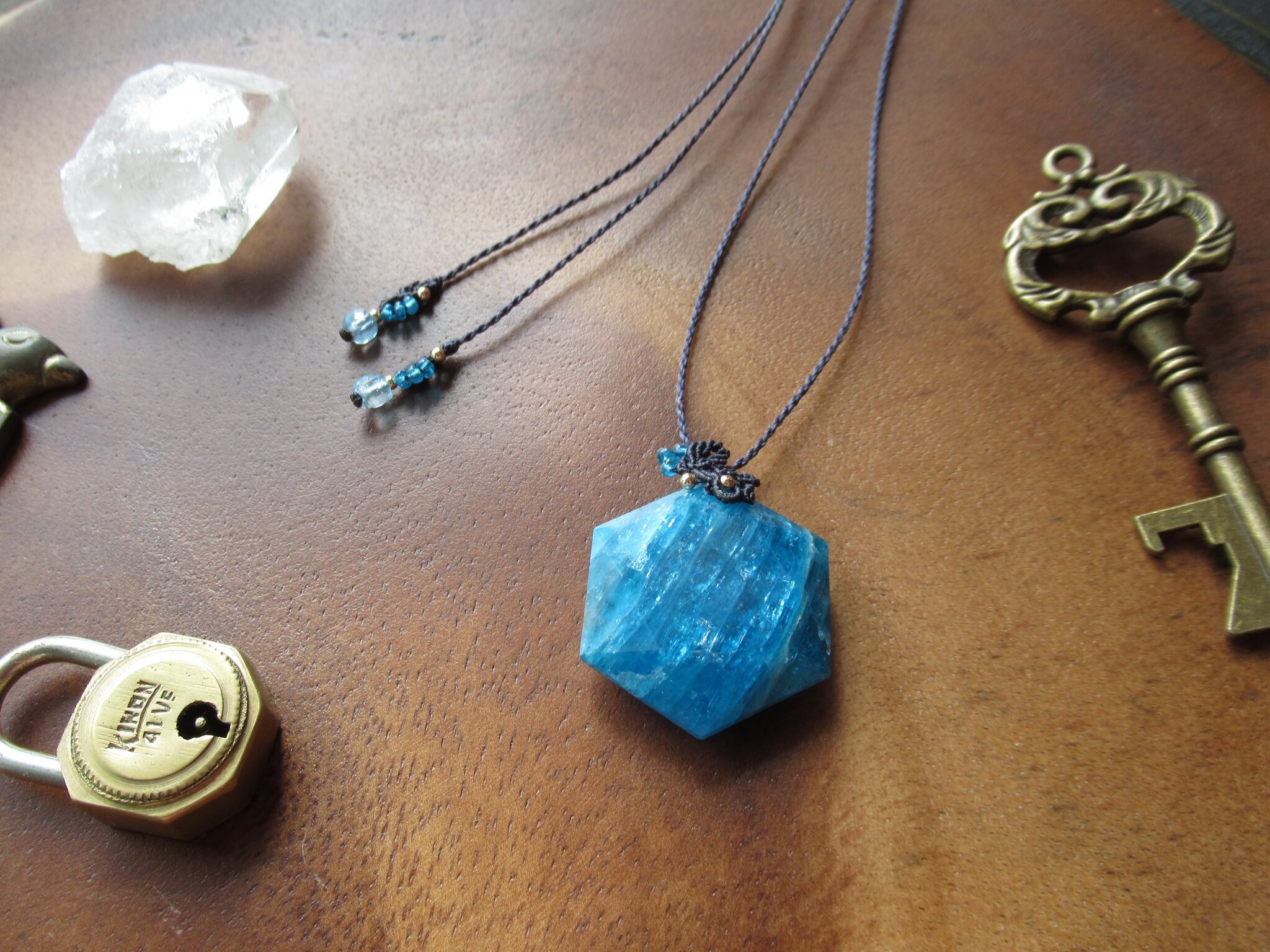 六芒星の形にデザインカットされた青みの強いブルーアパタイトでペンダントをお仕立ていたしました。