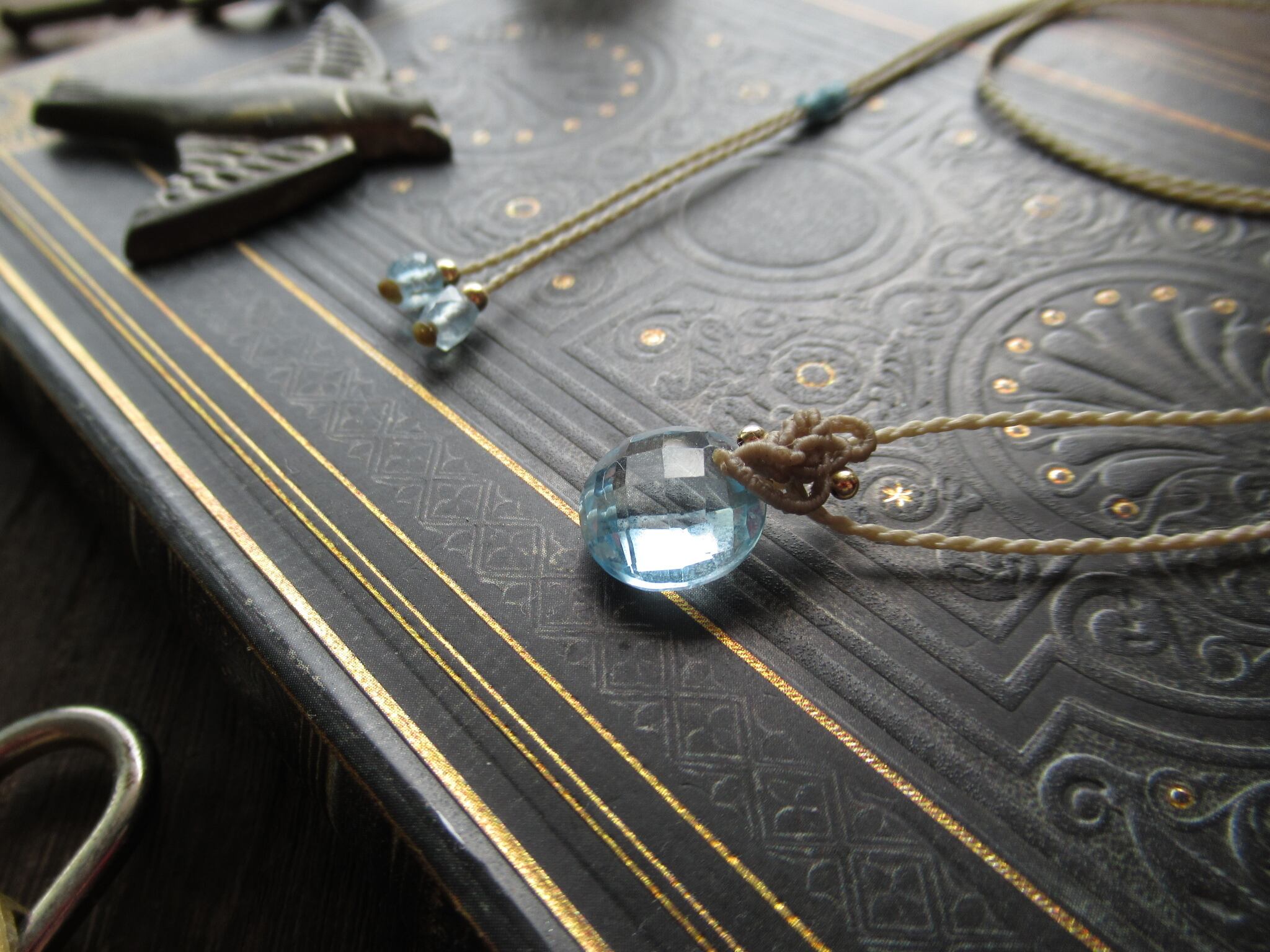 細やかで美しいカットが施されたスカイブルートパーズでミニペンダントを製作しました。