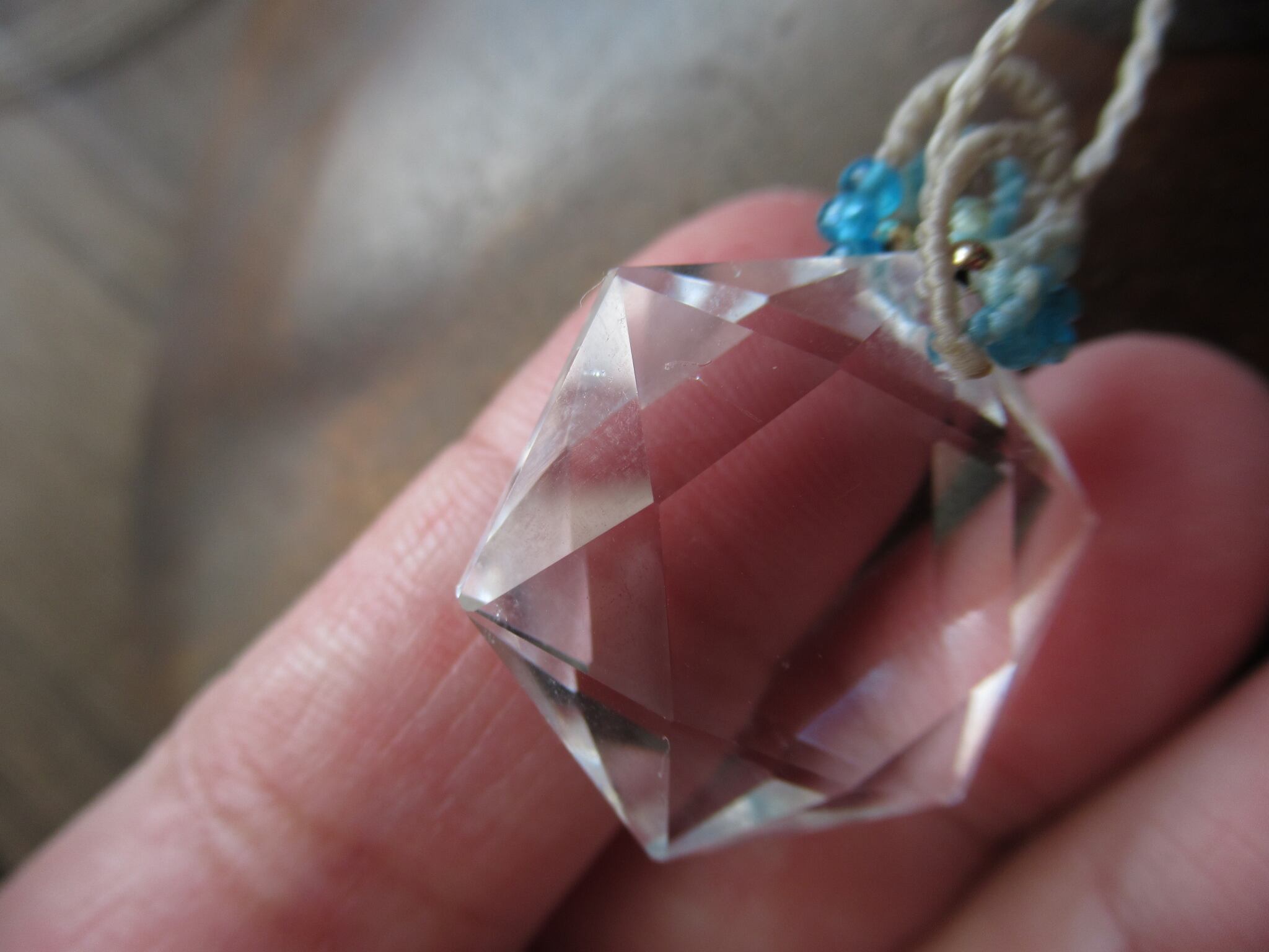 六芒星の形にデザインカットされたブラジル産の天然水晶でペンダントをお仕立ていたしました。